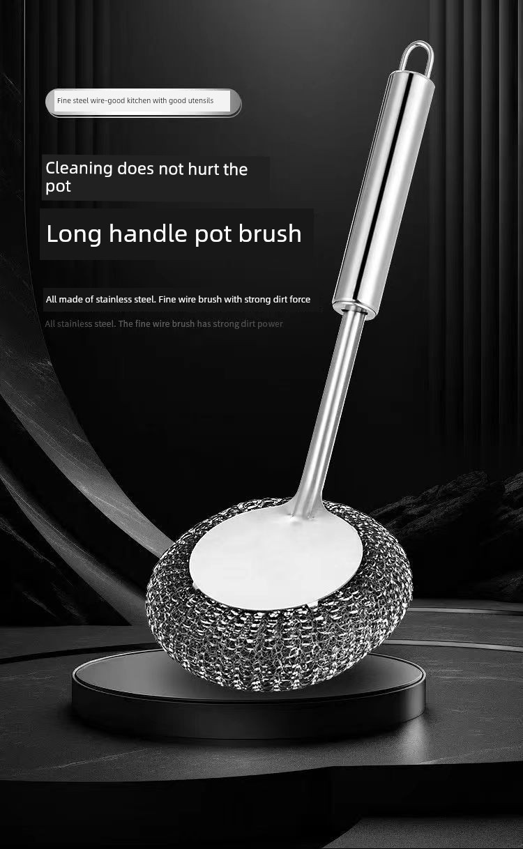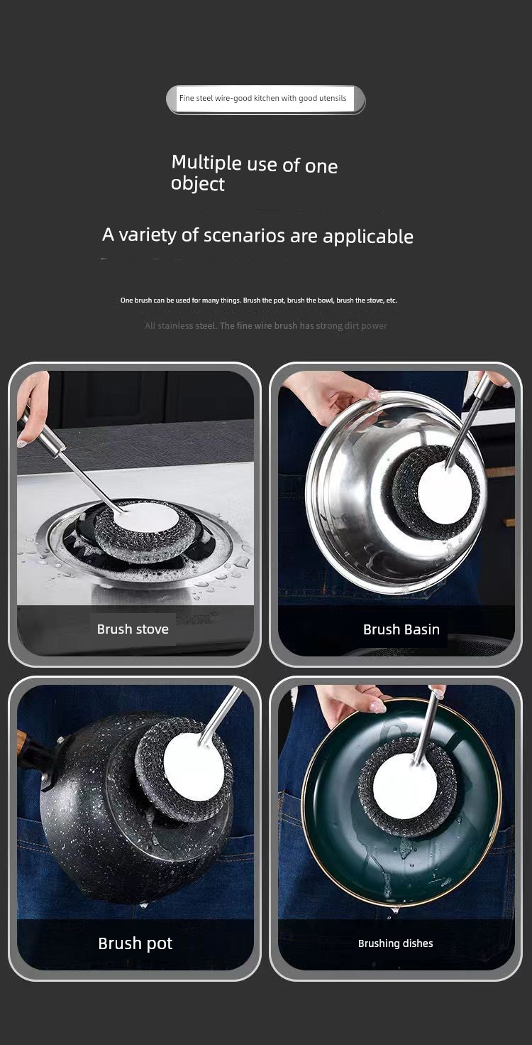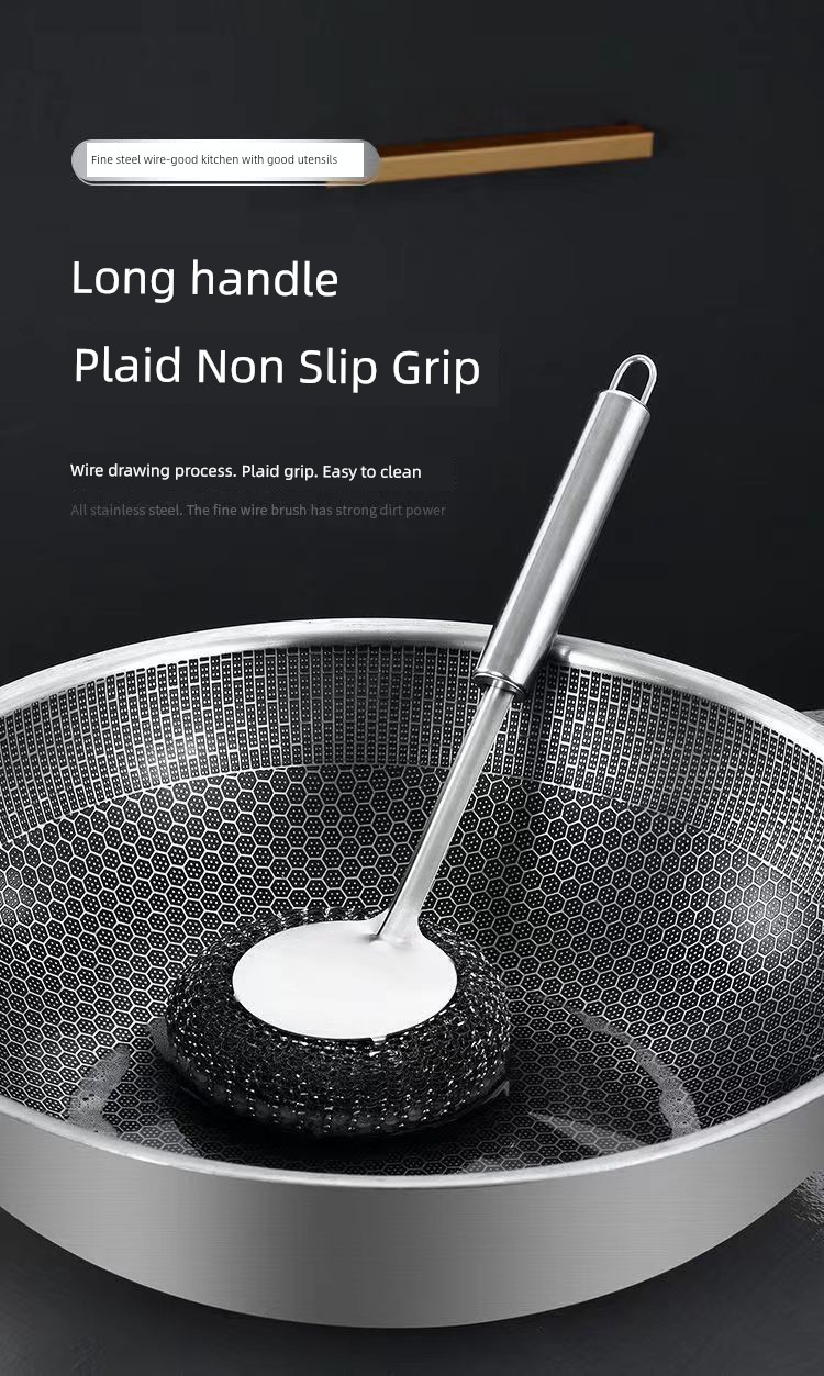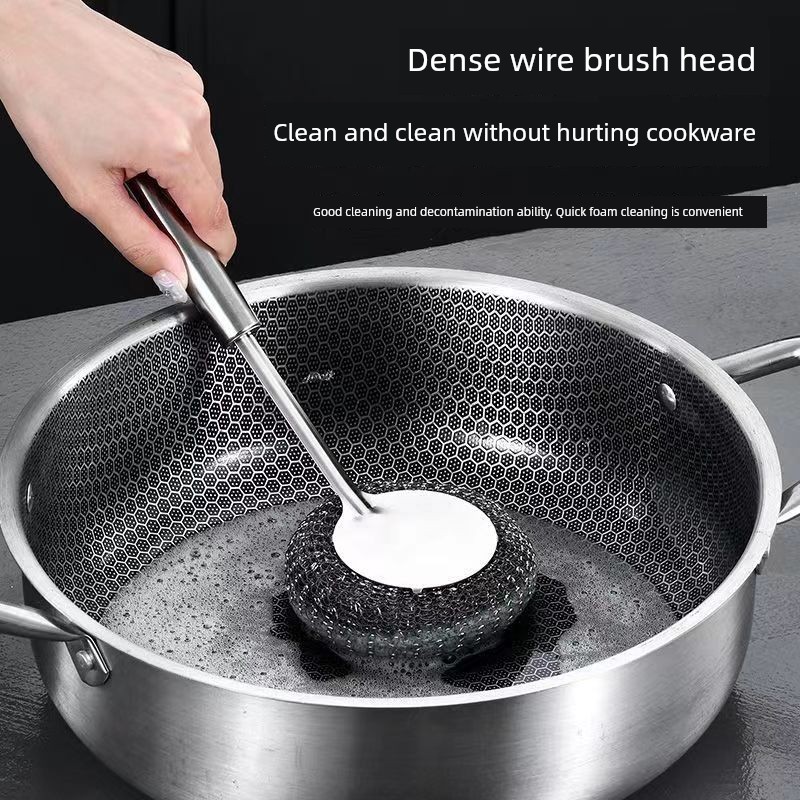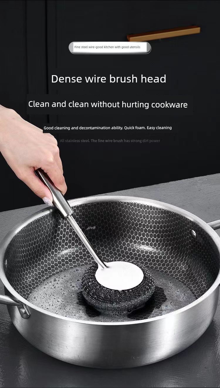 Stainless Steel Wok Brush For Home Kitchen Cleaning Gadget Washing Pot Bowl Oil Removal Does Not Hurt Pot Long Handle with Handle Steel Wire Cleaning Brush