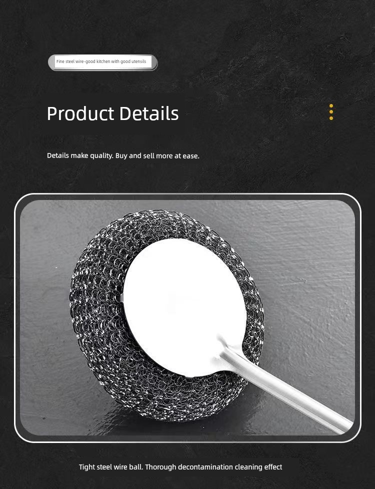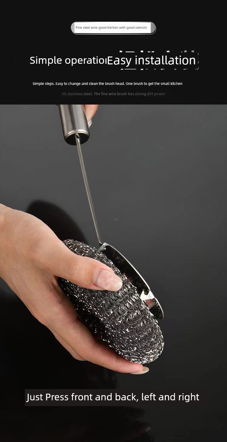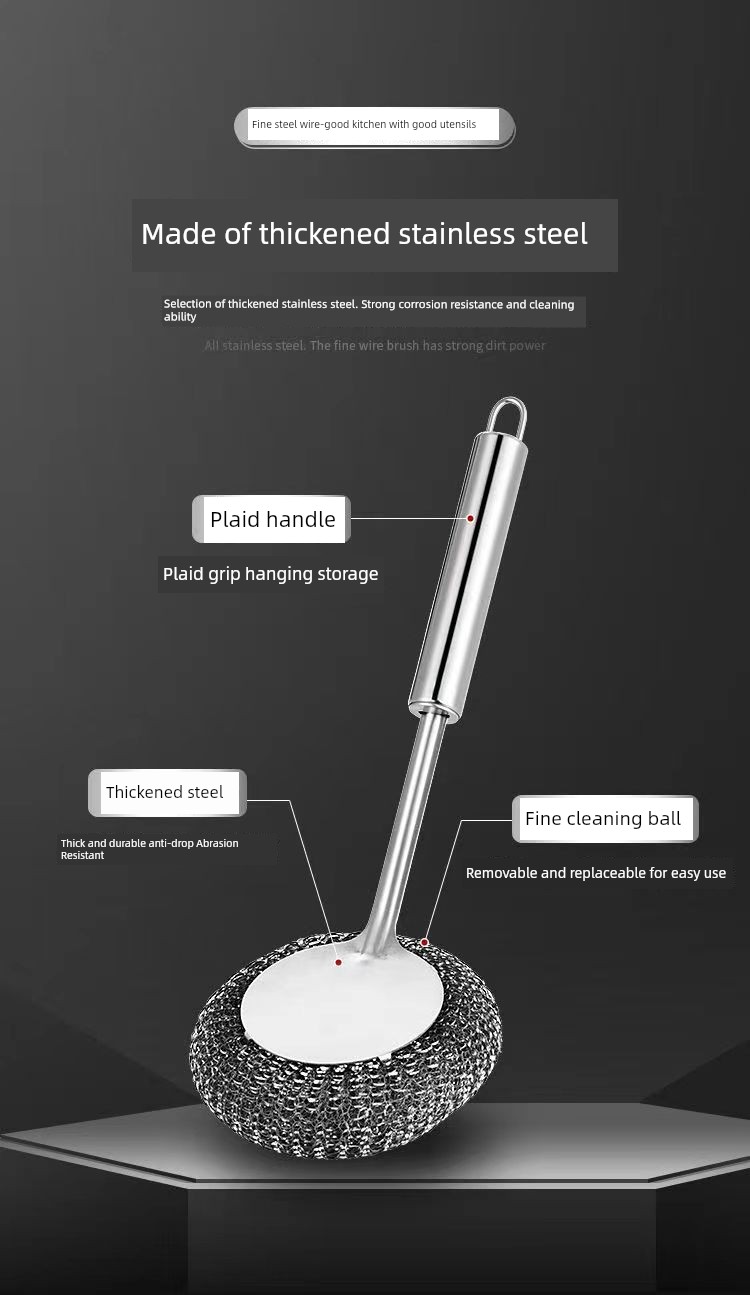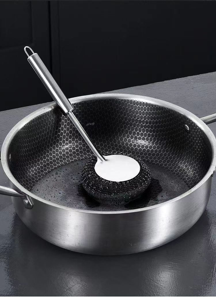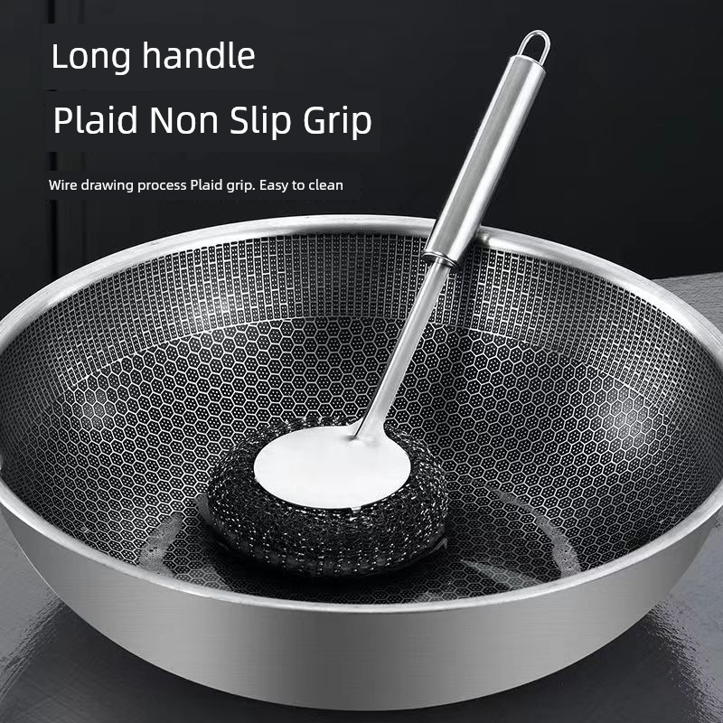 Stainless Steel Wok Brush For Home Kitchen Cleaning Gadget Washing Pot Bowl Oil Removal Does Not Hurt Pot Long Handle with Handle Steel Wire Cleaning Brush
