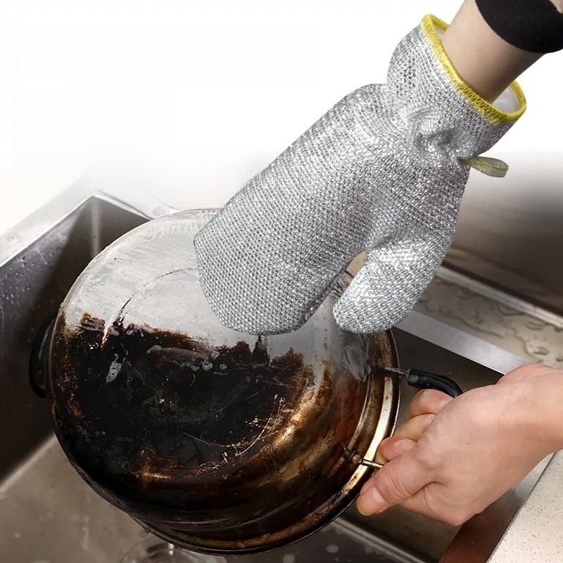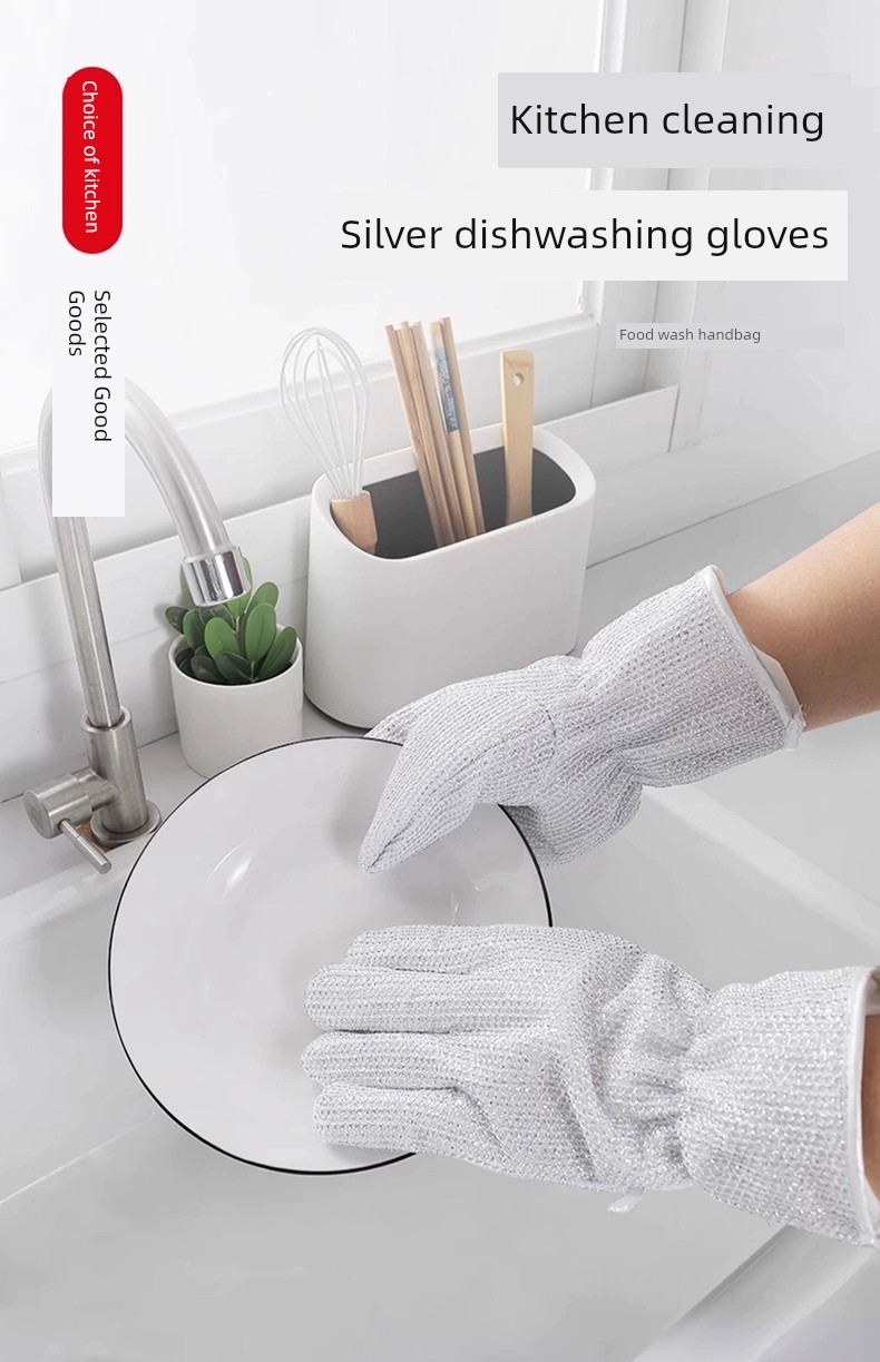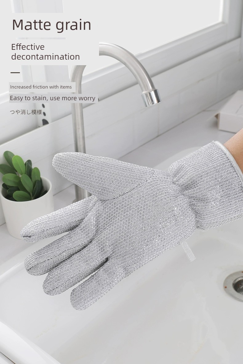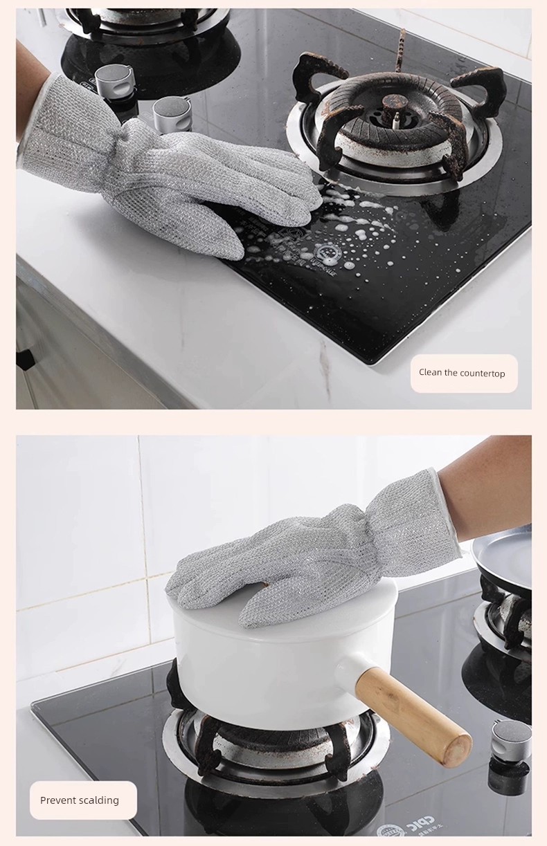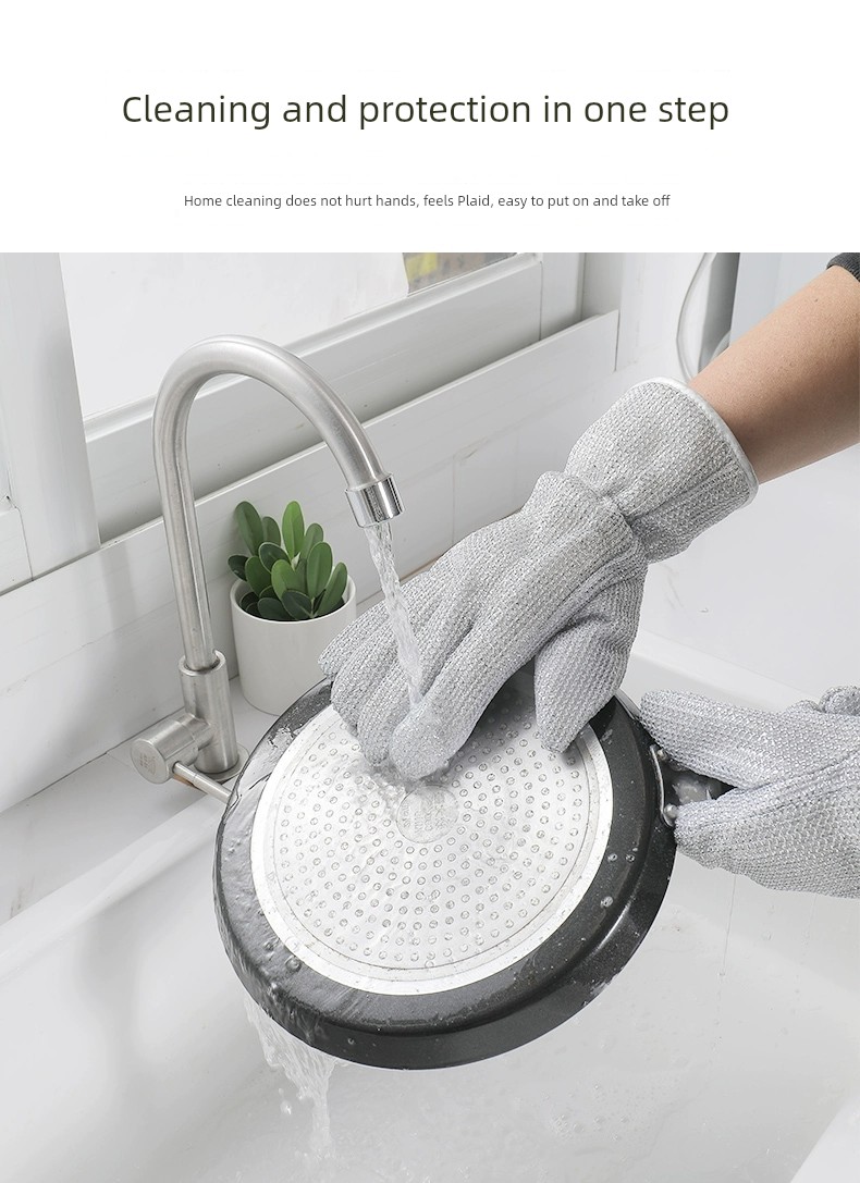 Steel Wire Dishwashing Gloves Kitchen Household Lengthen and Thicken Waterproof Not Hurt Pot Steel Wire Rag Dishcloth Fabulous Pot Cleaning Tool