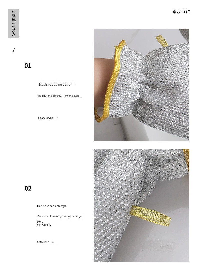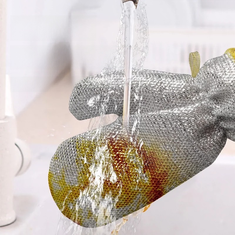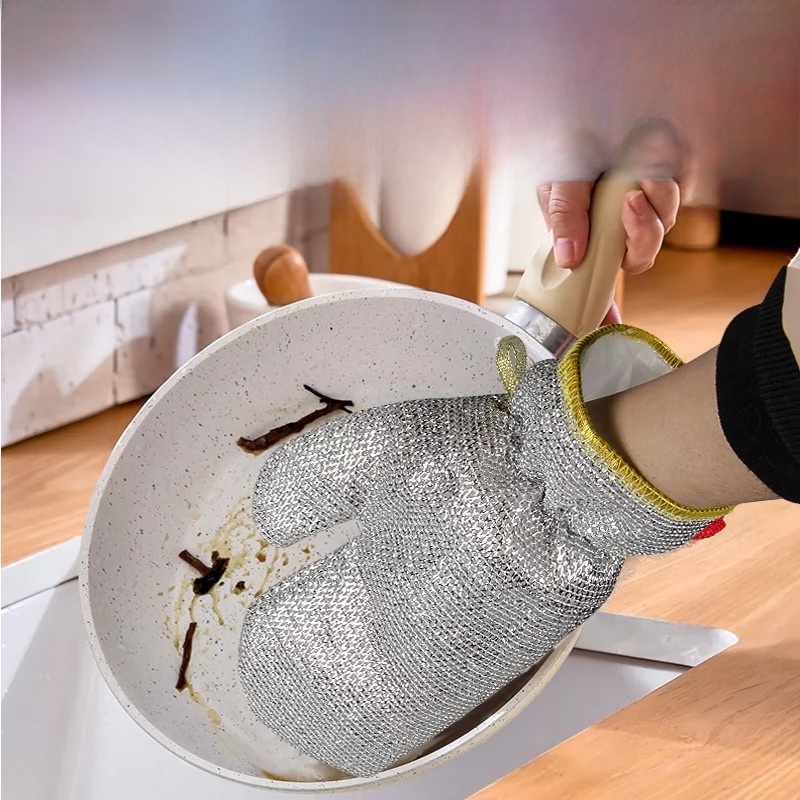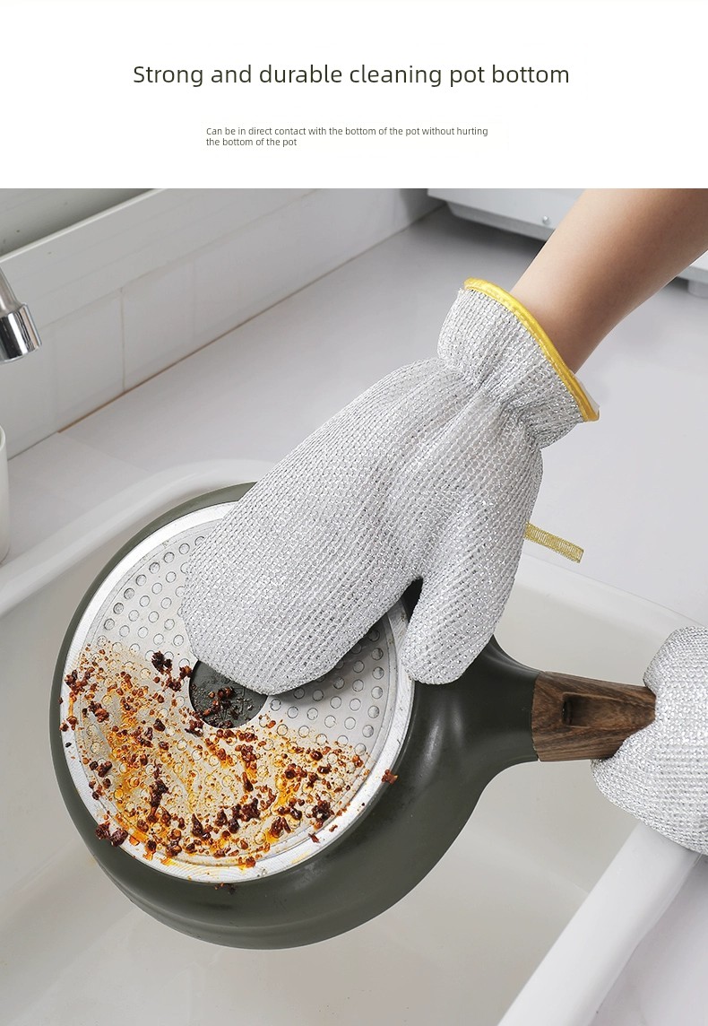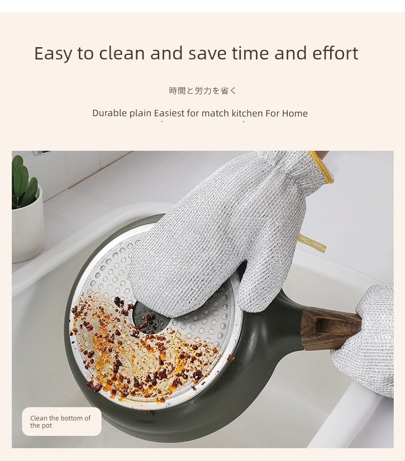 Steel Wire Dishwashing Gloves Kitchen Household Lengthen and Thicken Waterproof Not Hurt Pot Steel Wire Rag Dishcloth Fabulous Pot Cleaning Tool