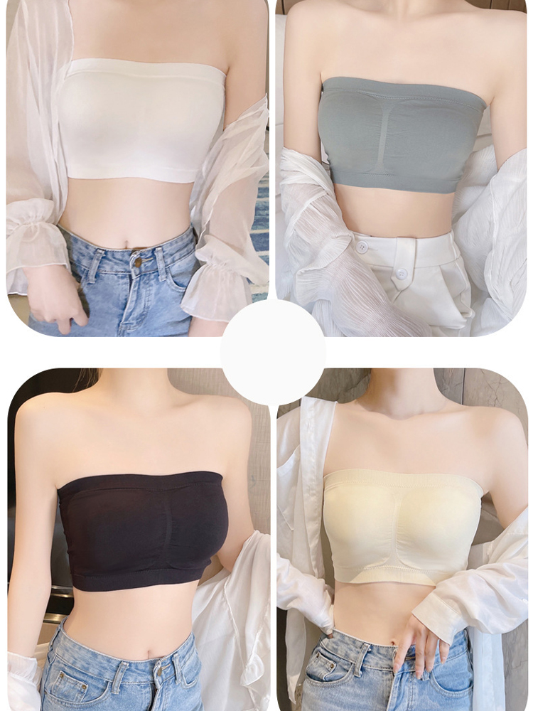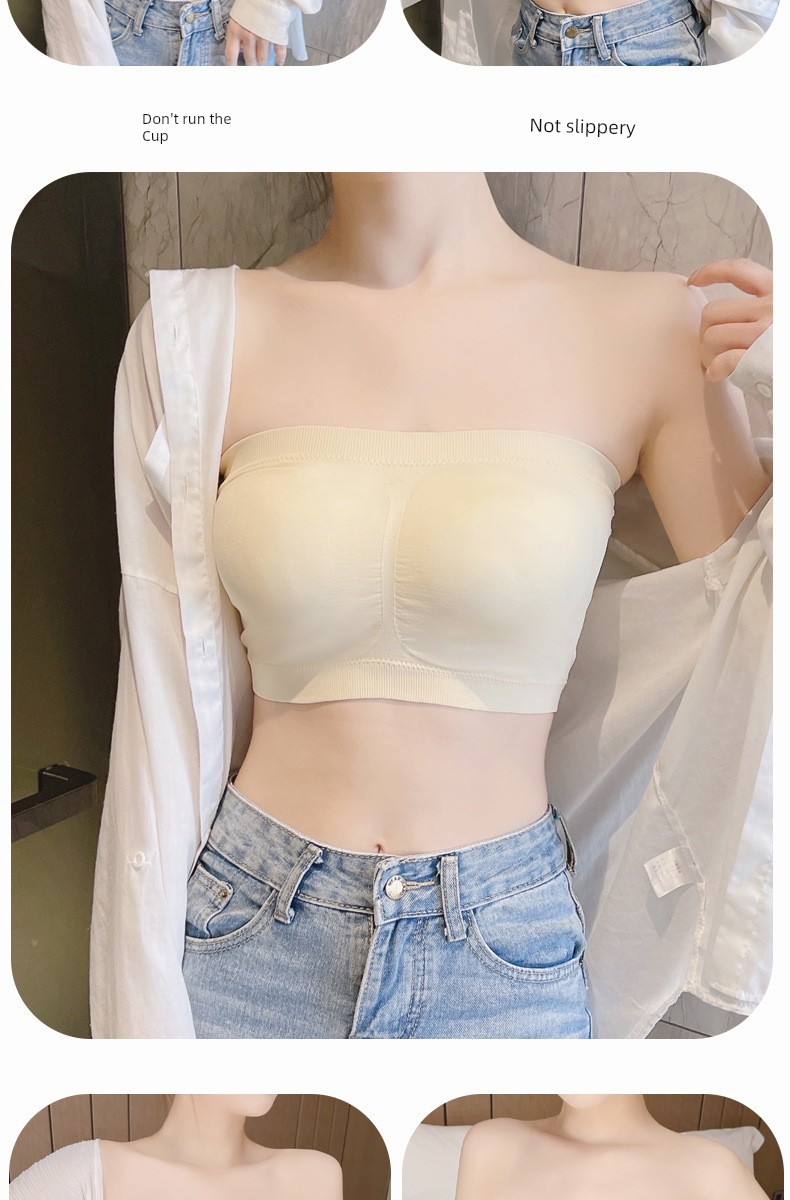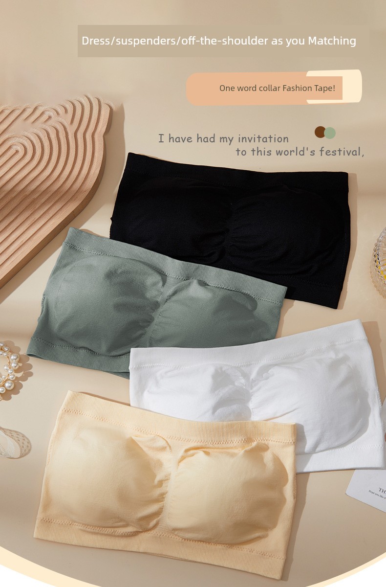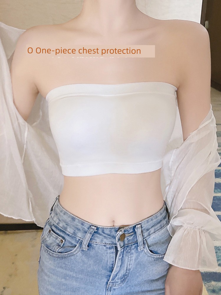 Strapless Tube Top Intimates Women's Fashion Tape Base Ride Bra Non-Slip Band Chest Pad White One-Piece Chest Wrap