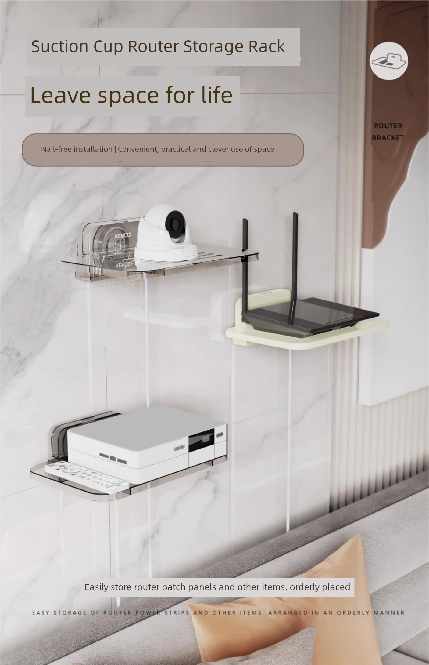 Sucker Router Rack Storage Box For Home Storage Appliances Handy Gadget Wall-Mounted Holder Mounting Bracket