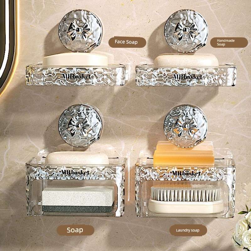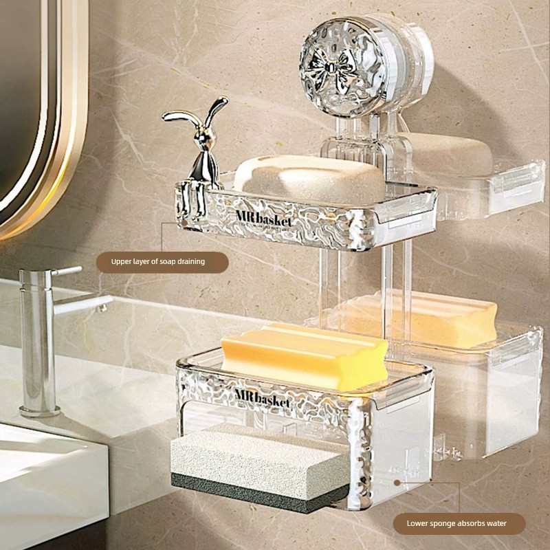 Sucker Soap Dish Wall-Mounted Punch-Free For Home-Gear Bathroom Wall Draining Rack Double Soap Box