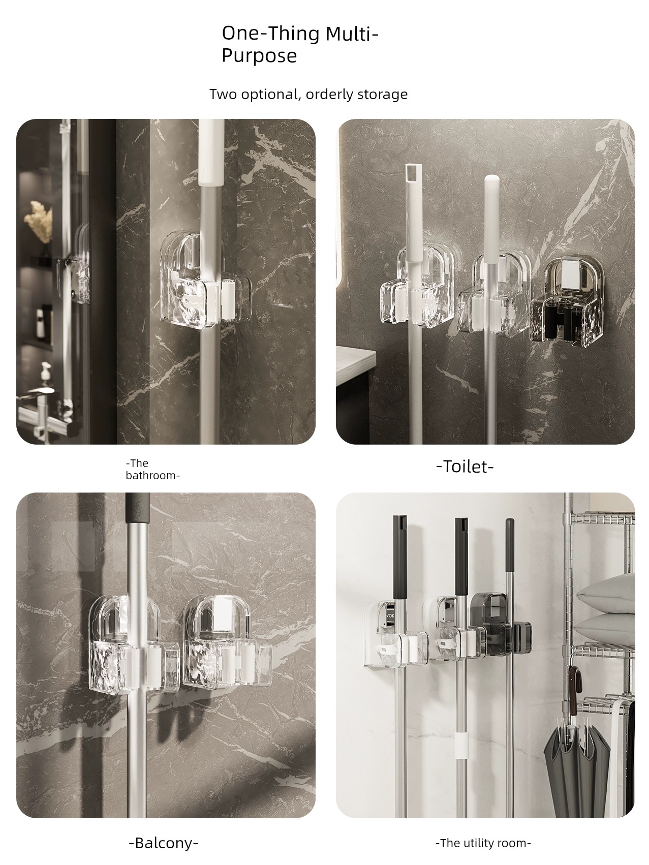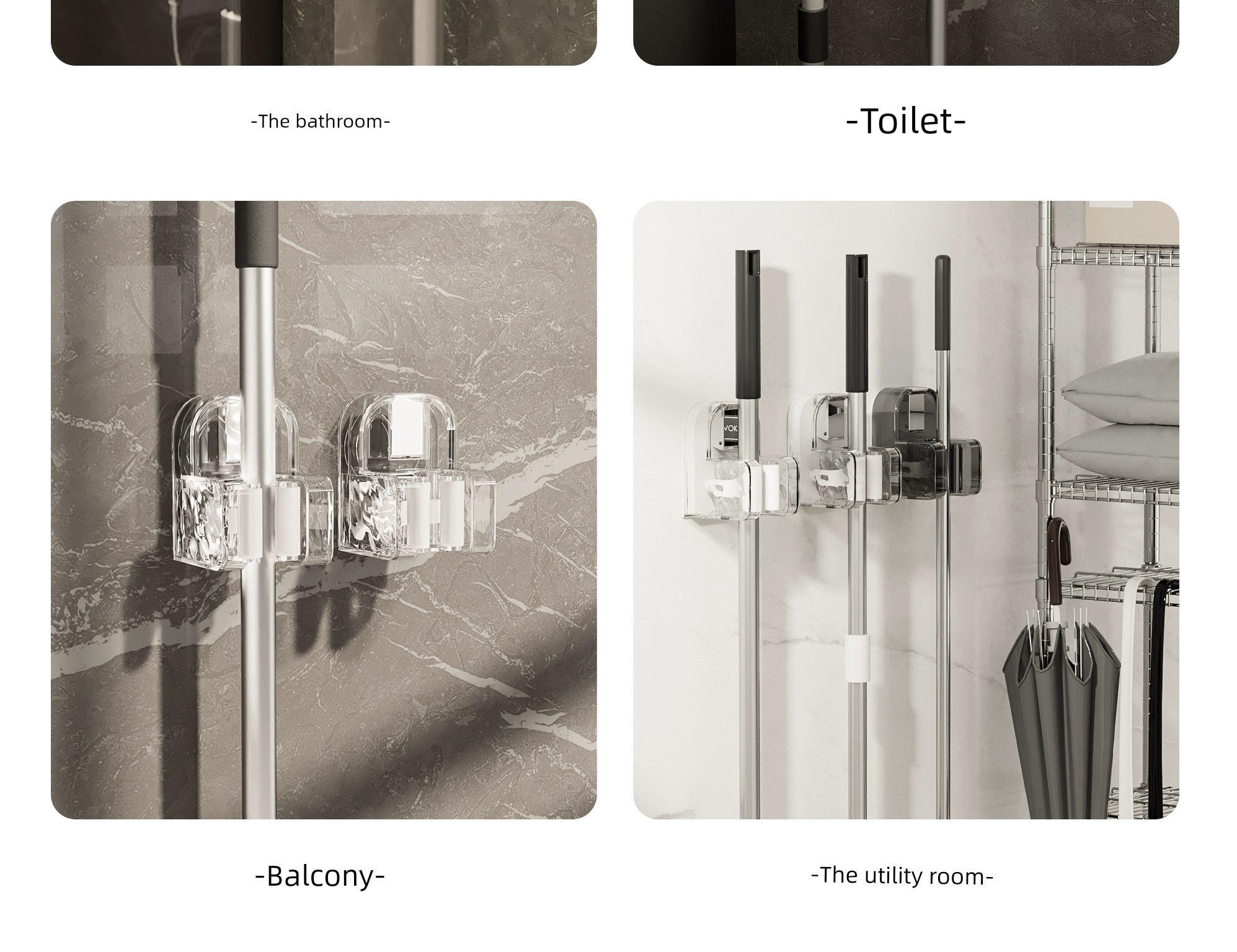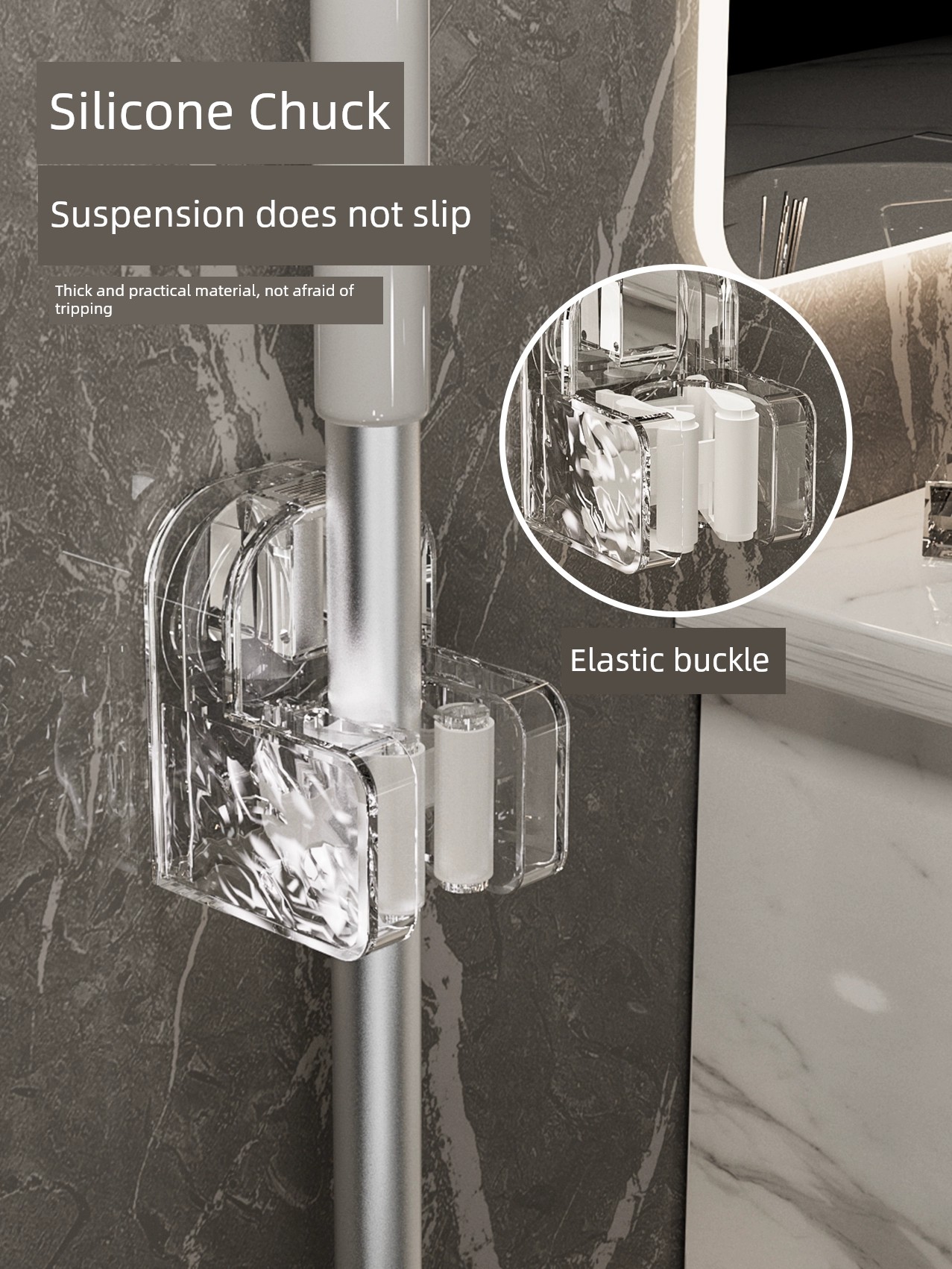 Suction Cup Mop Wall Hanging Clip Punch-Free Toilet Bathroom Hanging Broom Holder Mop Holder Mop Hook Handy Gadget