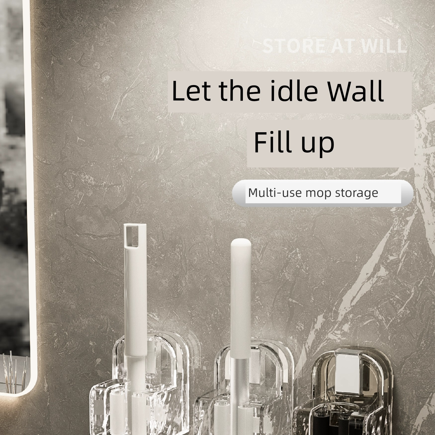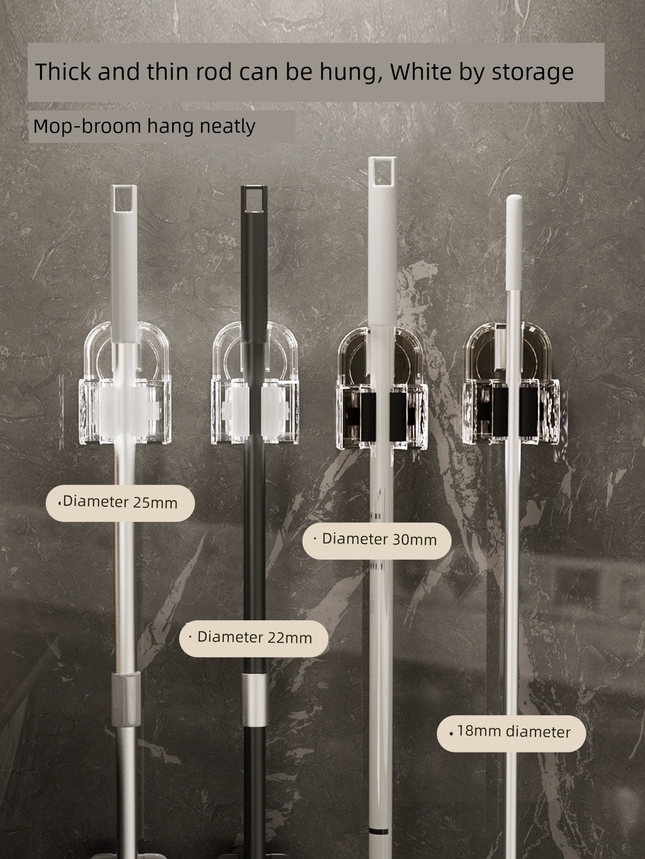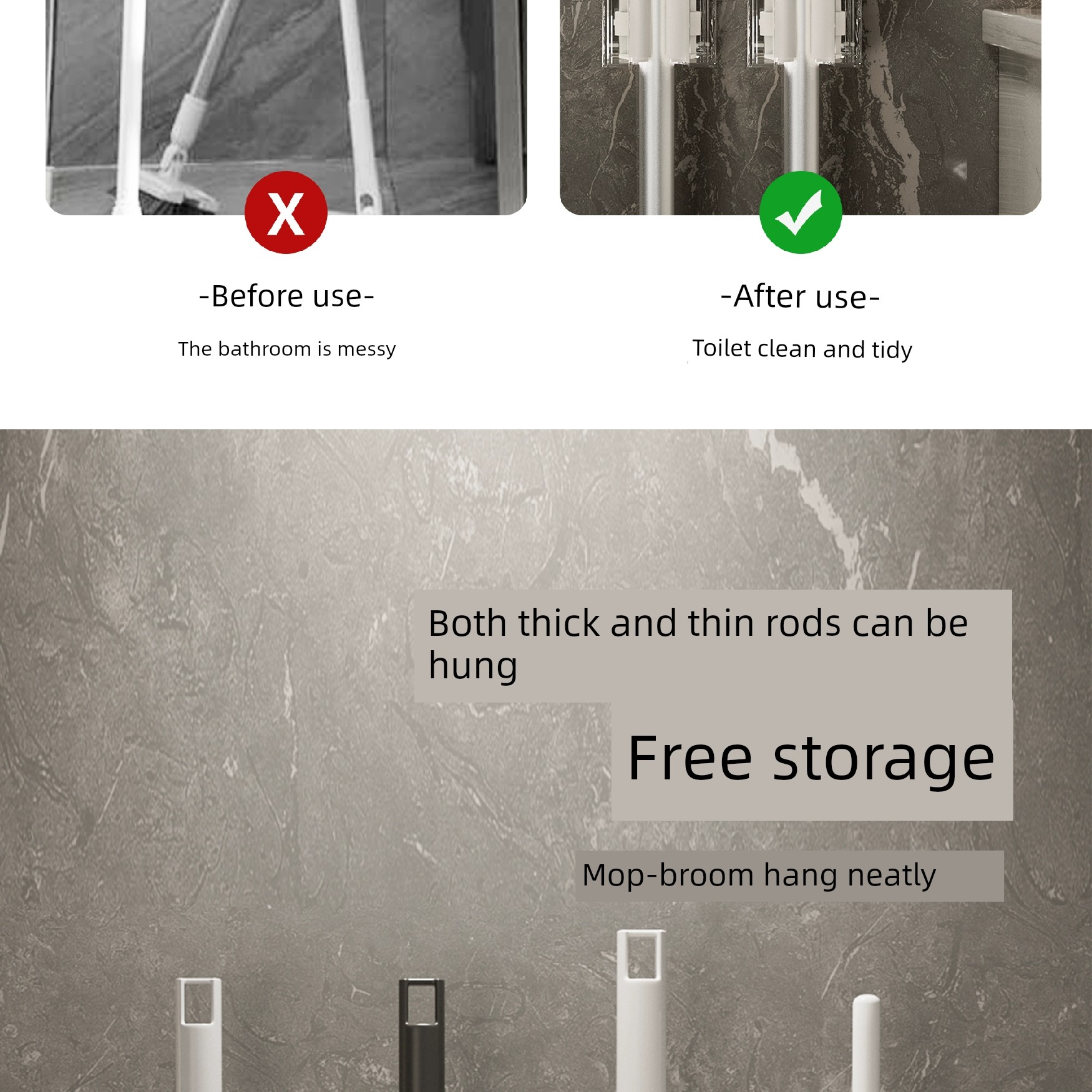 Suction Cup Mop Wall Hanging Clip Punch-Free Toilet Bathroom Hanging Broom Holder Mop Holder Mop Hook Handy Gadget