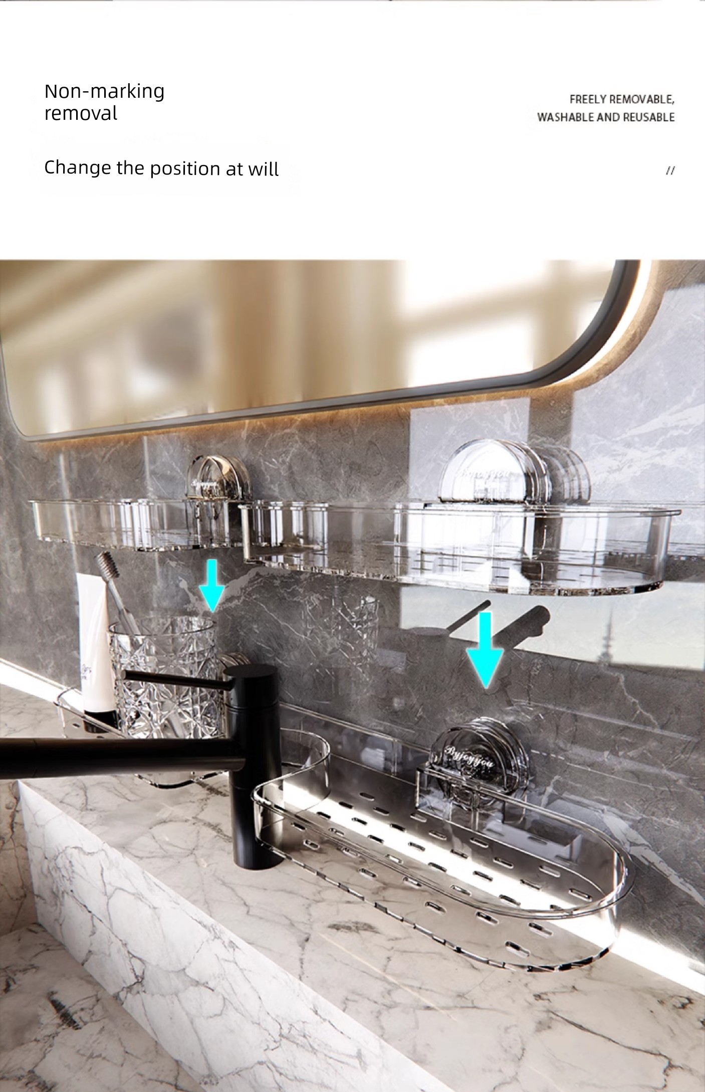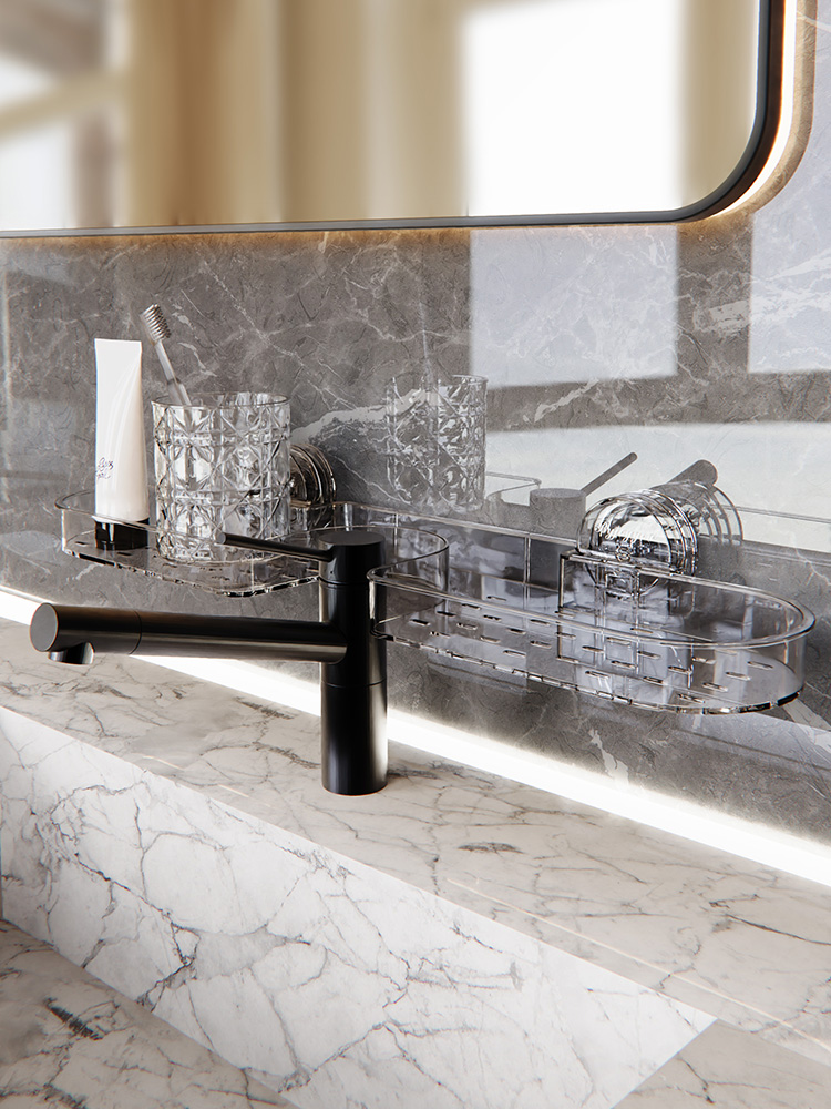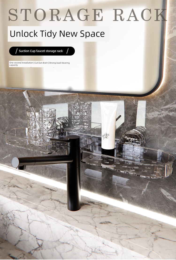 Suction Cup Wash Table Rack Wall-Mounted Punch-Free Bathroom Sink Mirror Front Faucet Storage Rack Drain Rack