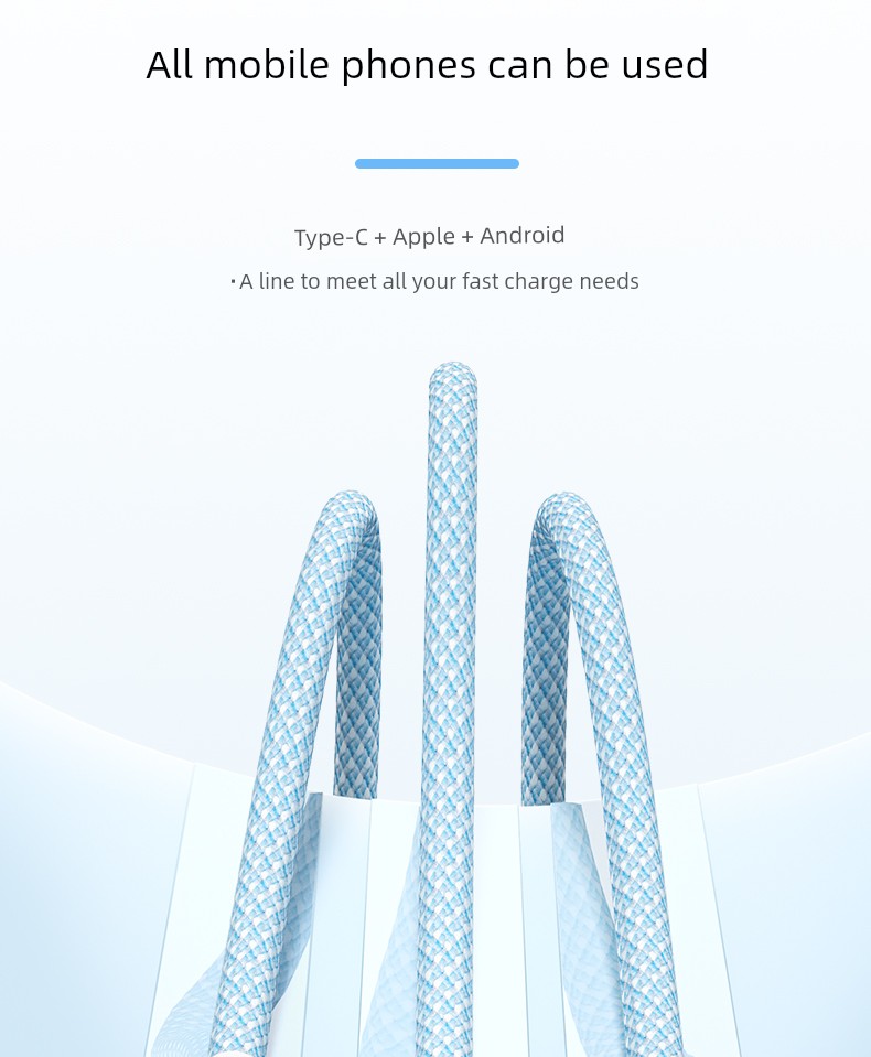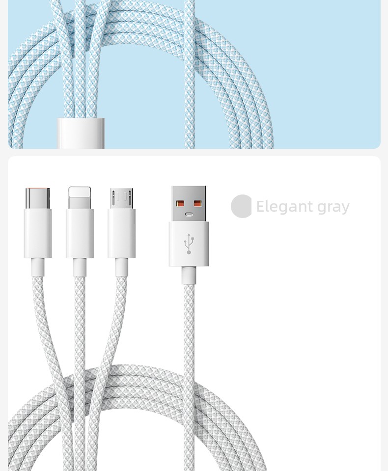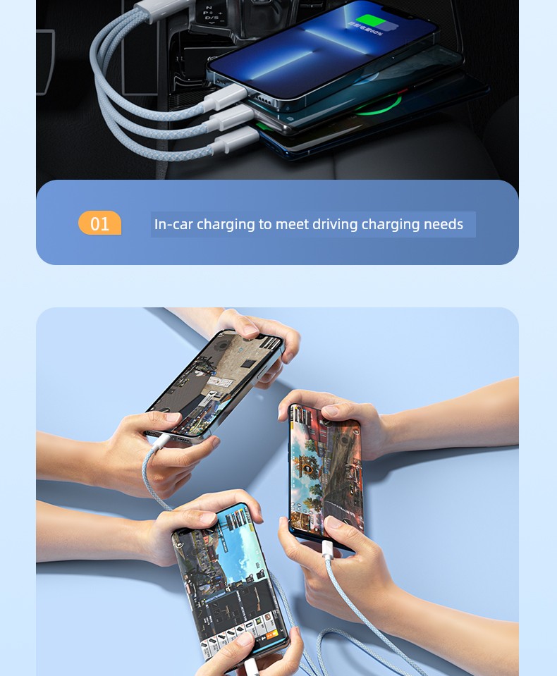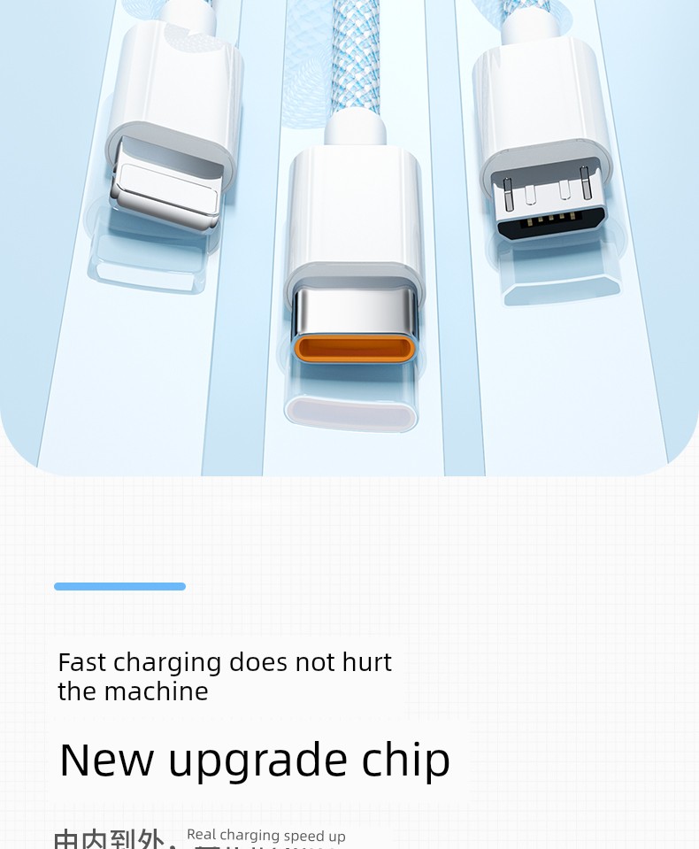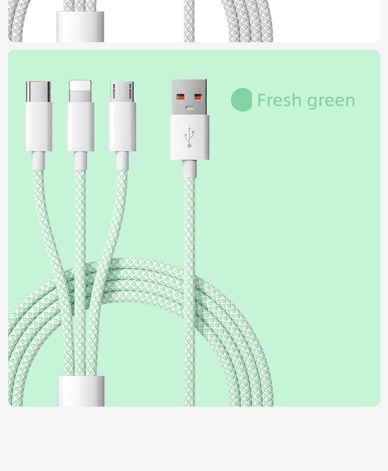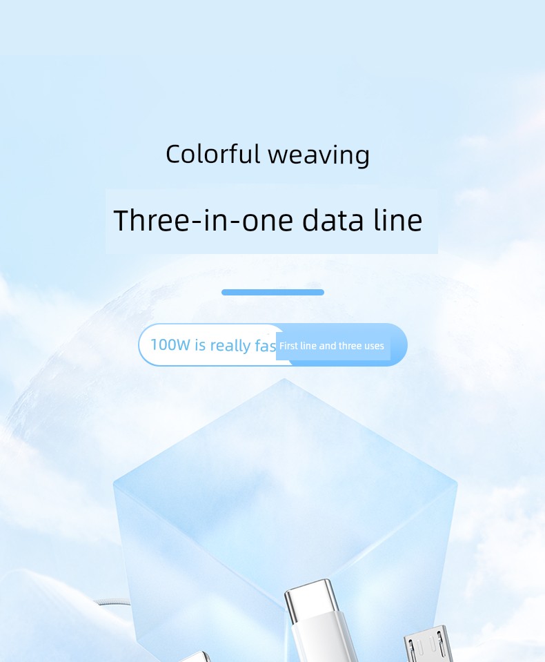 Suitable for 100W Data Cable Three-in-One Fast Charging for Apple Huawei Android with Plug Suit One-to-Three Mobile Phone Charging Cable Lead Three-in-One Neutral Car Three-Head Multifunctional