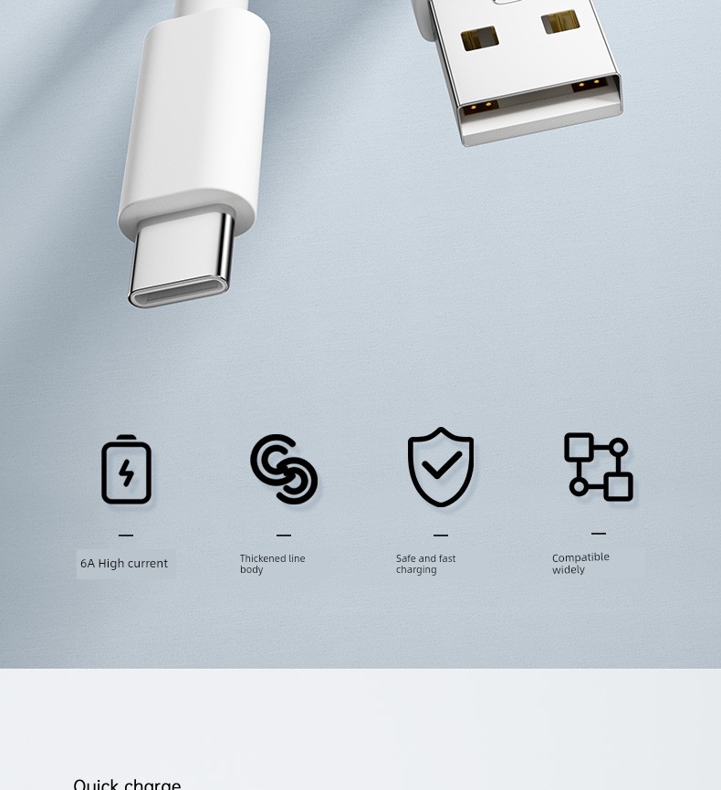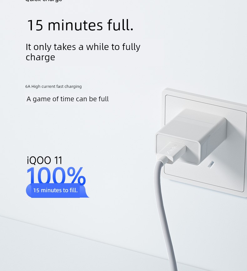 Suitable for 120W Charging Cable for Vivo5iqoo Fast Charge Data Cable 7 Super Iqoo9pro3 Dual-Engine Flash Charging Neo5 Mobile Phone 6A Aikutypec Charging Cable 8 Long 10 Suit
