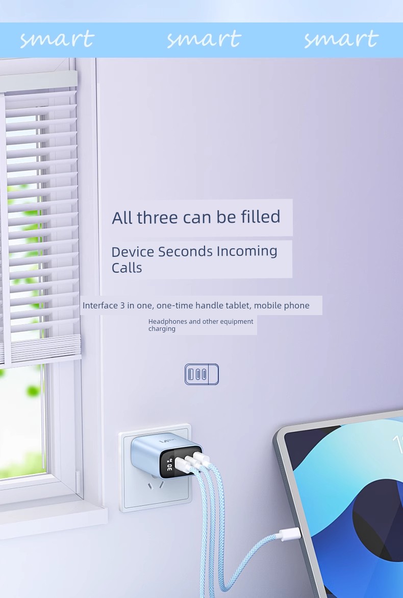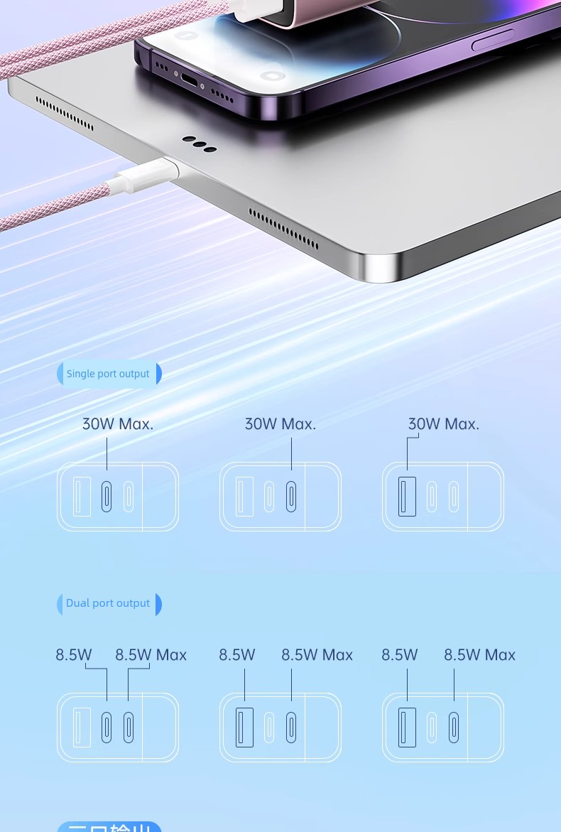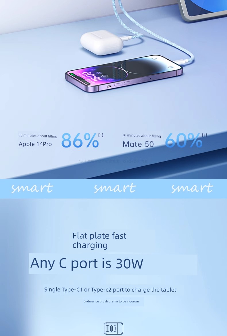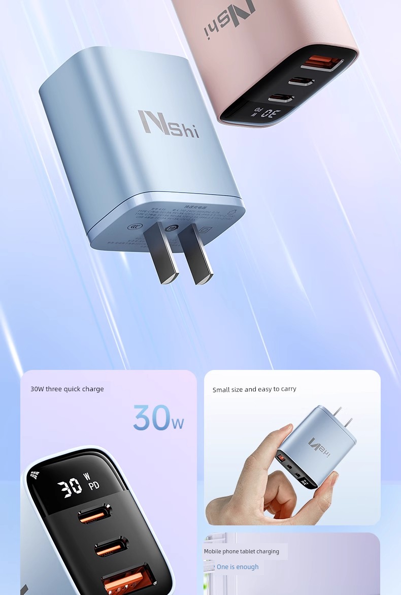 Suitable for 30W Three-Port Charger Head for Apple 16 Iphone15 Charging Cable 14 Promax13ipad Huawei Xiaomi Android Phone Universal Multi-Port PD Fast Charge Usbtypec Cable