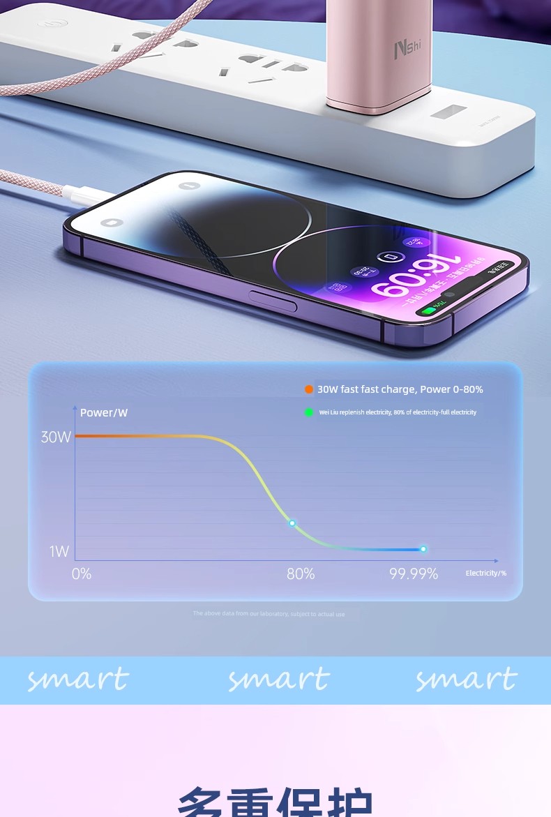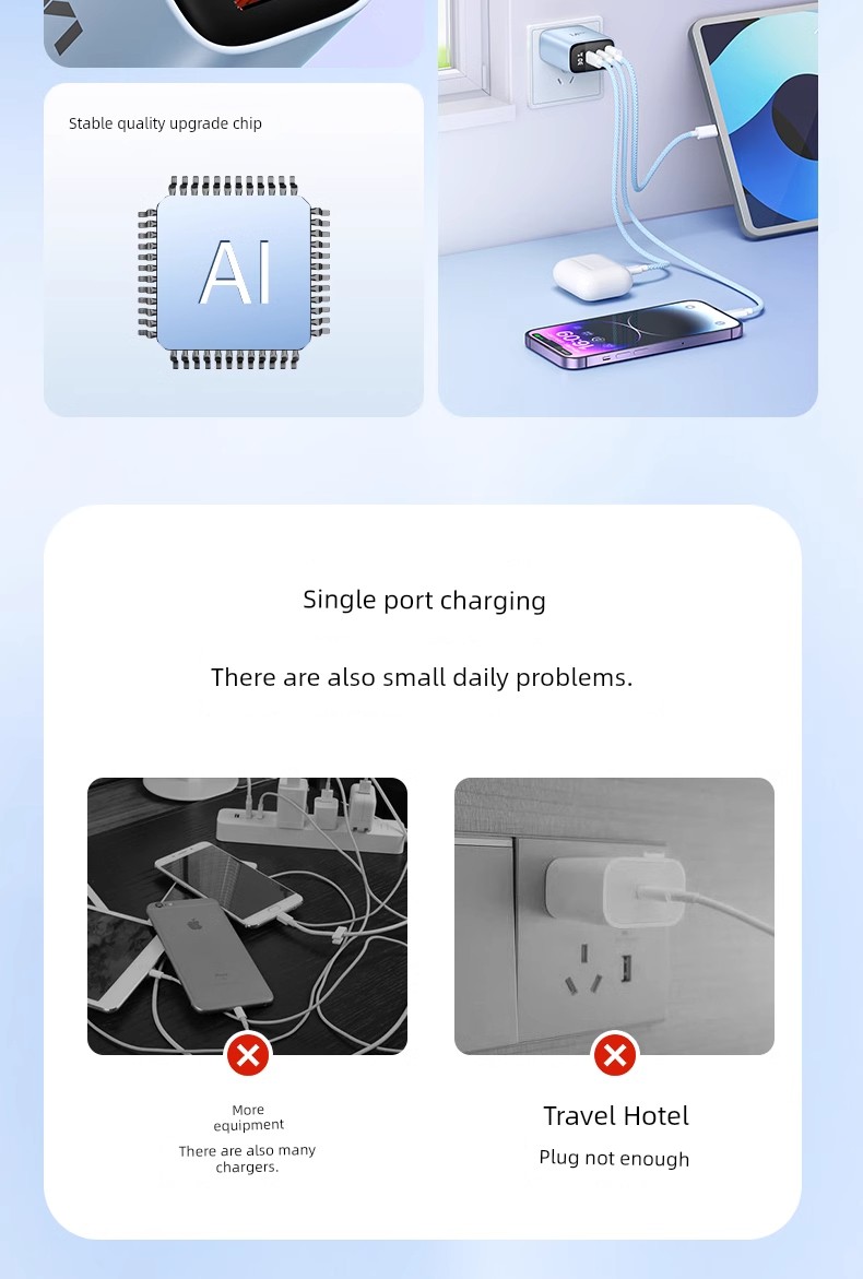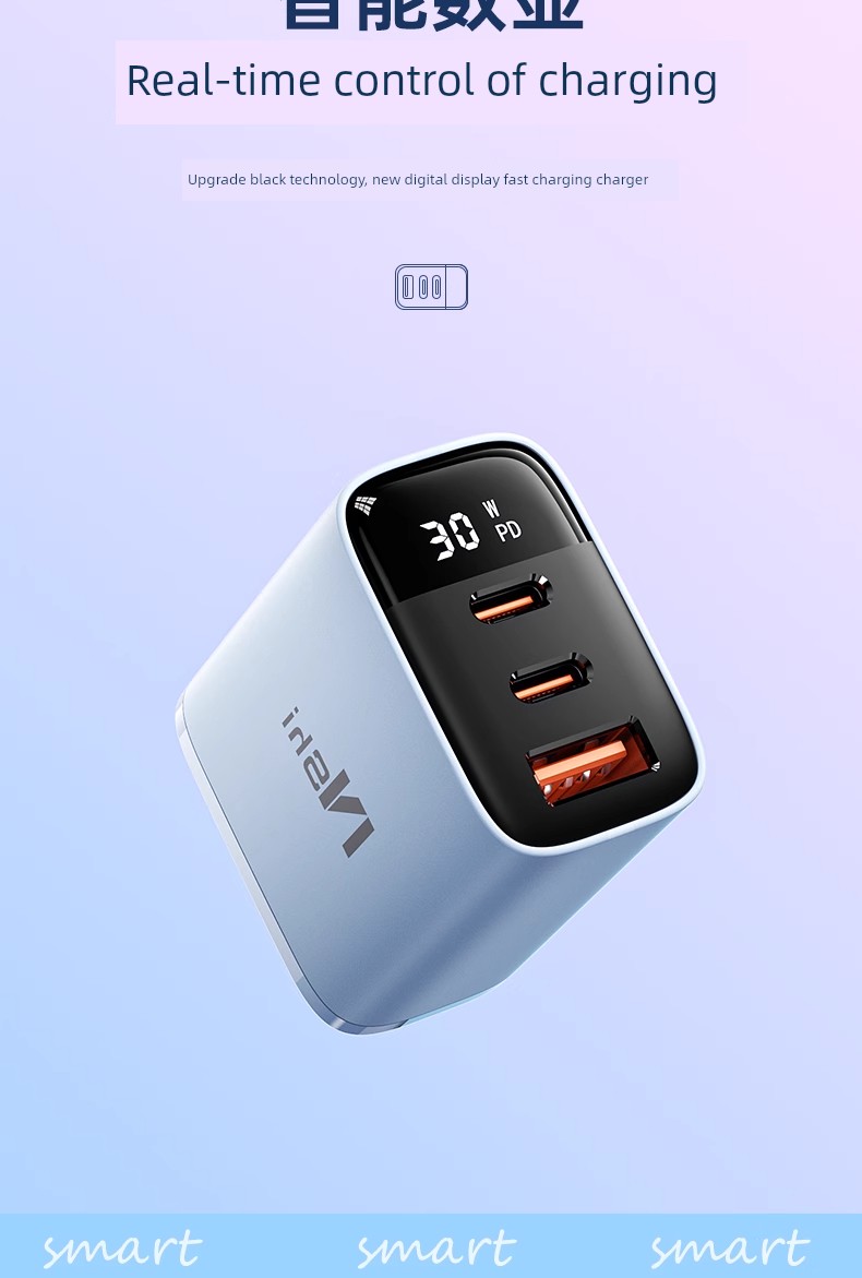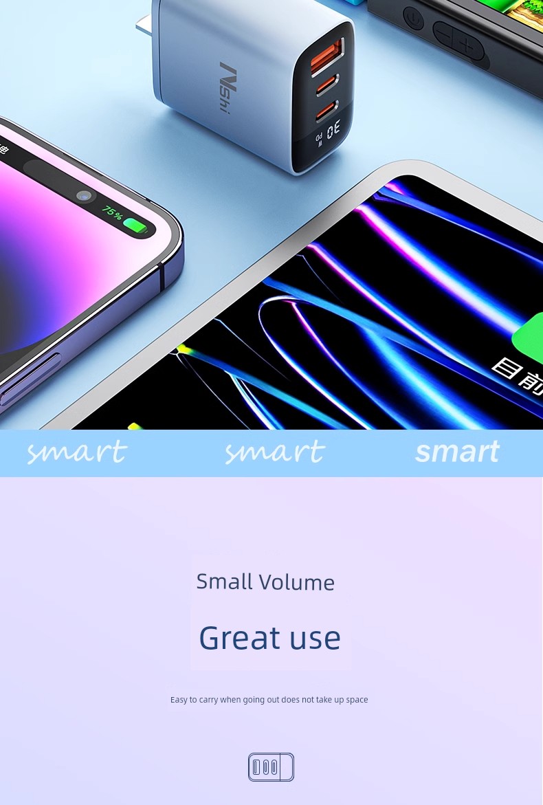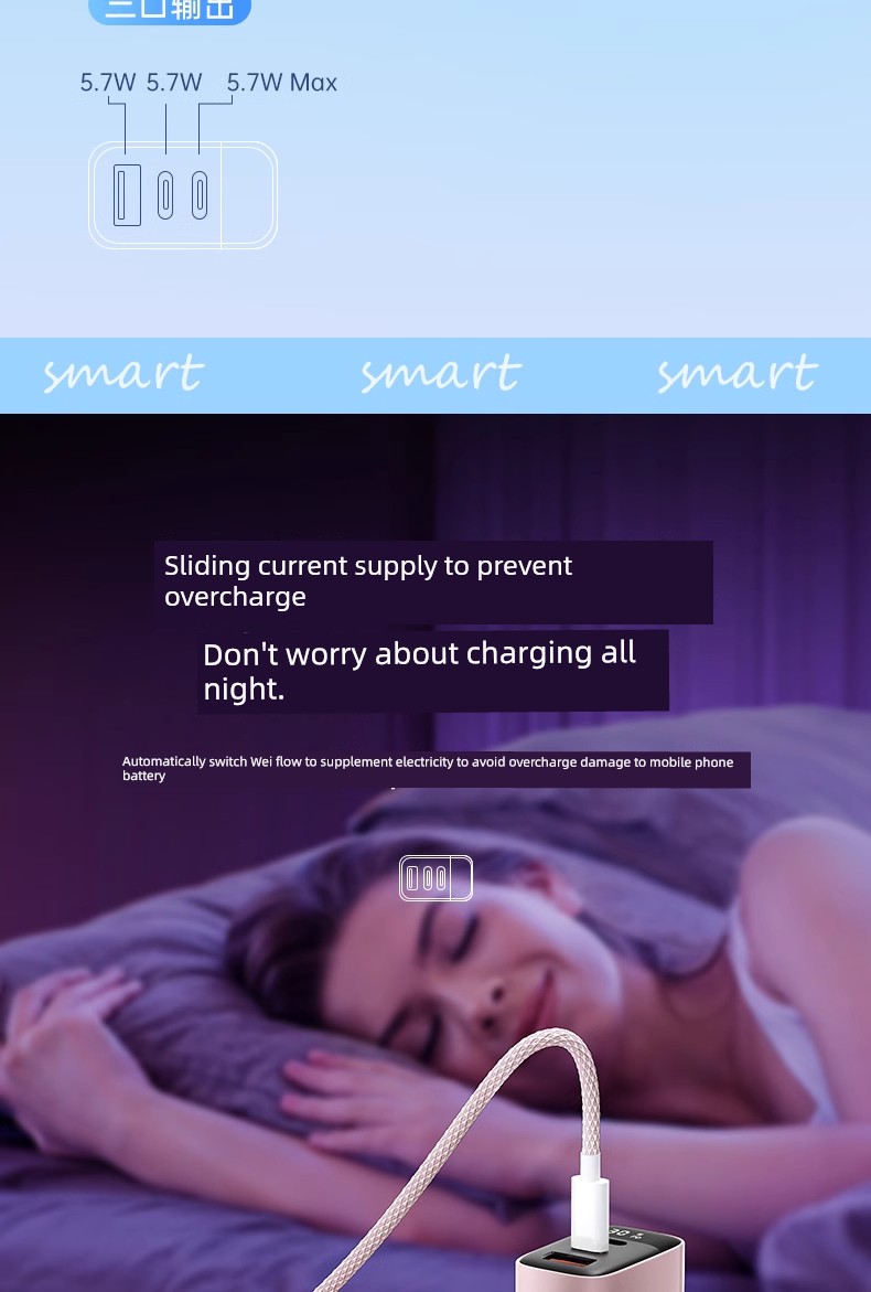 Suitable for 30W Three-Port Charger Head for Apple 16 Iphone15 Charging Cable 14 Promax13ipad Huawei Xiaomi Android Phone Universal Multi-Port PD Fast Charge Usbtypec Cable