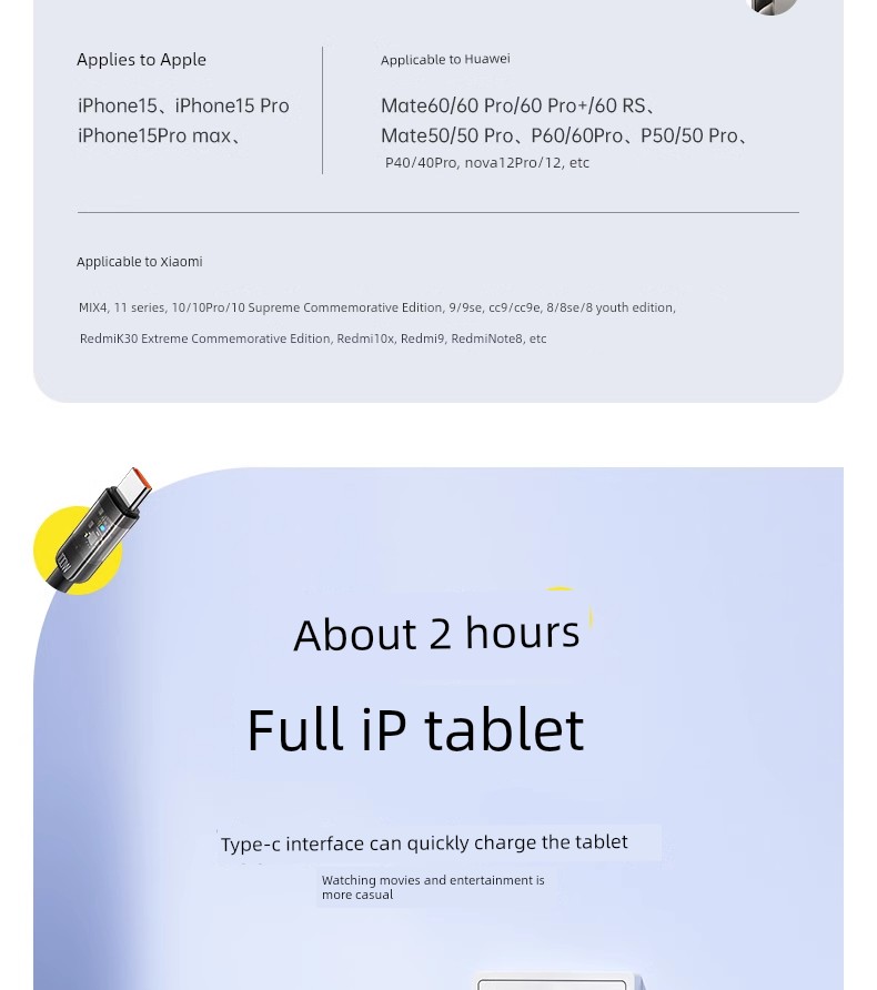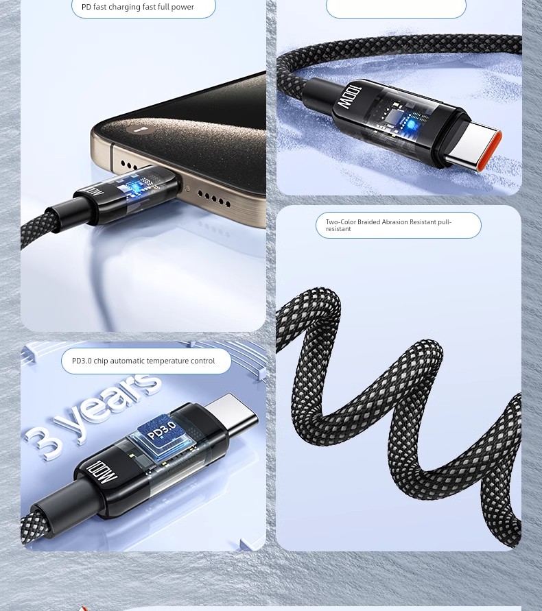 Suitable for Apple 15 Charging Cable Iphone15promax Charging Cable USBC Dual Typec Data Cable Pd100w Fast Charge CTOC Port Mobile Phone Notebook Ipadair Tablet Plus
