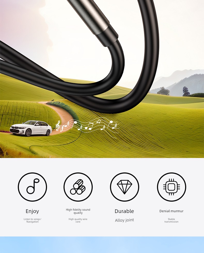 Suitable for Aux Audio Cable Car Sound Box 3.5mm Double-Headed Plug-in Computer Suitable for Apple Huawei Mobile Phone Typec Output Conversion Car Player Headset Aus Data Public-to-Public