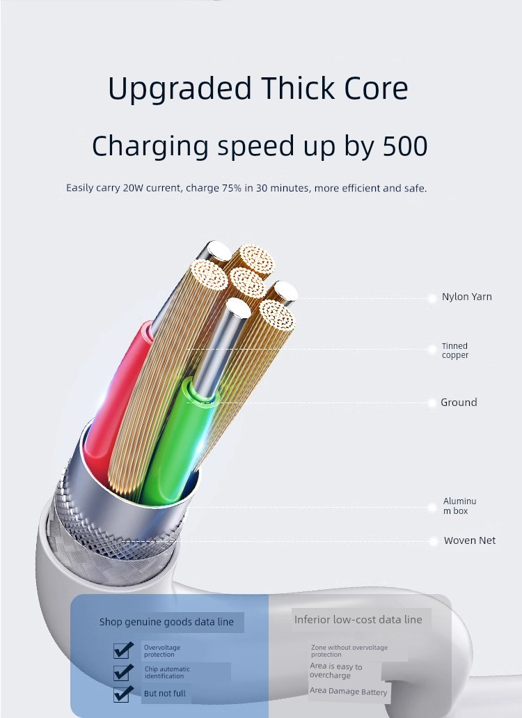Suitable for Pd20w Data Cable for Apple Iphone14 Fast Charge 11 Flash Charge 13promax Mobile Phone 12 Charger 7P Genuine Goods 6S Long 8plus Charging Cable iPad Tablet 2 M Xr Punch X
