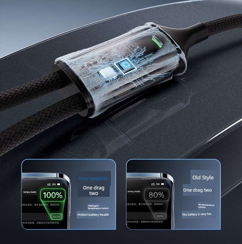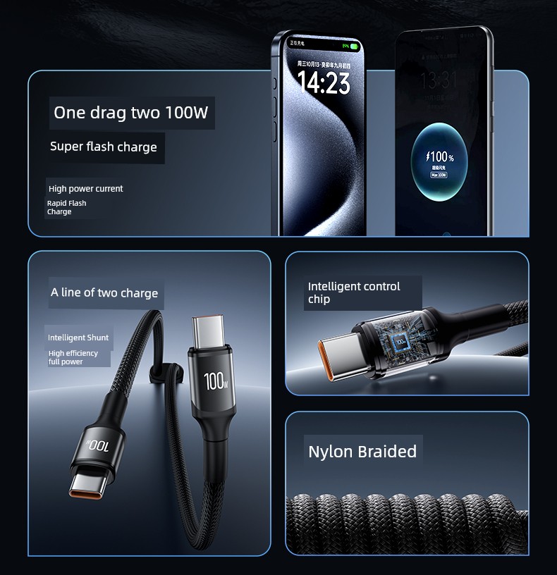 Suitable for Two-in-One Data Cable Apple 16iphone Charging Cable 15Promax Dual Typec One Drag Two Pd100w Fast Charging Car Phone Ipadair Tablet Laptop