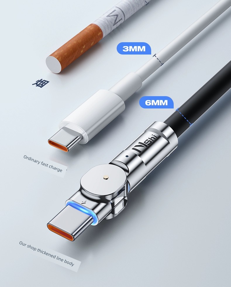 Suitable for Typec Data Cable 120W Fast Charge 6A for Huawei Vivo Xiaomi Oppo Rotate Charger Tpyec Long Flash Charge Mobile Phone Android Super Flash Charge Car Tapyc Customer Line