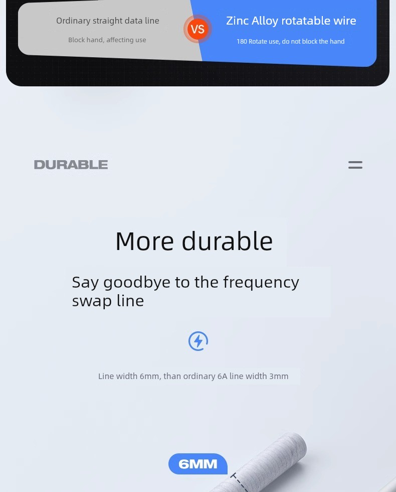Suitable for USB Type-C Cable 120W Fast Charge 6A for Huawei Vivo Xiaomi Oppo Rotatable Tpyec Super Pura70 Flash Charge Android Neutral Car Tapyc Charging Cable Long