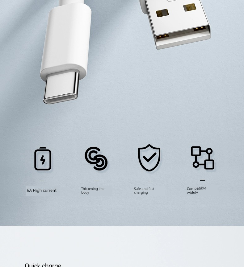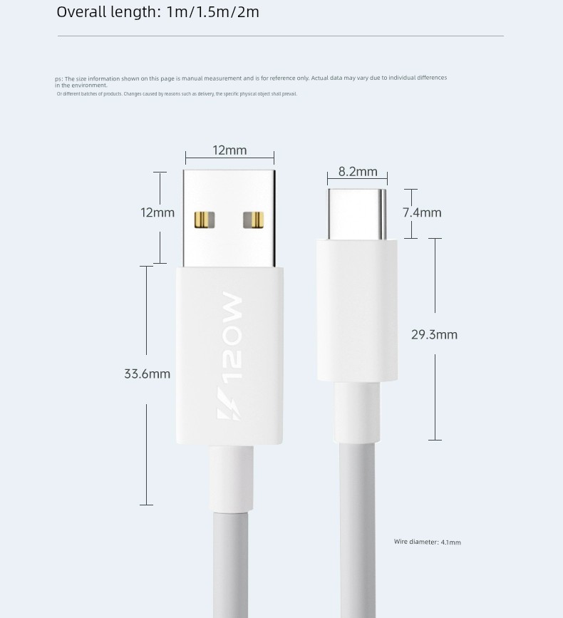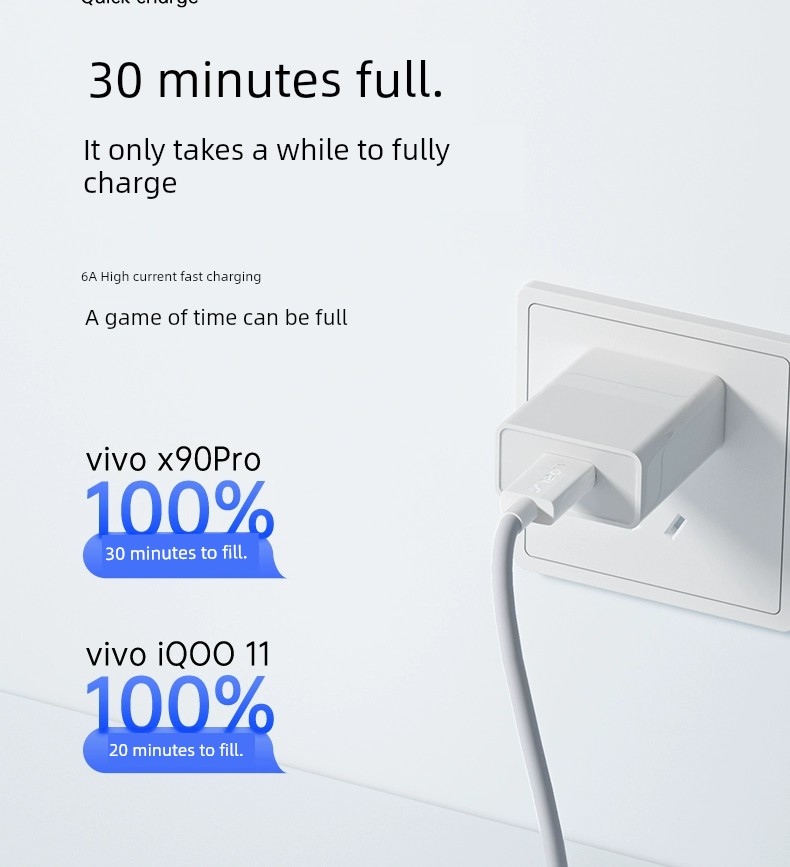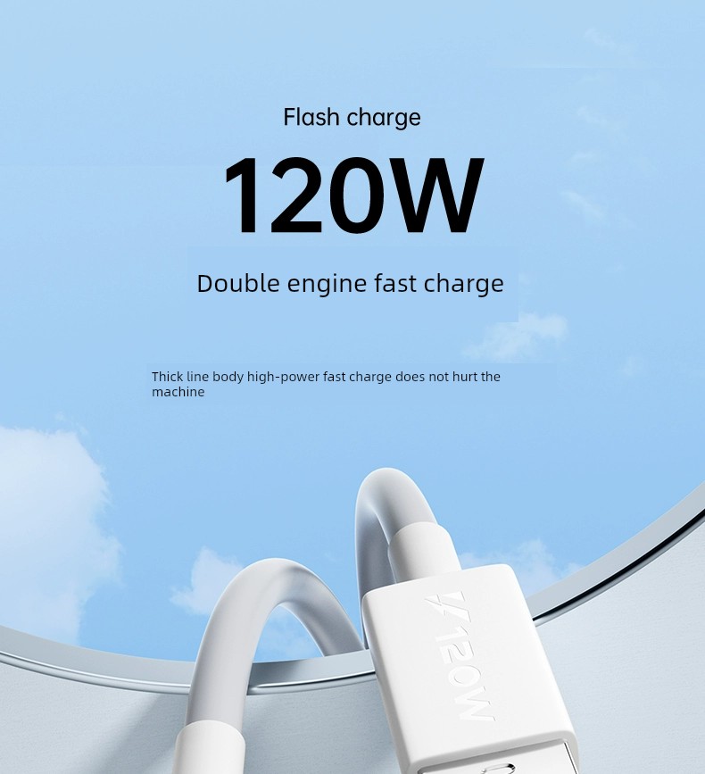 Suitable for USB Type-C Cable 120W Fast Charge Applicable to Vivo Dual-Engine Iqoo7 Mobile Phone Tpyec Charging Cable 6A Android Genuine Goods Pro Flash Charge Dedicated Super Android 2 M 66W Long