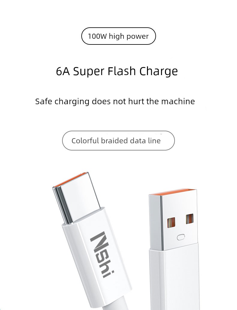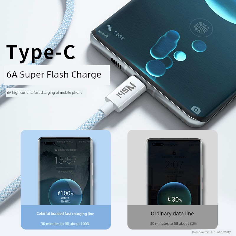 Suitable for USB Type-C Cable Fast Charge 6A New Arrival Suitable for Oppo True Me Eno6 X2 Mobile Phone R17 Charger K7xfind Data Cable A91 Suit X3pro Head Super Reno4 Flash Charge 5R