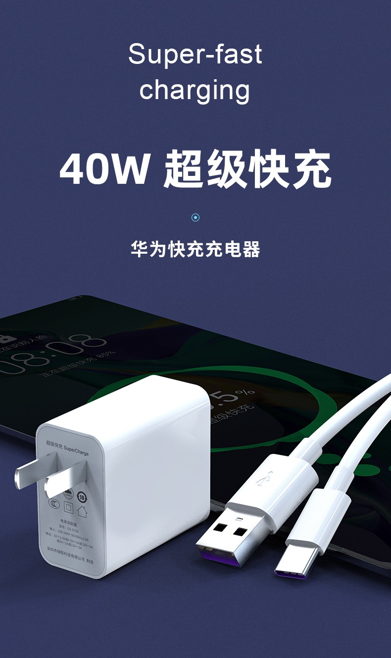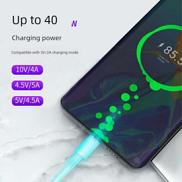 Suitable for USB Type-C Cable Huawei Mate20pro Ud Charging Cable Mobile Phone 5A Super 40W Fast Charge Charging Cable Flash Charge Dedicated Typec Long TPC