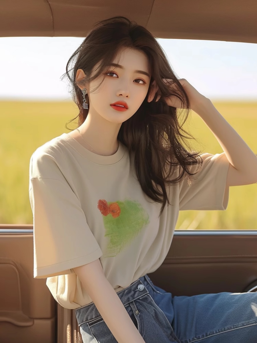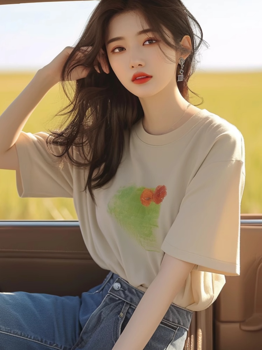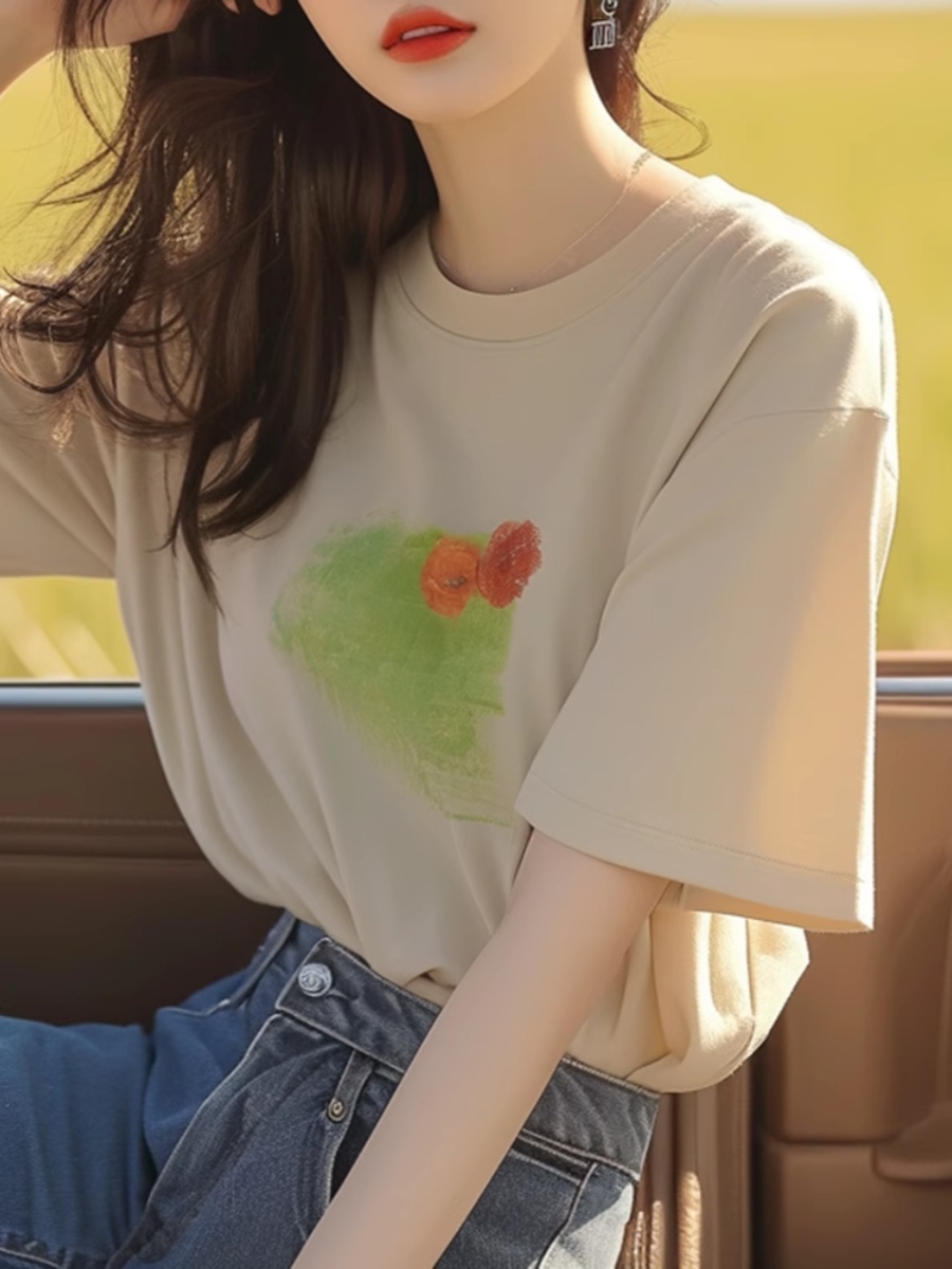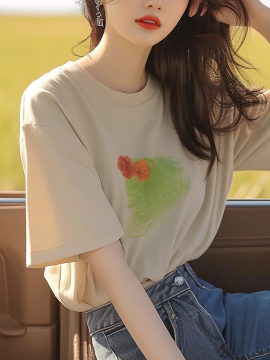 Summer Korean Style Chic Western Style Youthful-Looking Unique Chic Beautiful Tops Stylish Niche Style Apricot Short-Sleeved T-shirt for Women