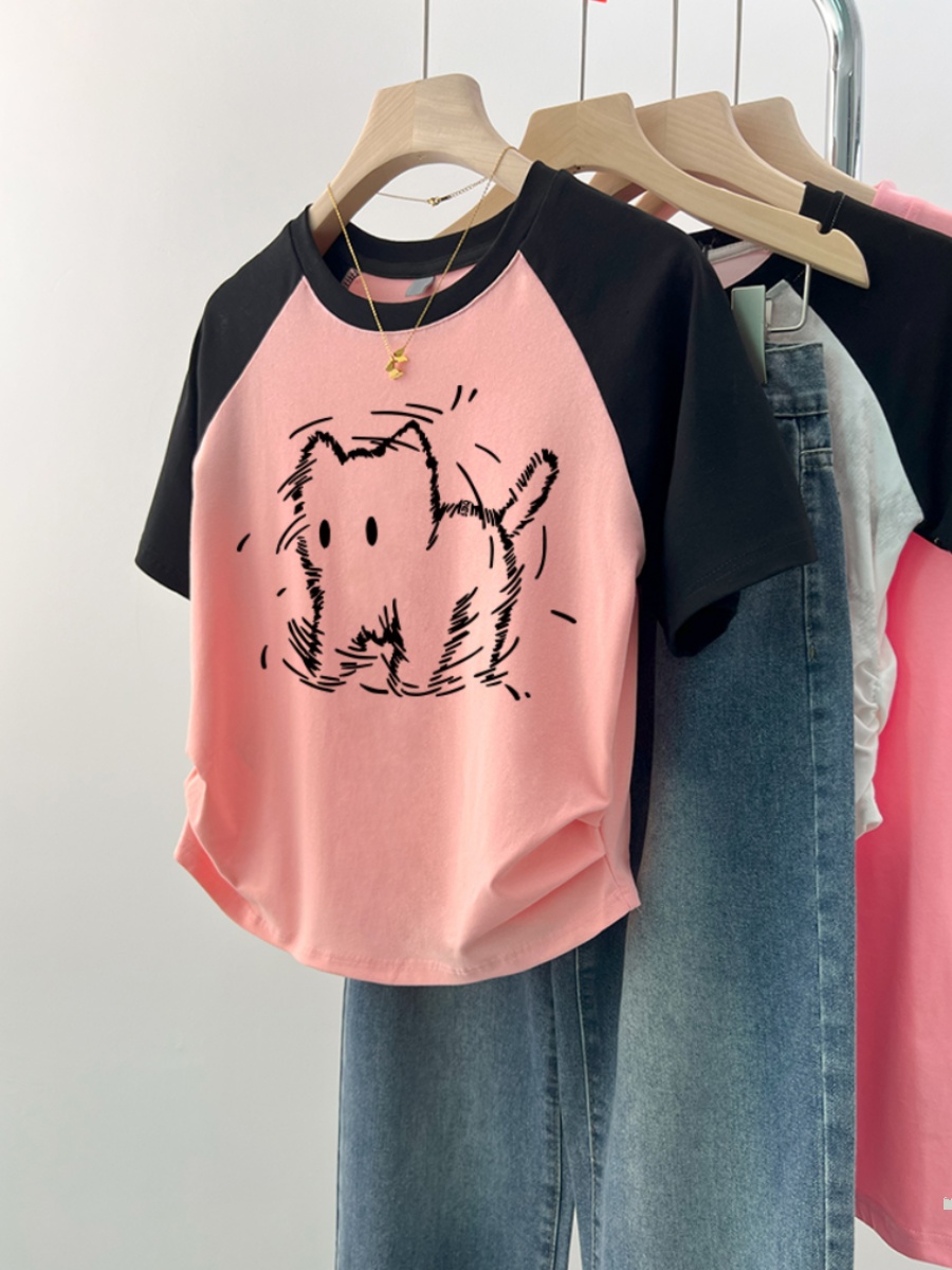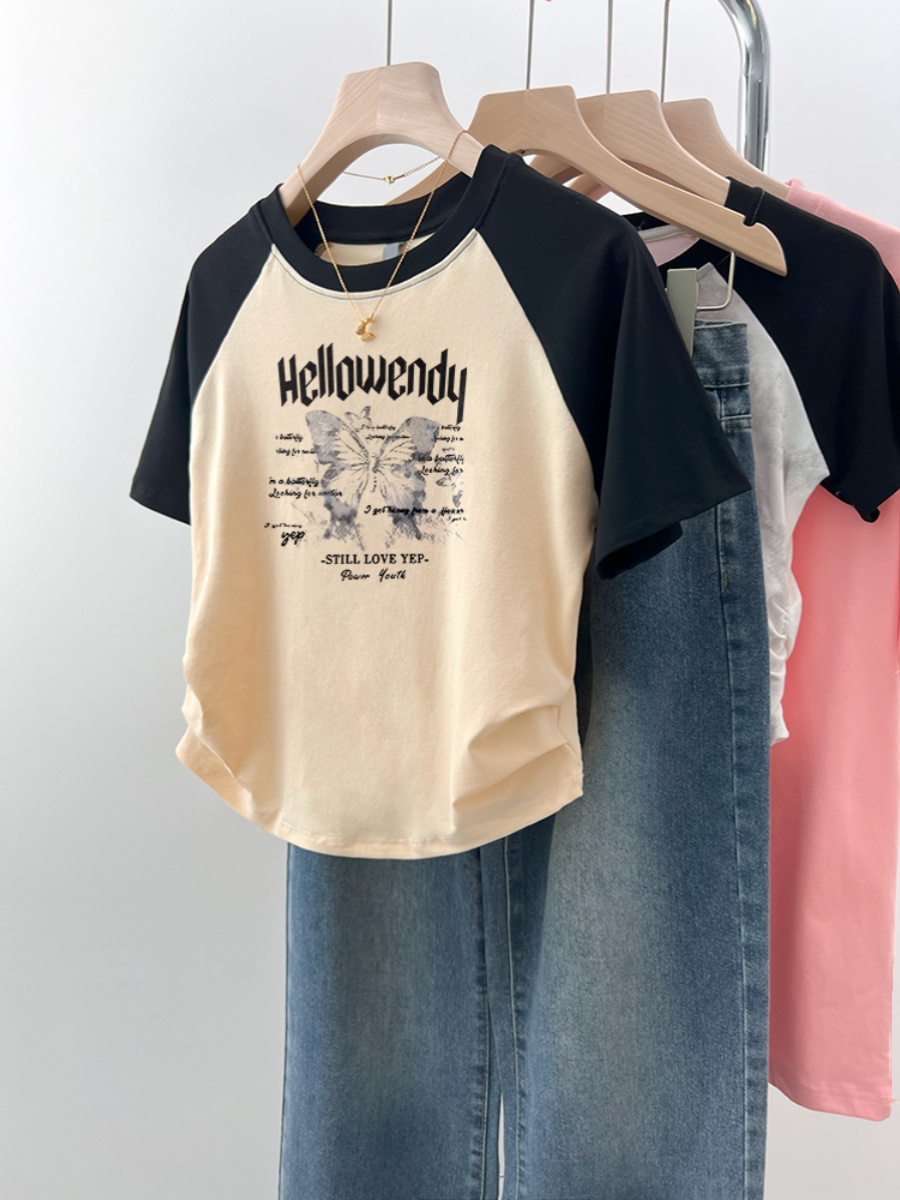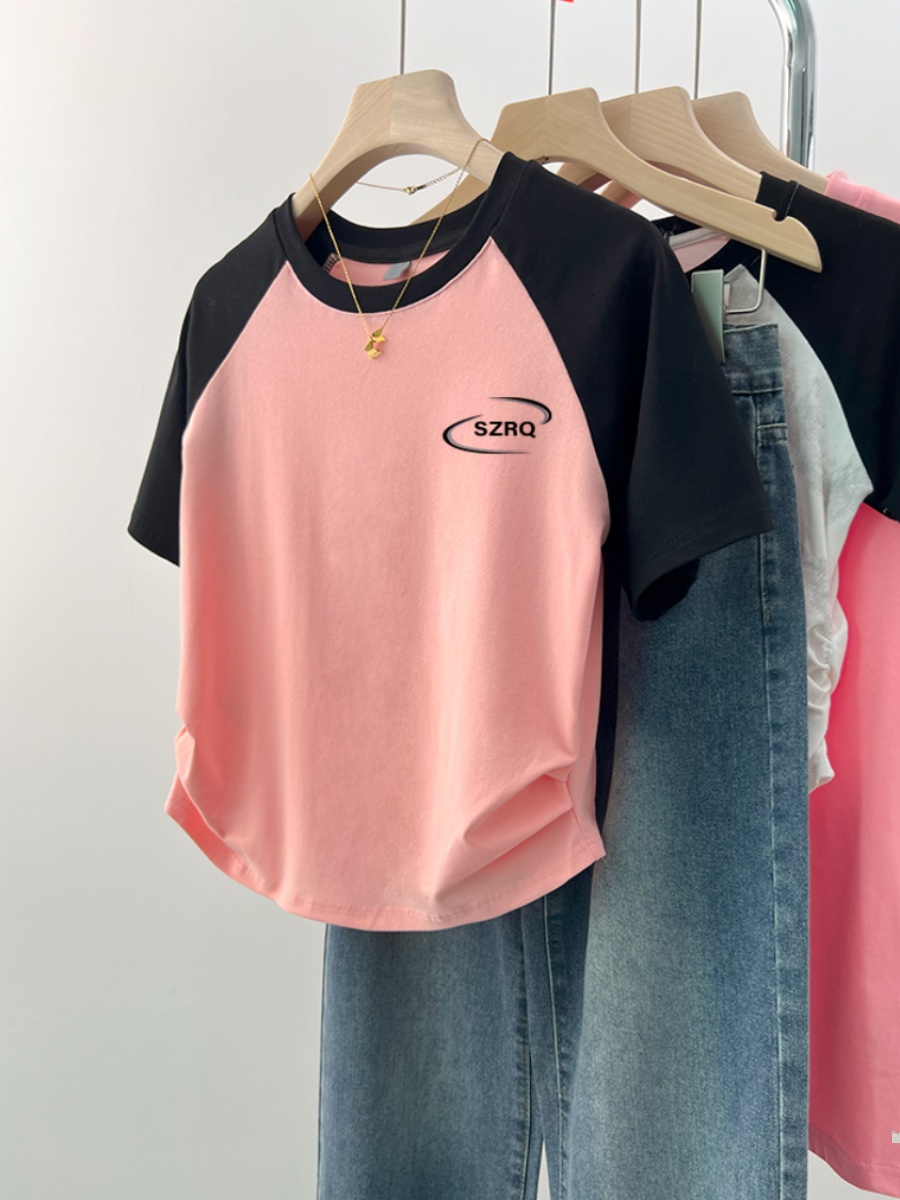 Summer Short Sleeve T-Shirt Women's 2025 New Arrival Raglan Stylish Slim Looking Plus Size Slightly Oversized Girls Silm Short Top Clothes