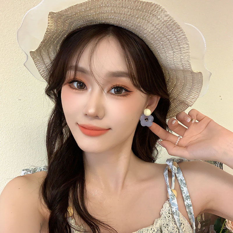 Super Fairy Color Flower Stud Earrings for Women 2024 New Arrival Fancy Special-Interest Design Hot-Selling Earrings Sweet and Cute Earrings