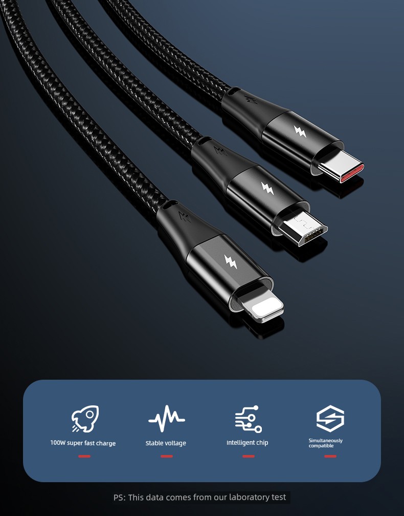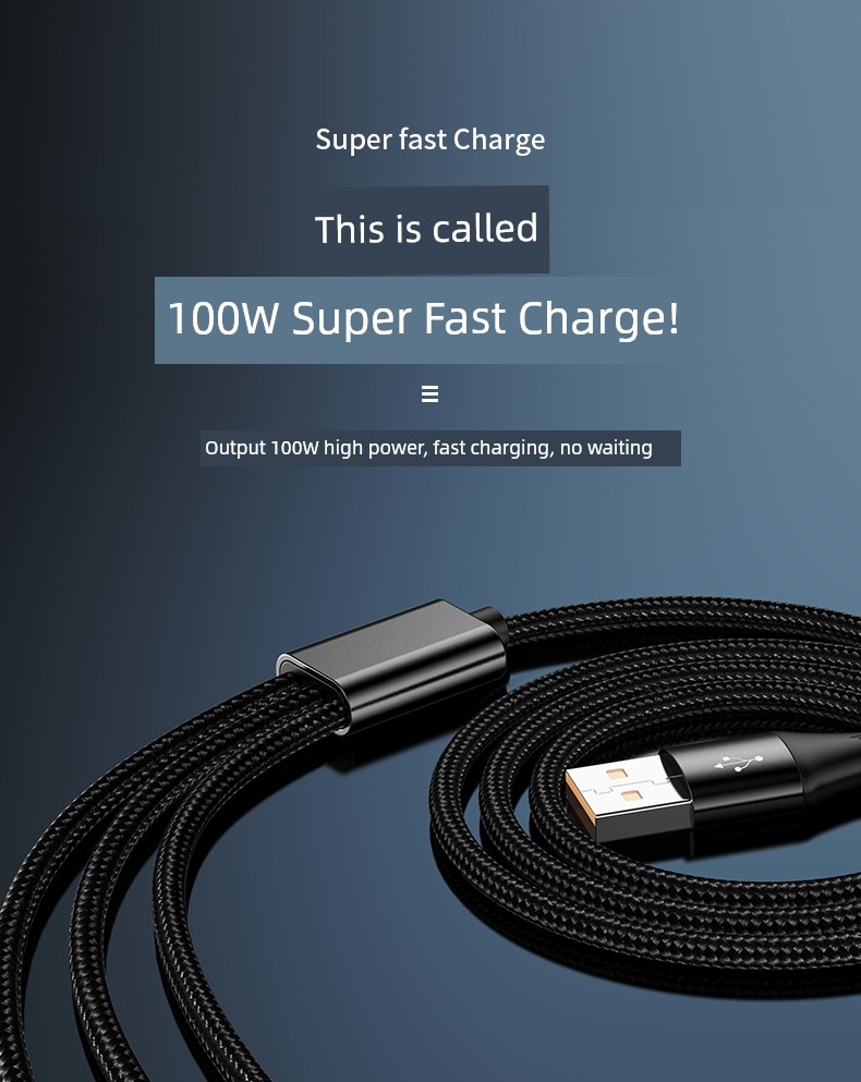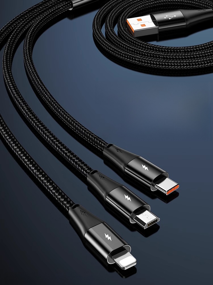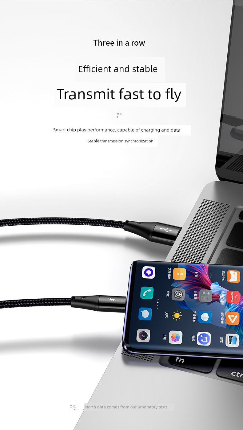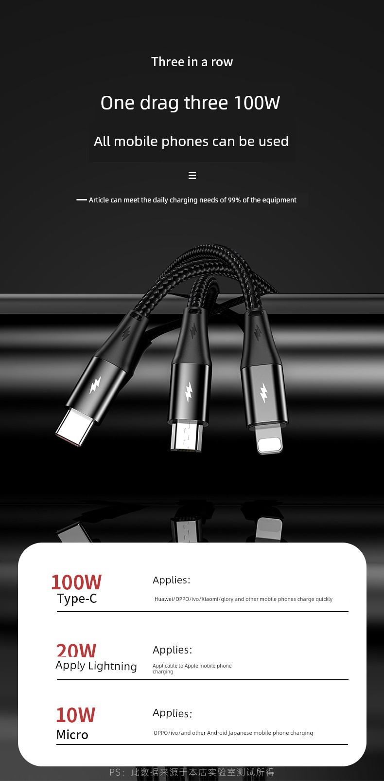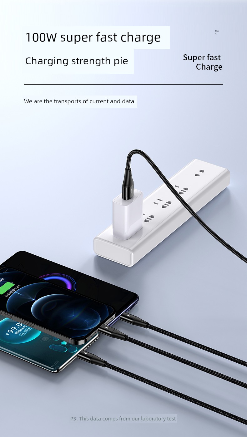 [Super Fast Charge W] BS Data Cable Three-in-One One-to-Three Charger One-to-Three Car 6A Universal Universal Phone USB Multi-Head Multi-Function Applicable to Apple Typec Huawei Android