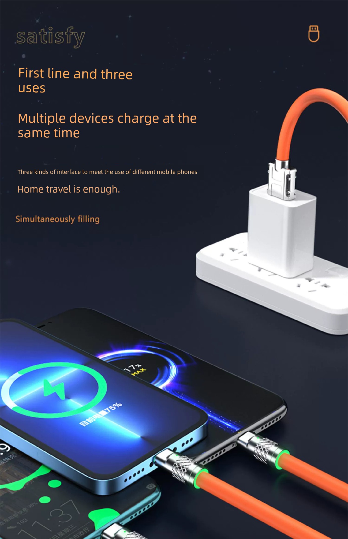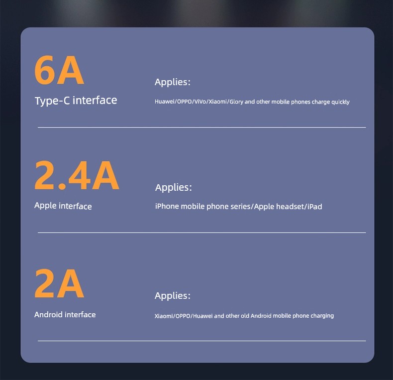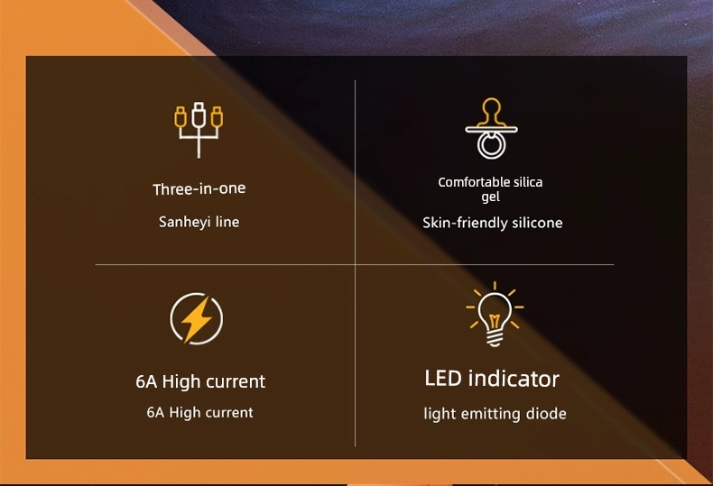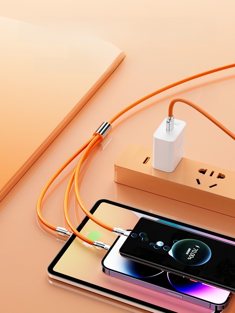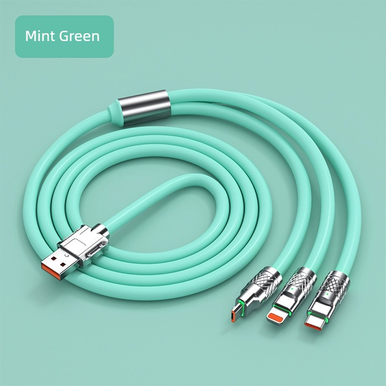 [Super Fast Charge W] Data Cable Three-in-One 6A Charger One-to-Three Car Universal Universal Phone USB Multi-Head Two-Purpose Multi-Function Applicable to Huawei Apple Android Typec