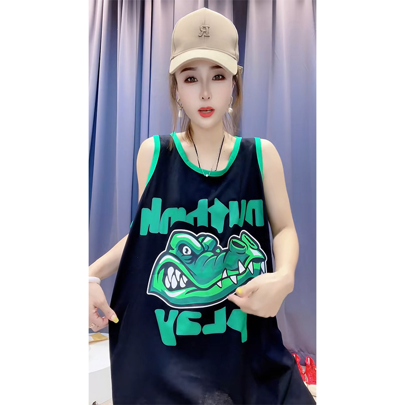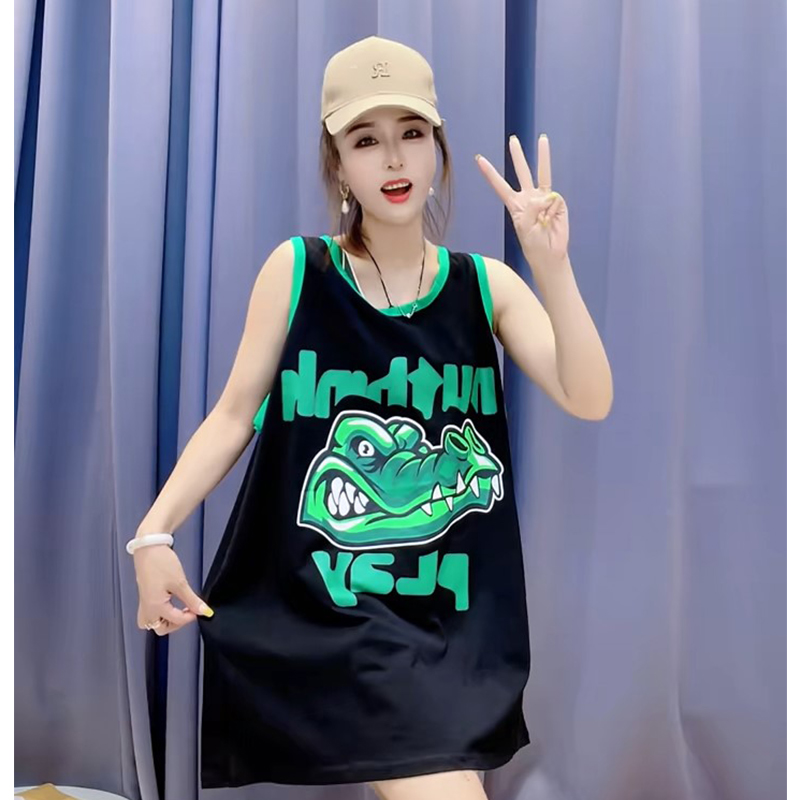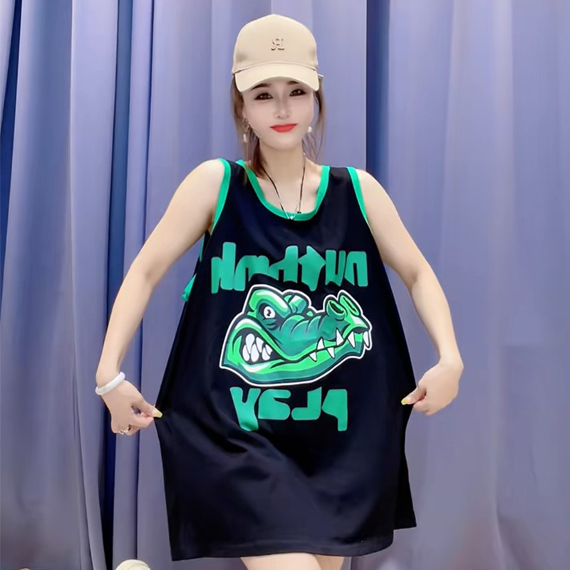 Super Plus Size 1.00 Kg-150.00 kg Cartoon Pattern Print Loose Patchwork Vest Female Summer Plus Size Ladies Cool Casual Sleeveless T-Shirt