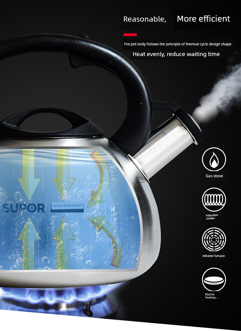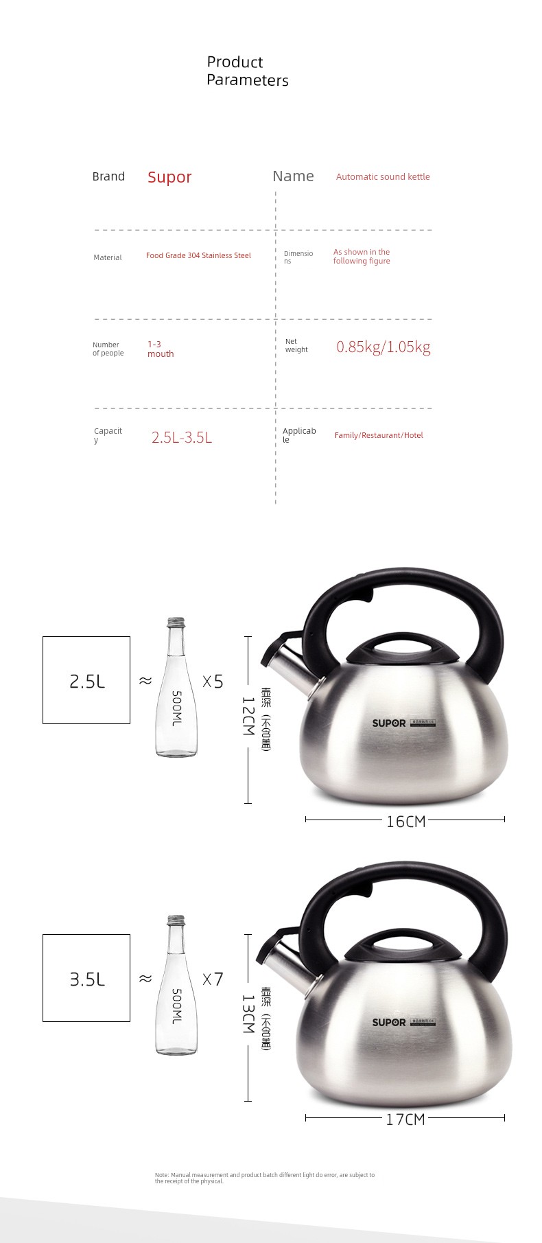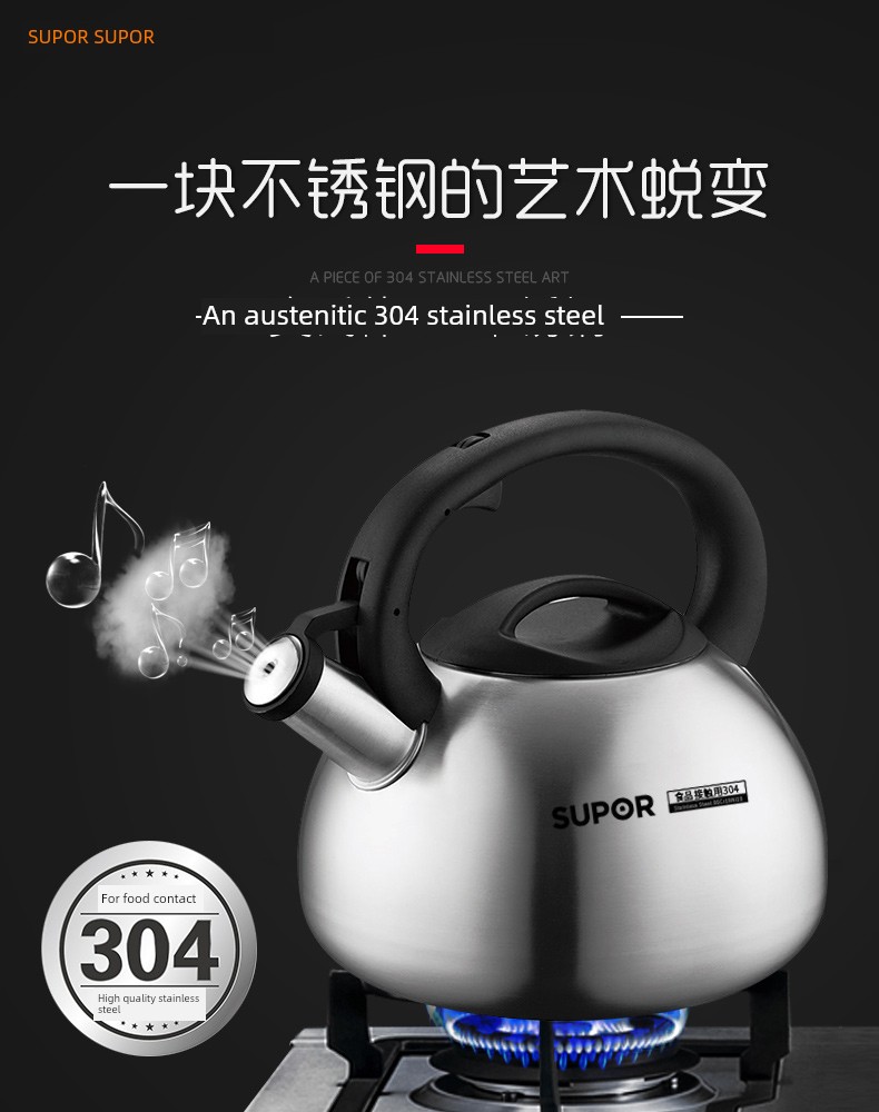 Supor 304 Stainless Steel Kettle Gas Gas Induction Cooker Teapot Automatic Sound Kettle Whistle