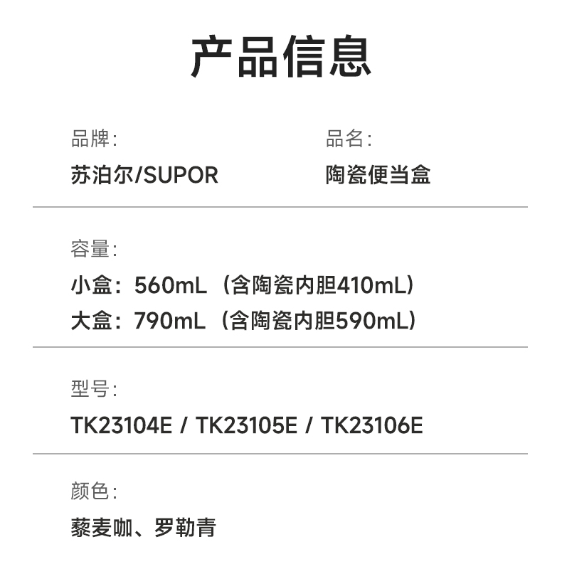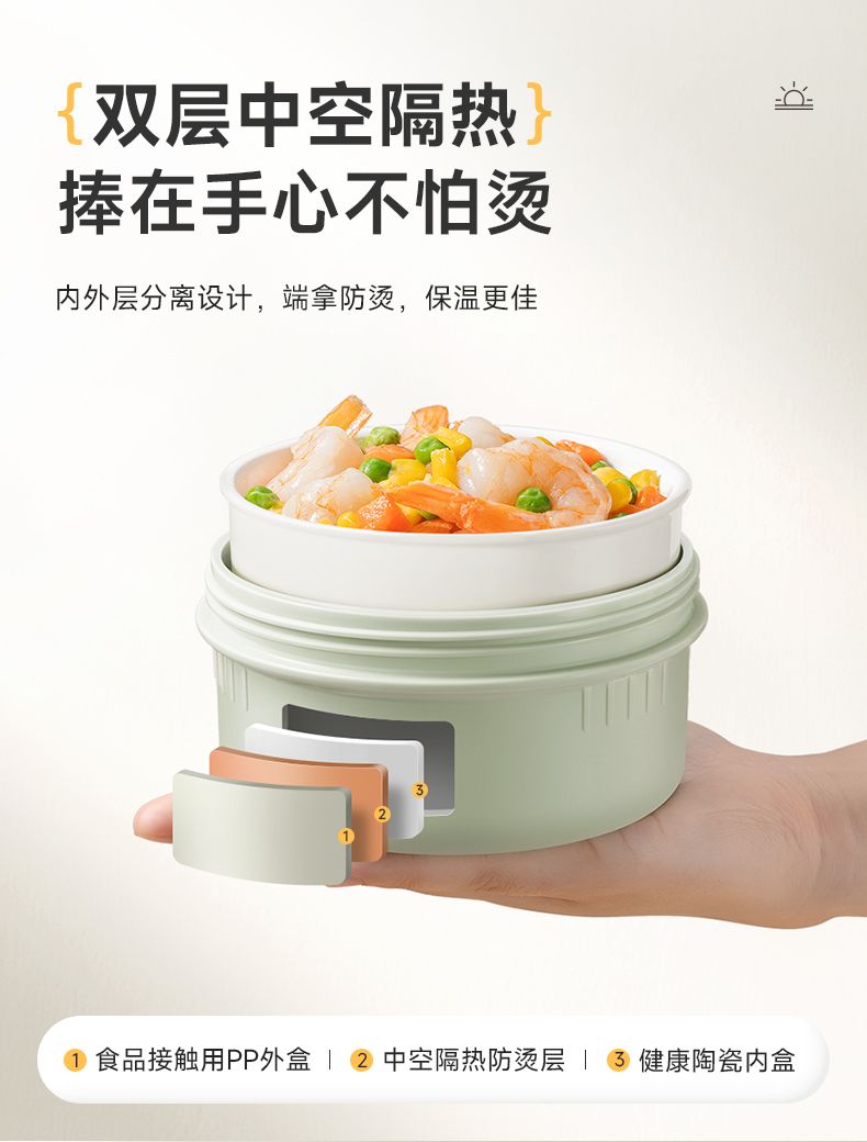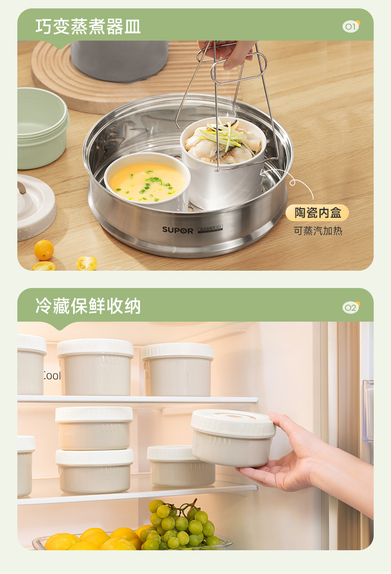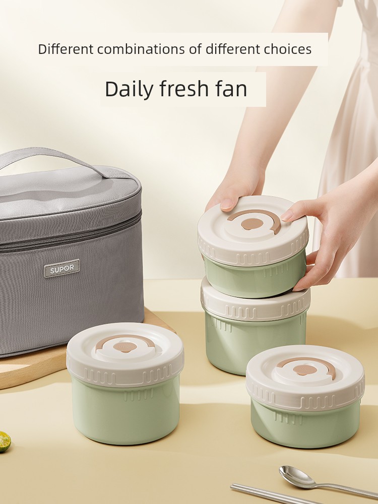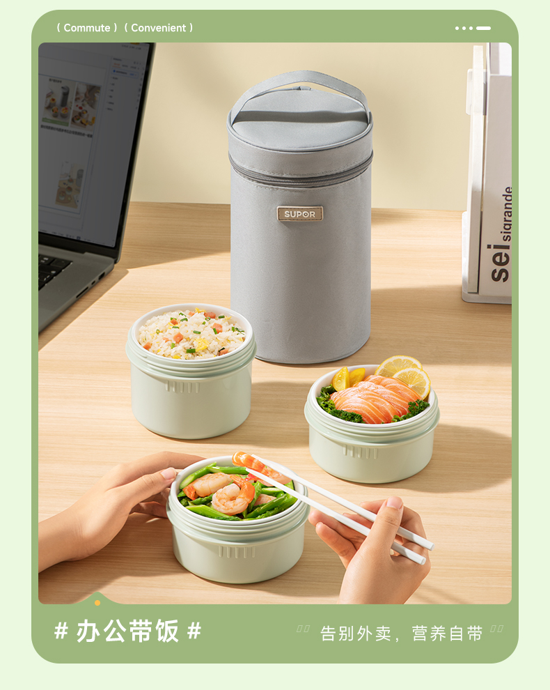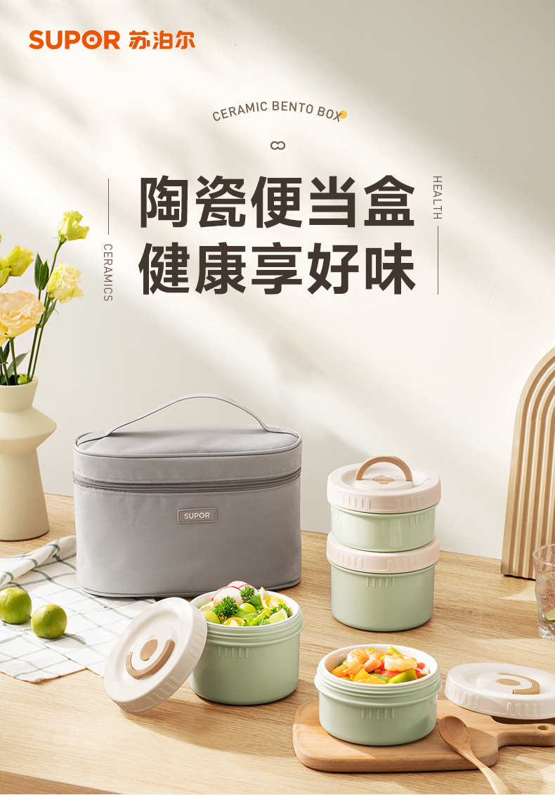 Supor Ceramic Lunch Box Work Lunch Box Three-Piece Microwave Oven Heating Oven Mitts Compartment Student Lunch Box