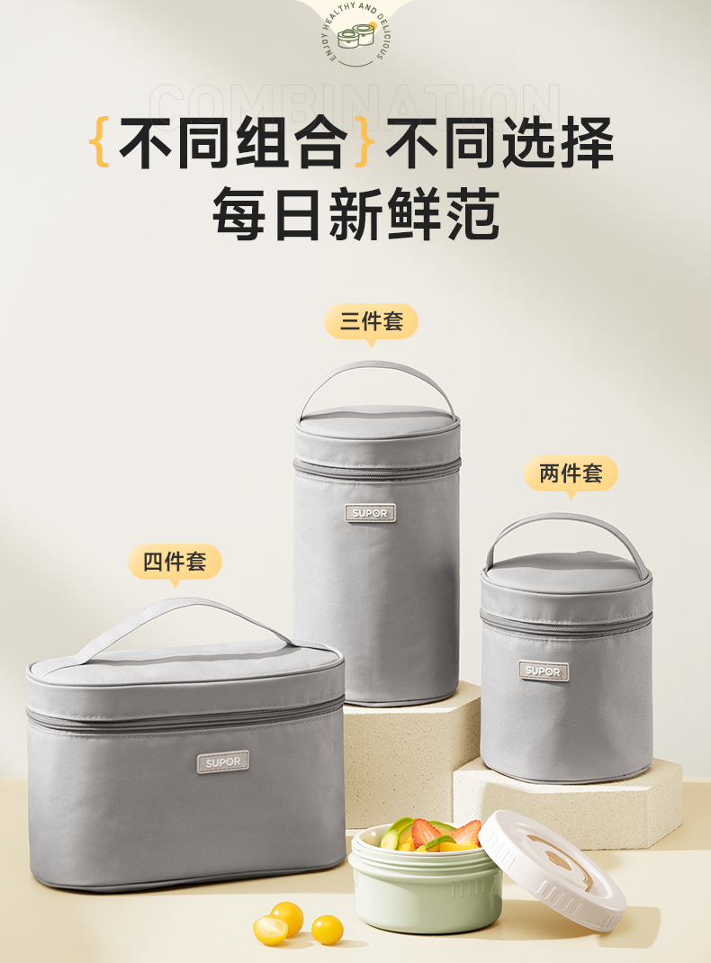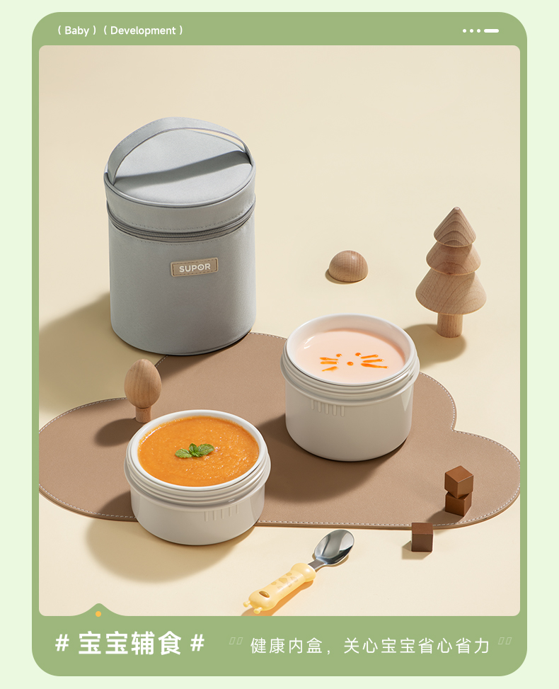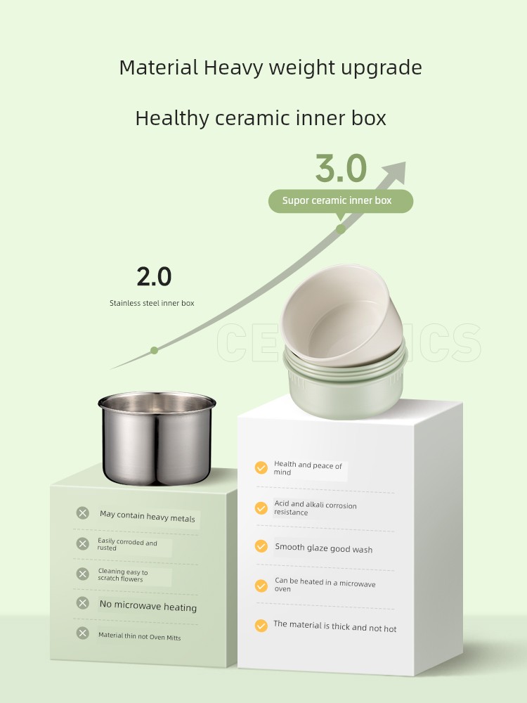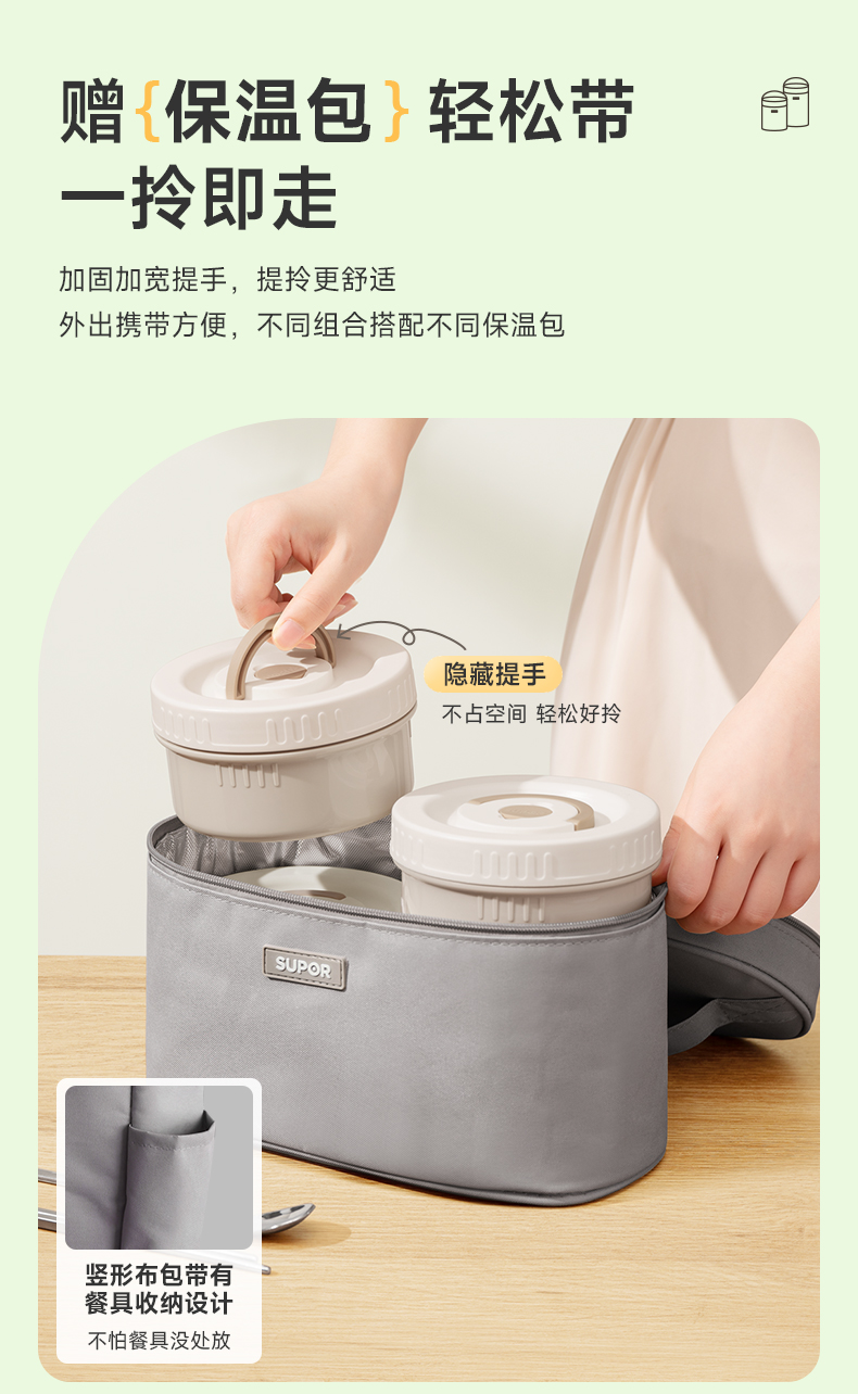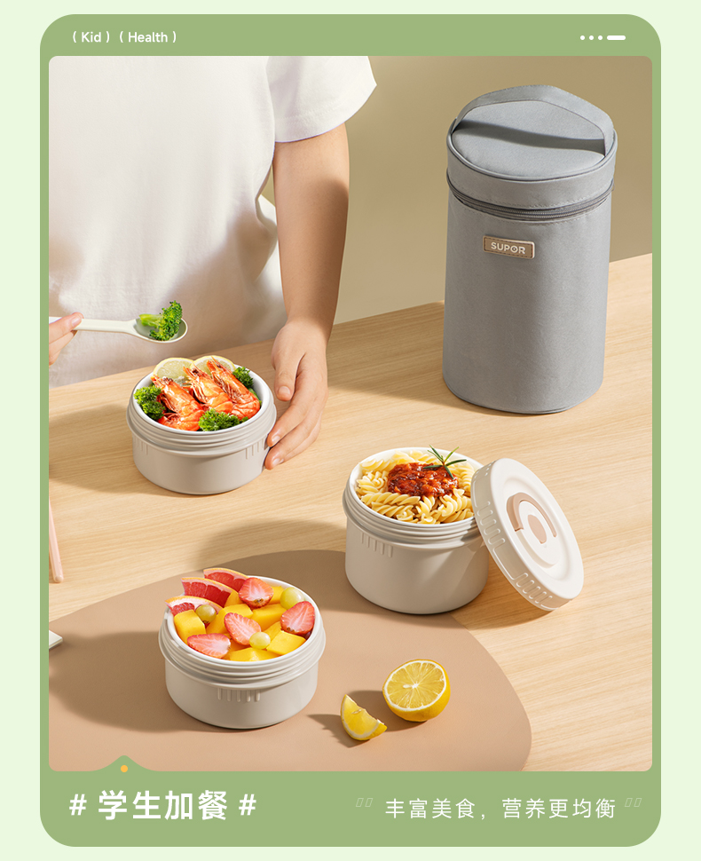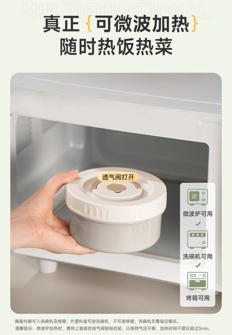 Supor Ceramic Lunch Box Work Lunch Box Three-Piece Microwave Oven Heating Oven Mitts Compartment Student Lunch Box