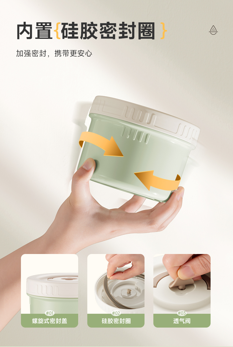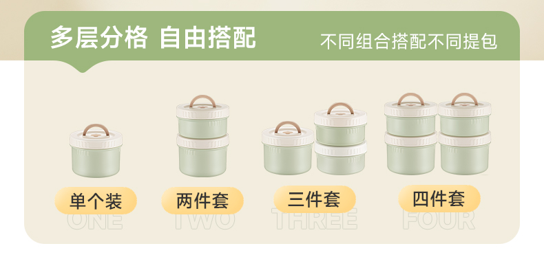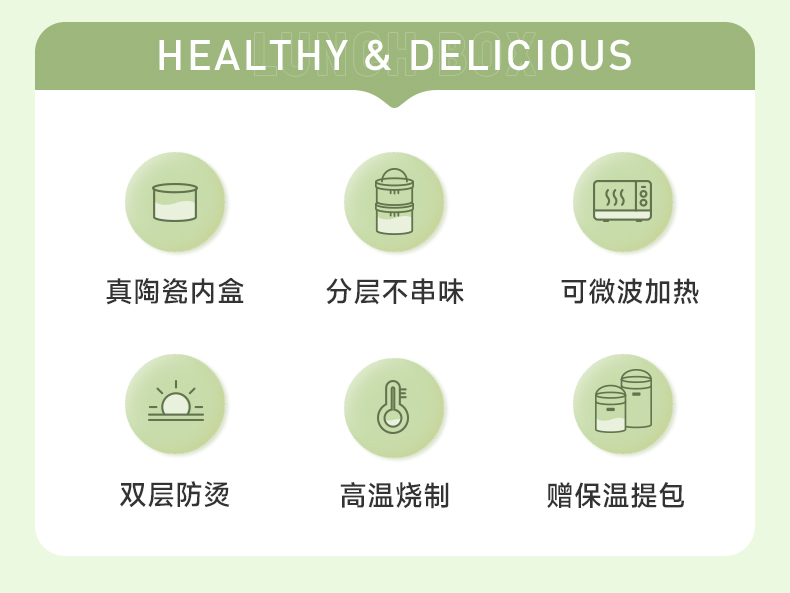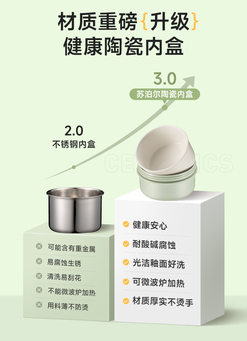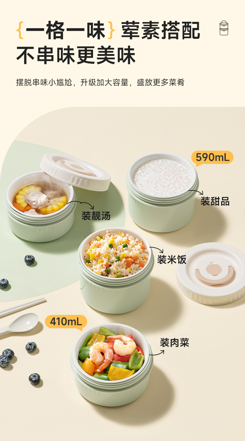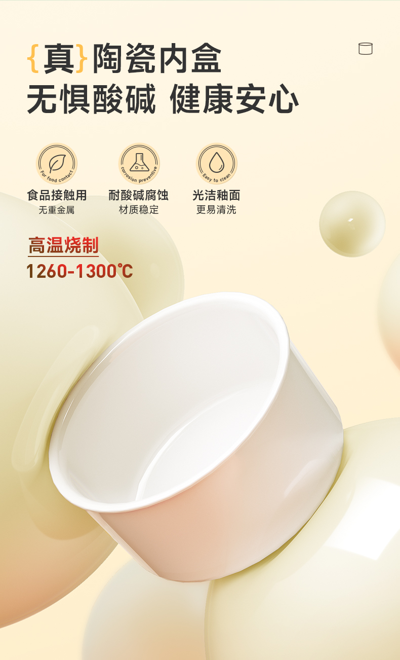 Supor Ceramic Lunch Box Work Lunch Box Three-Piece Microwave Oven Heating Oven Mitts Compartment Student Lunch Box