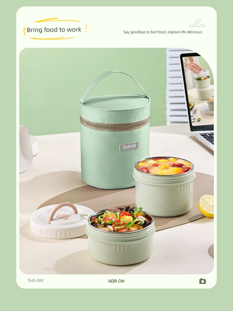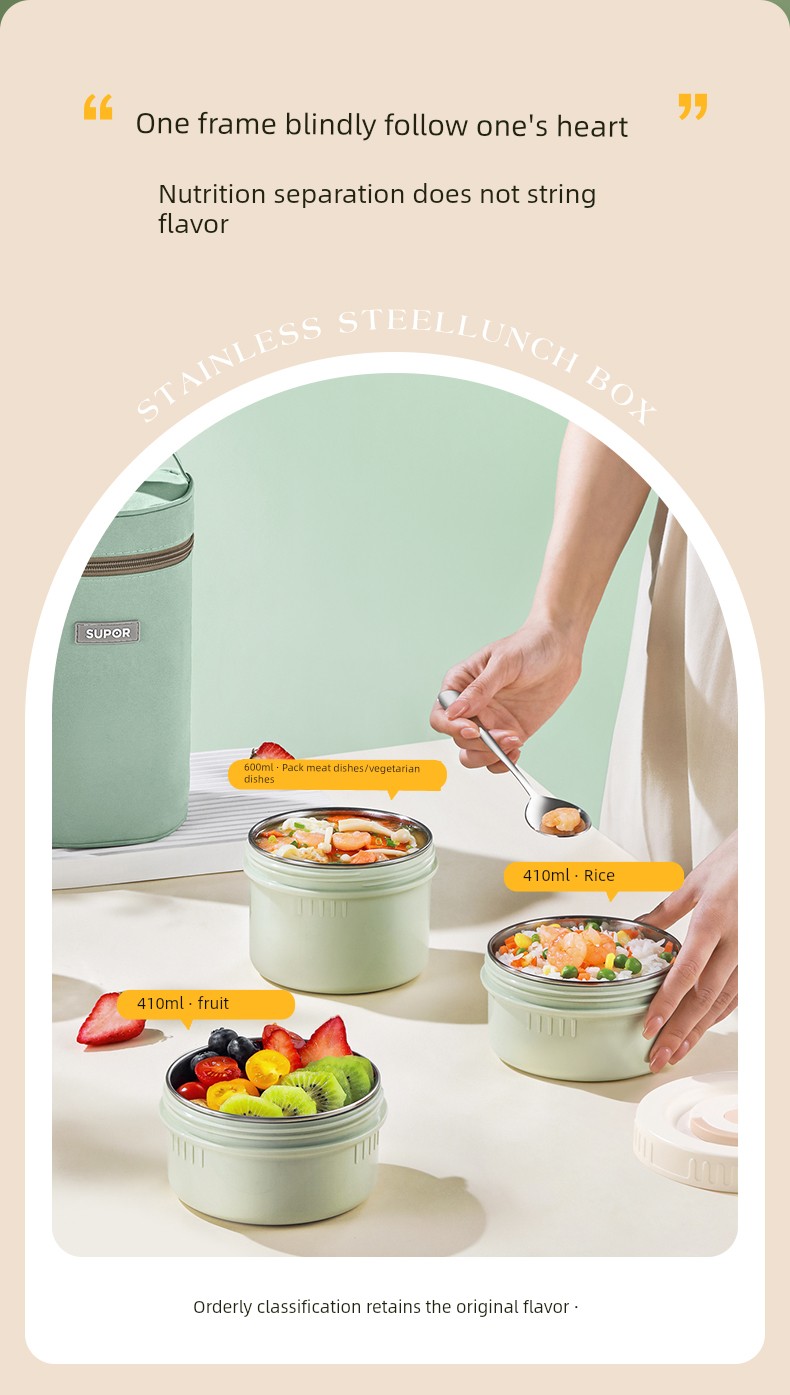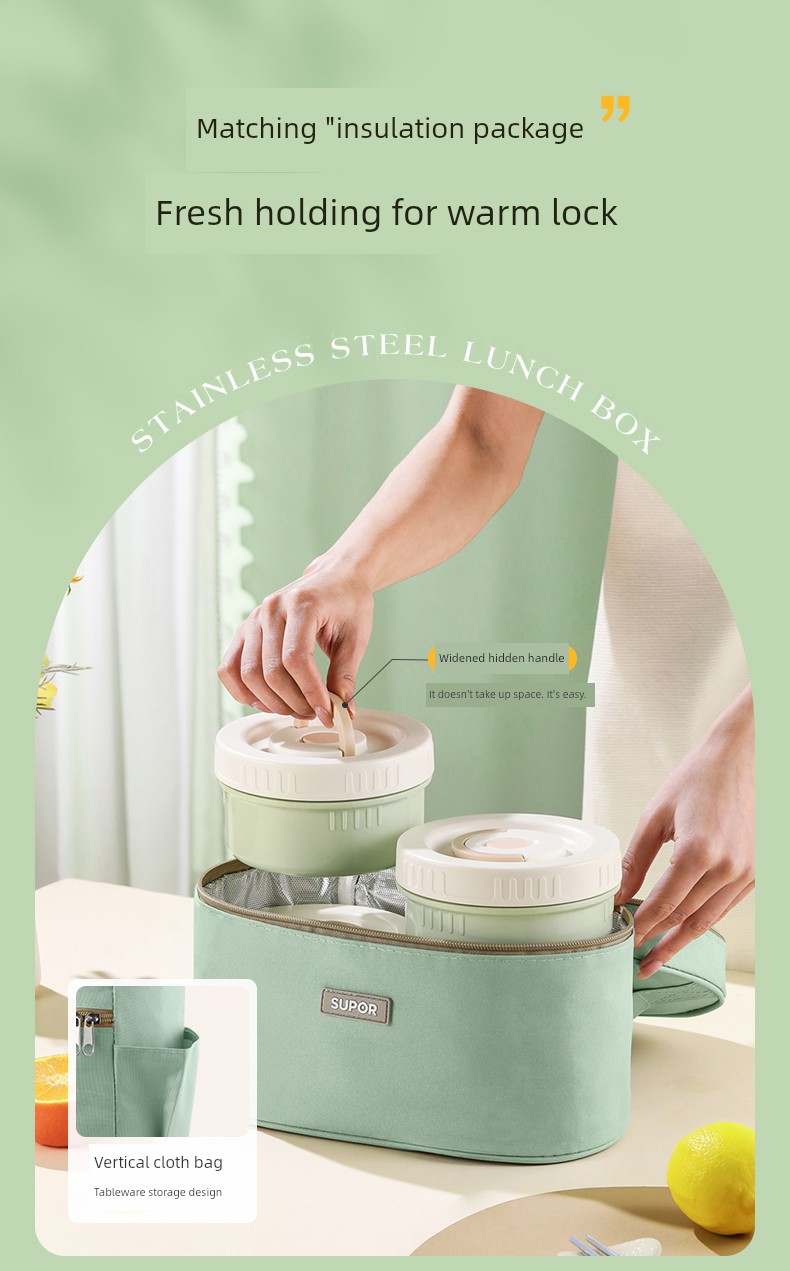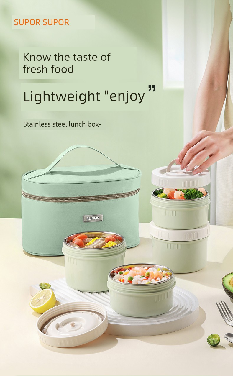 Supor Thermal Insulation Lunch Box Insulated Barrel Portable 316L Stainless Steel Office Worker Student Bento Box Separated New Product