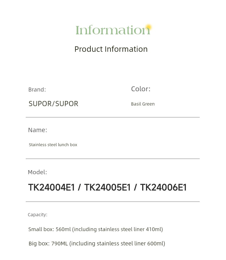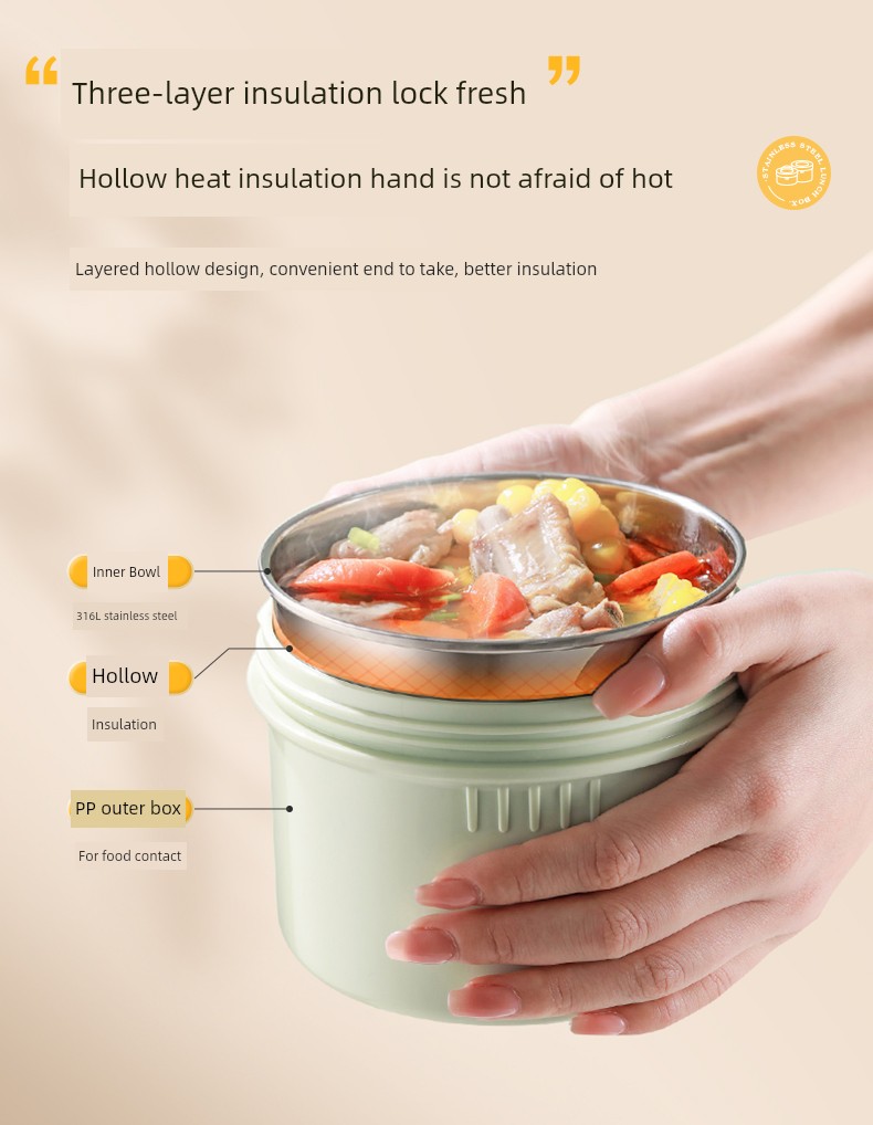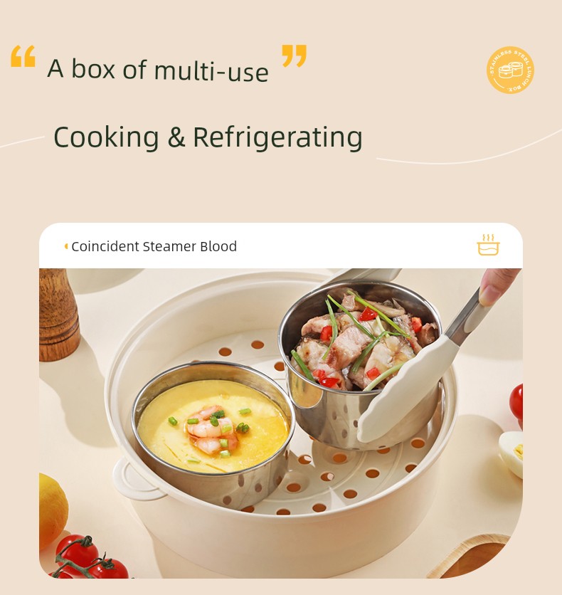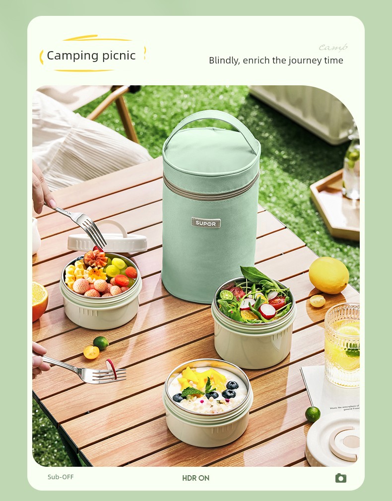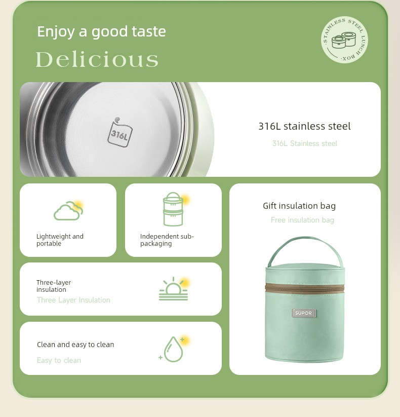 Supor Thermal Insulation Lunch Box Insulated Barrel Portable 316L Stainless Steel Office Worker Student Bento Box Separated New Product