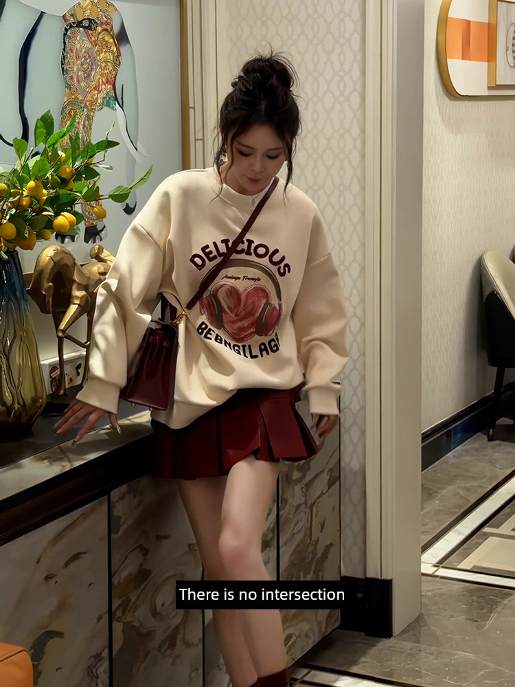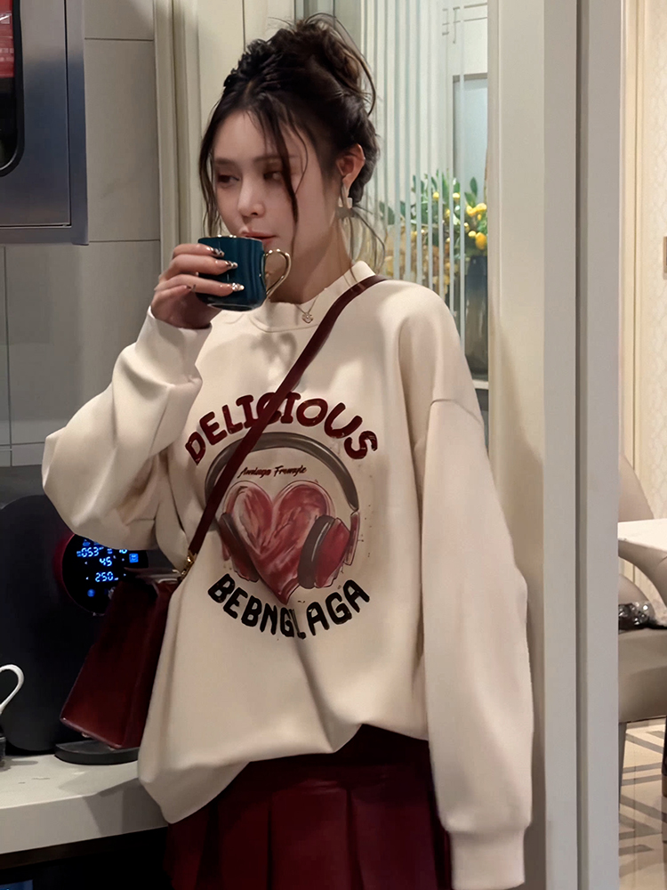 Sweatshirt Women's Letters 2025 Spring & Fall New Arrival Fashion Lazy and Loose Soft Glutinous Small Pullover Crew Neck Top Women's Clothing