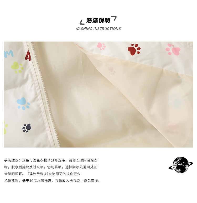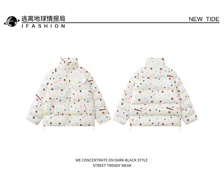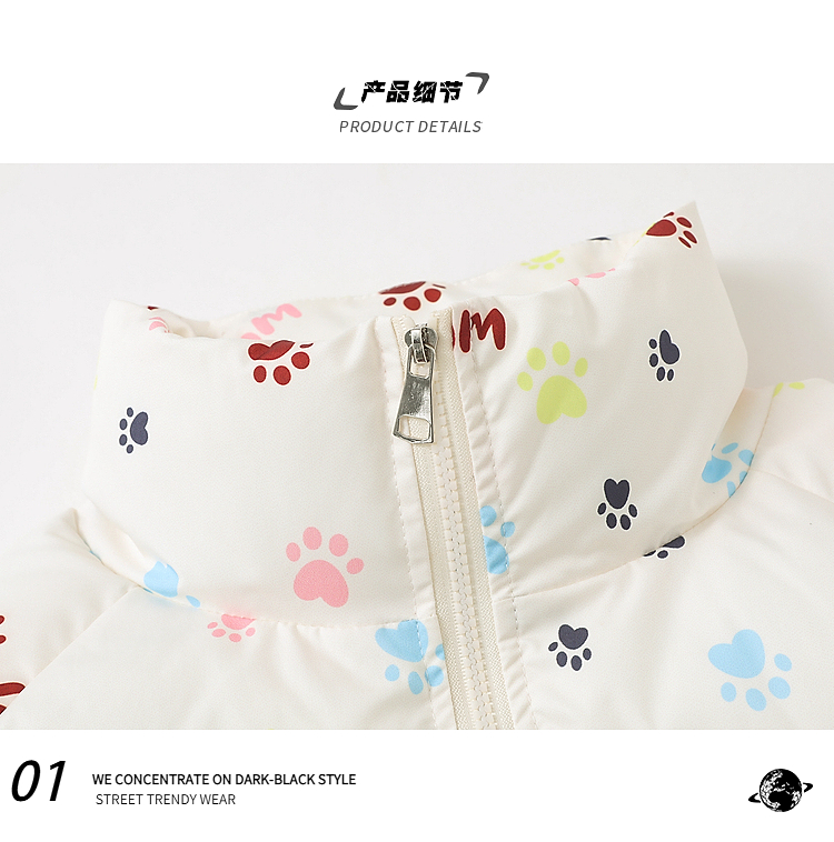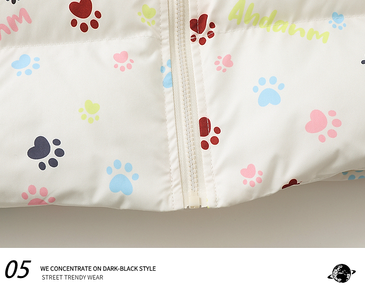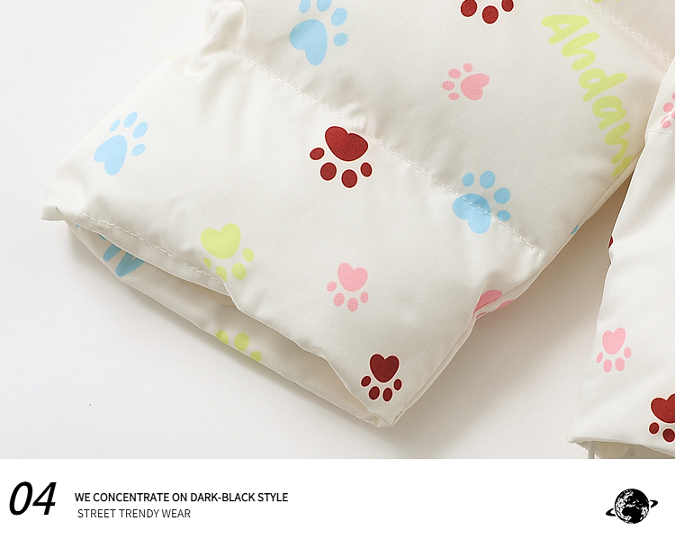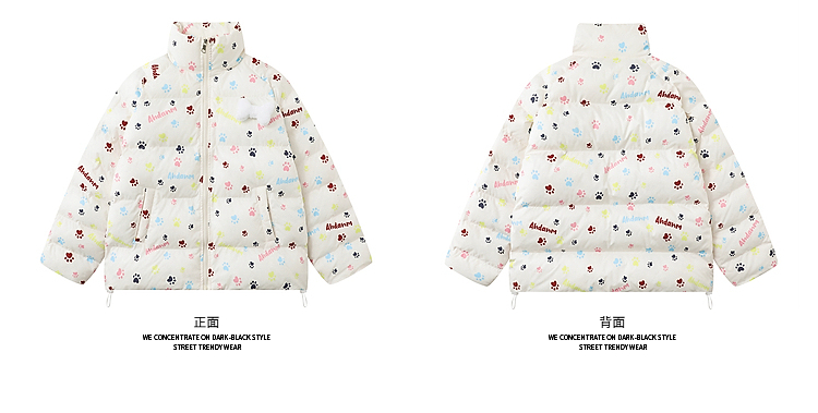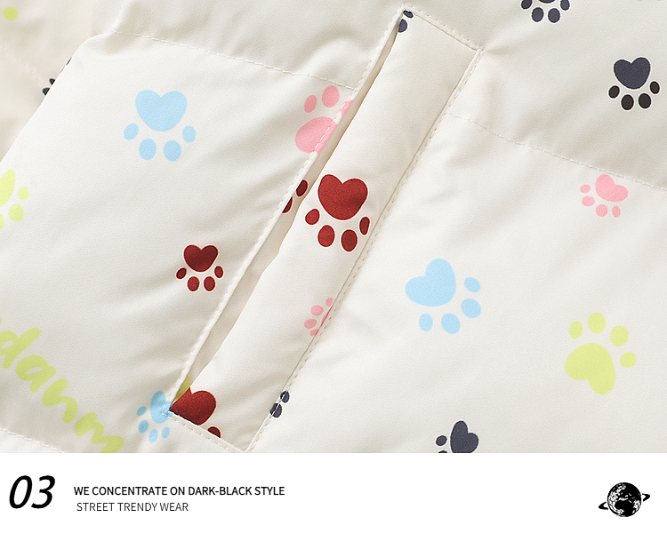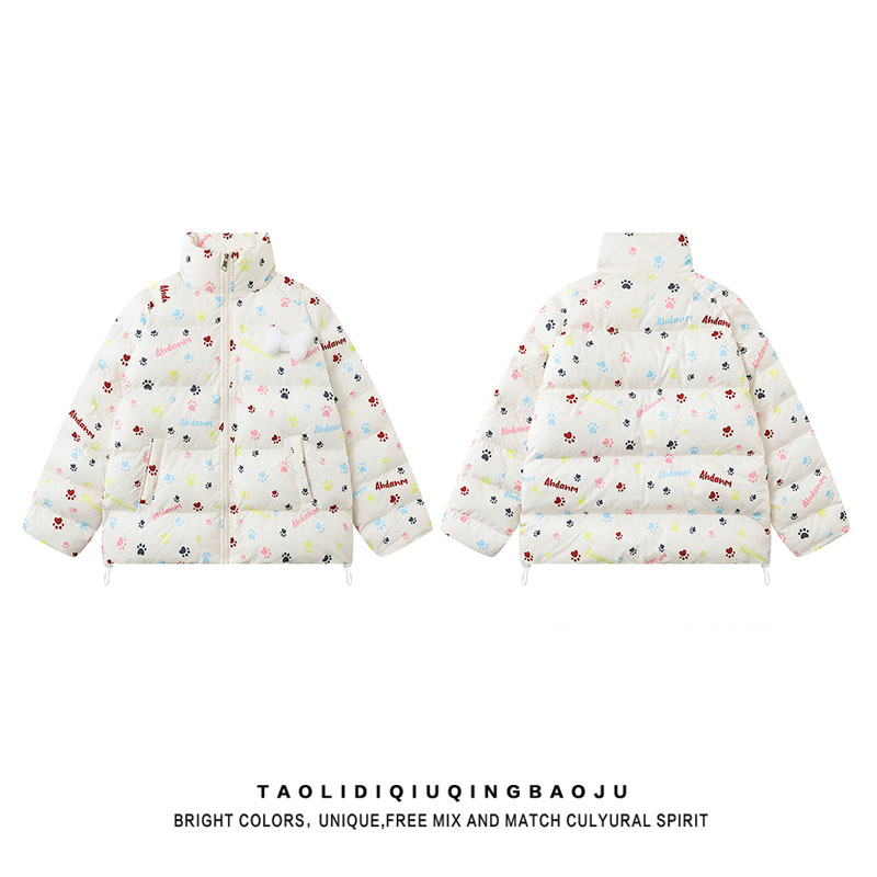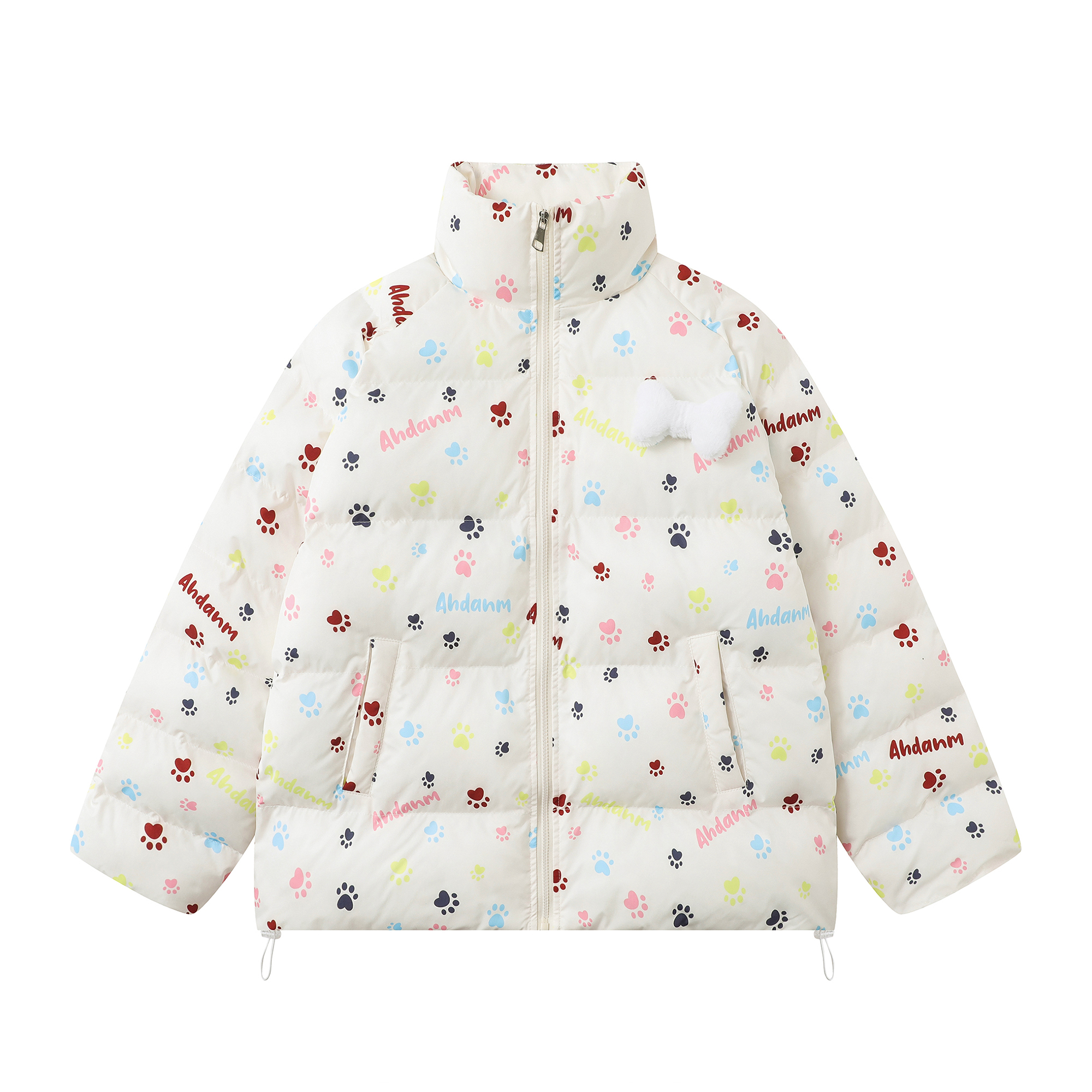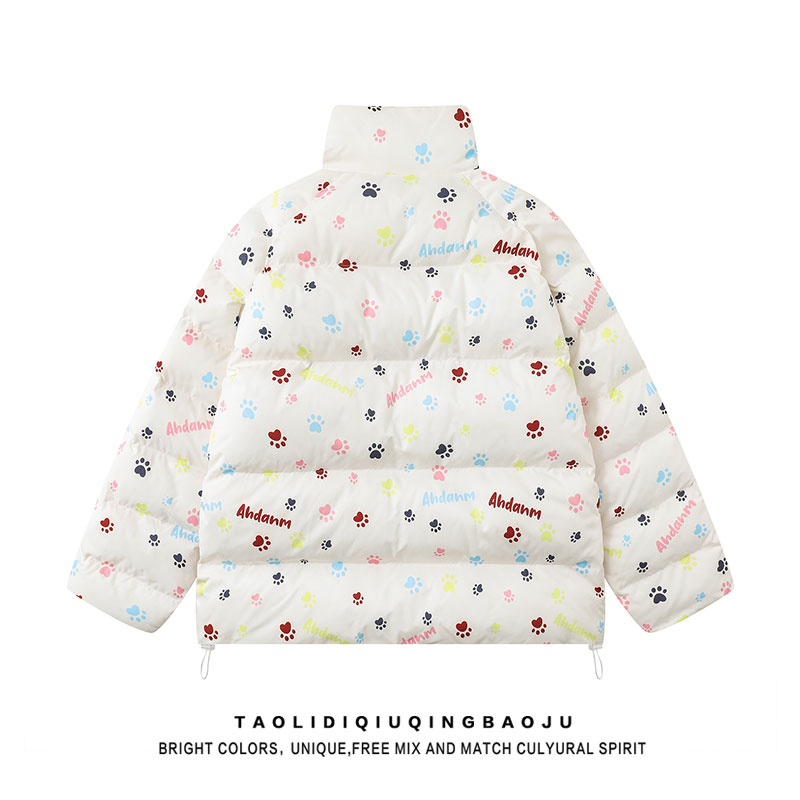 Sweet Cute Dog's Paw Full Printed Stand-up Collar Cotton-Padded Coat Women's Winter Small All-Matching Youthful-Looking Thickened Warm Cotton Coat