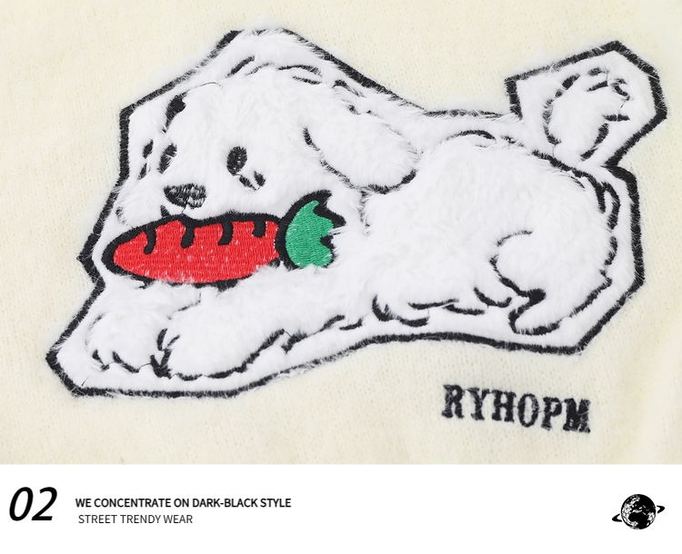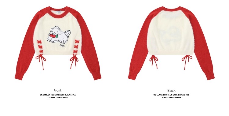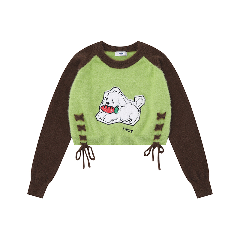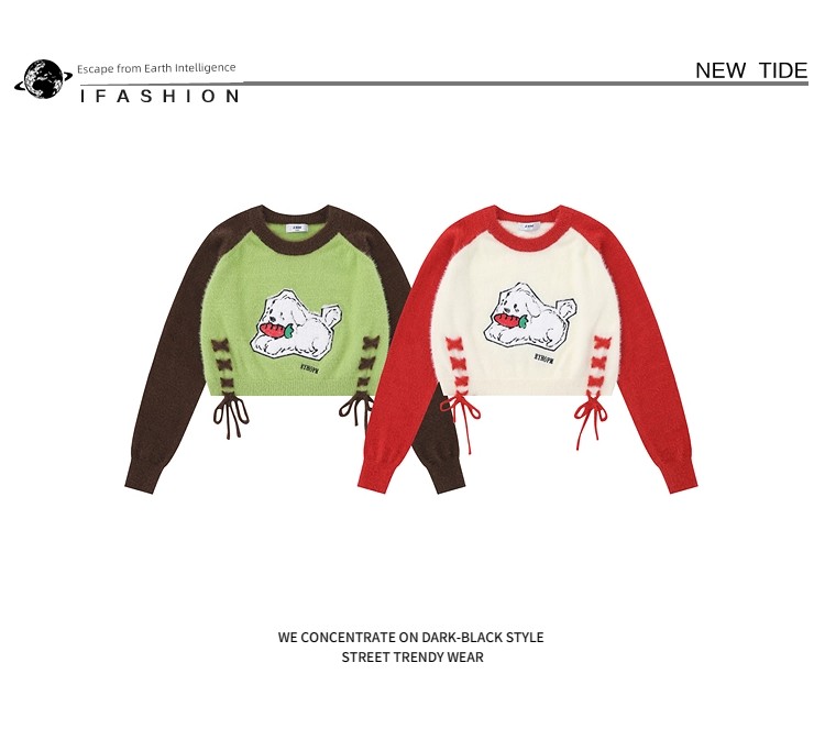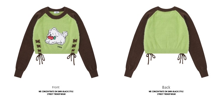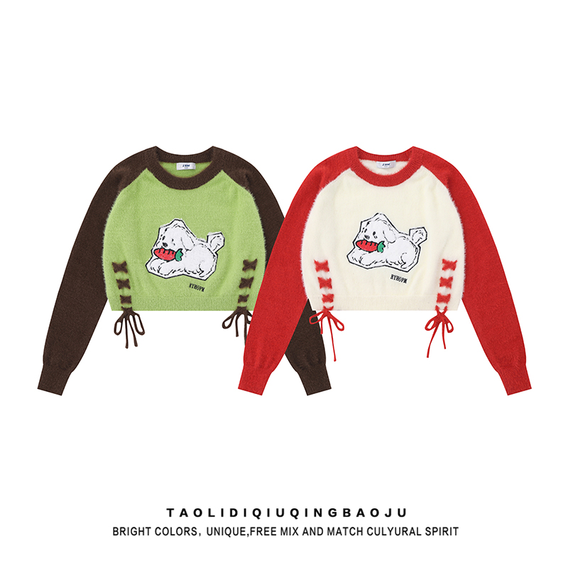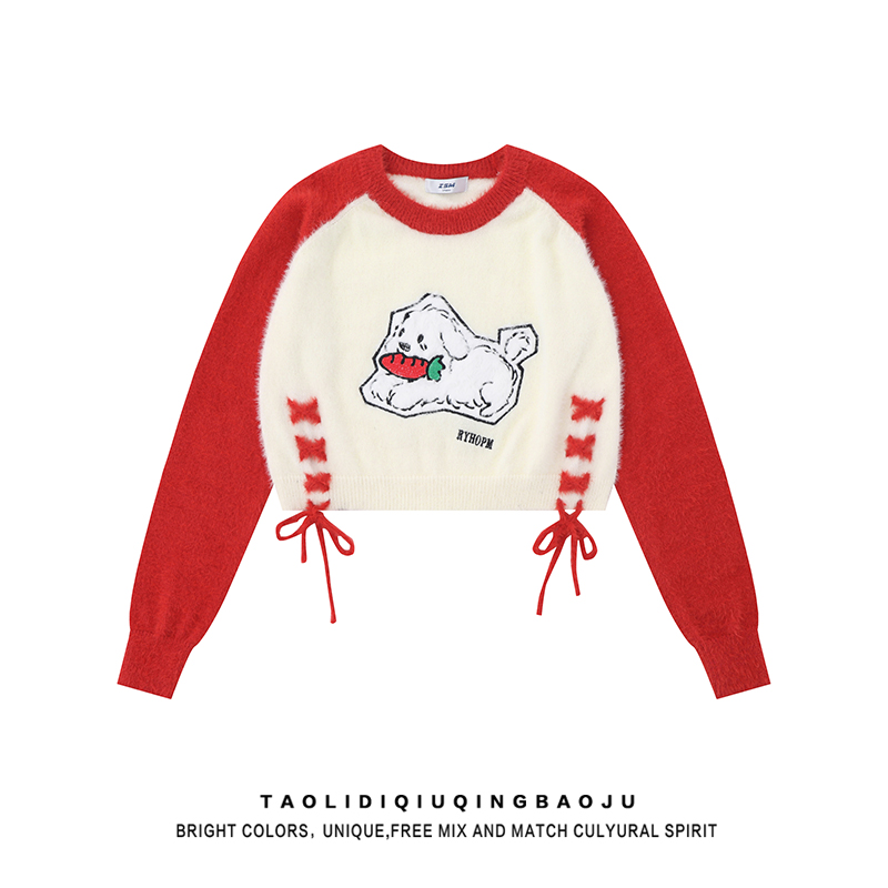 Sweet Sexy Cute Puppy Embroider Long Sleeves Knitwear Female Stylish Niche Style Lace up Slimming Slim-Fit Crop-Top