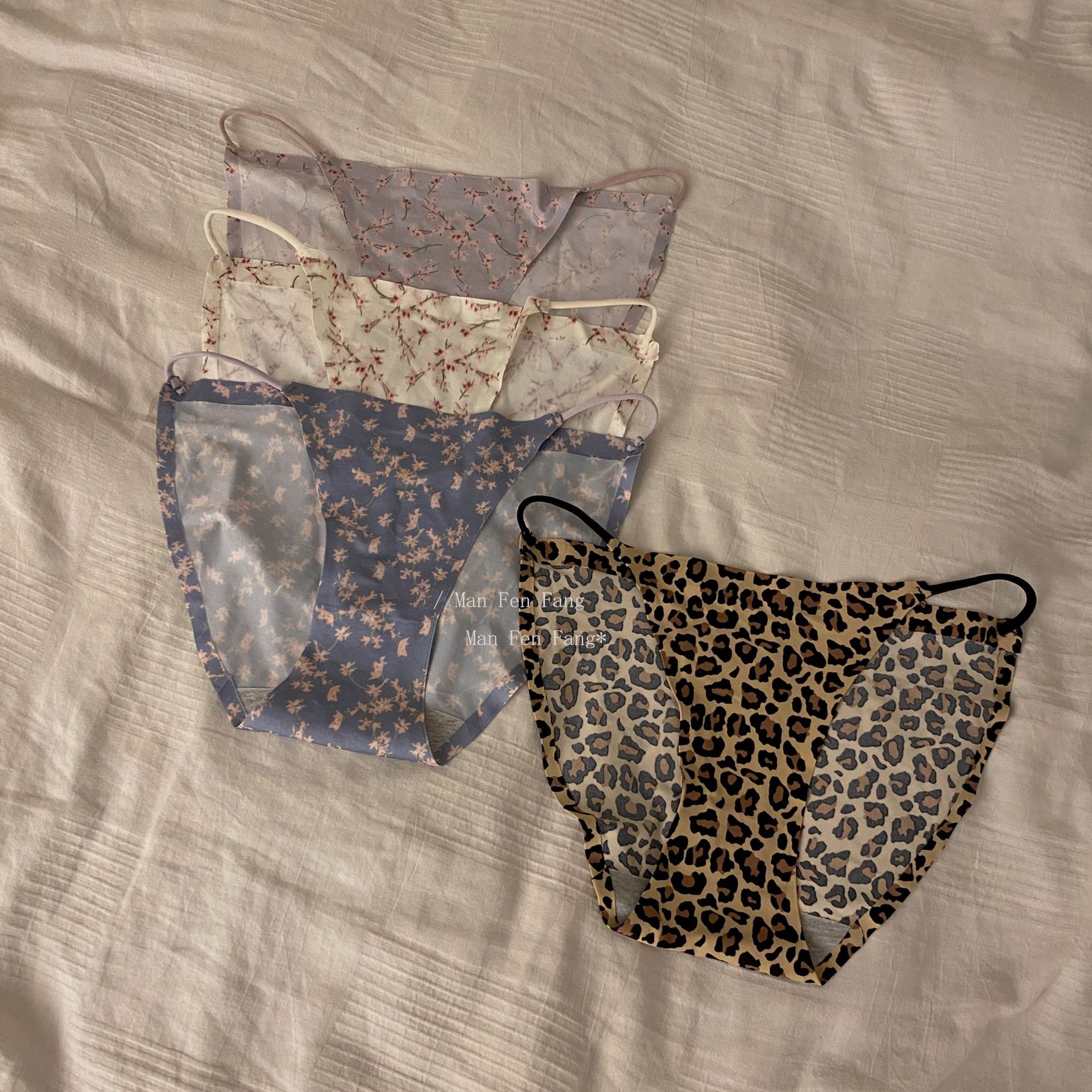 T-Back 2024 Summer New Arrival Thin Panties Sexy Ice Silk Girls' Breathable Crotch Leopard Print Traceless Panties for Women