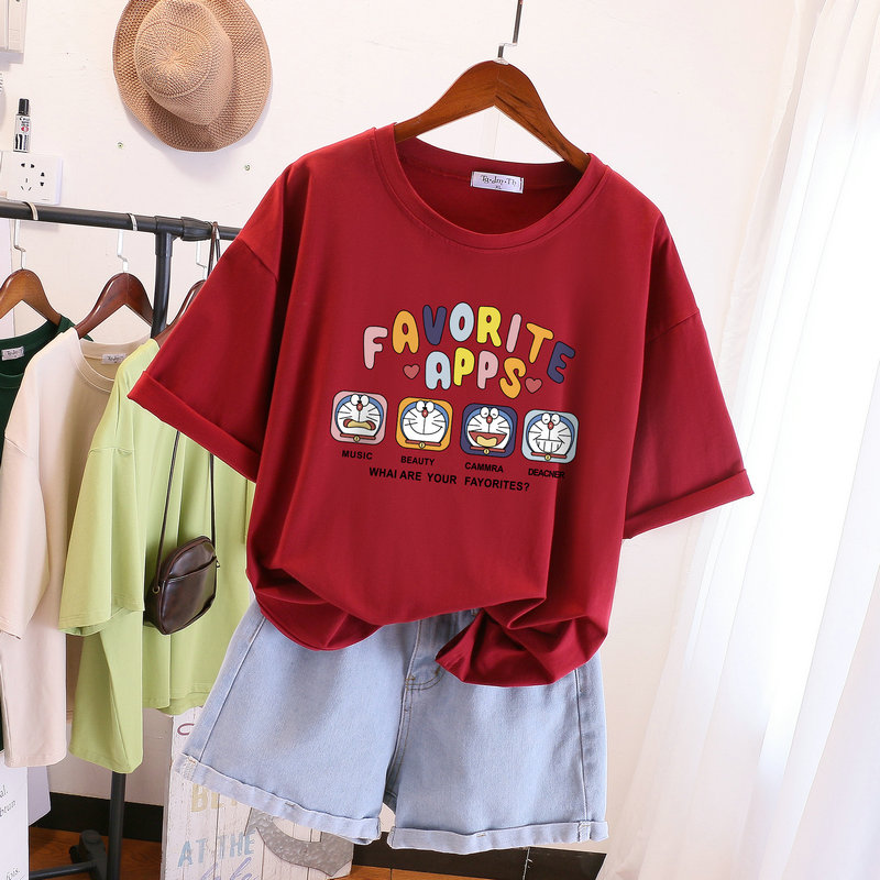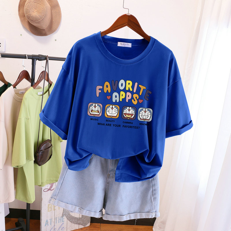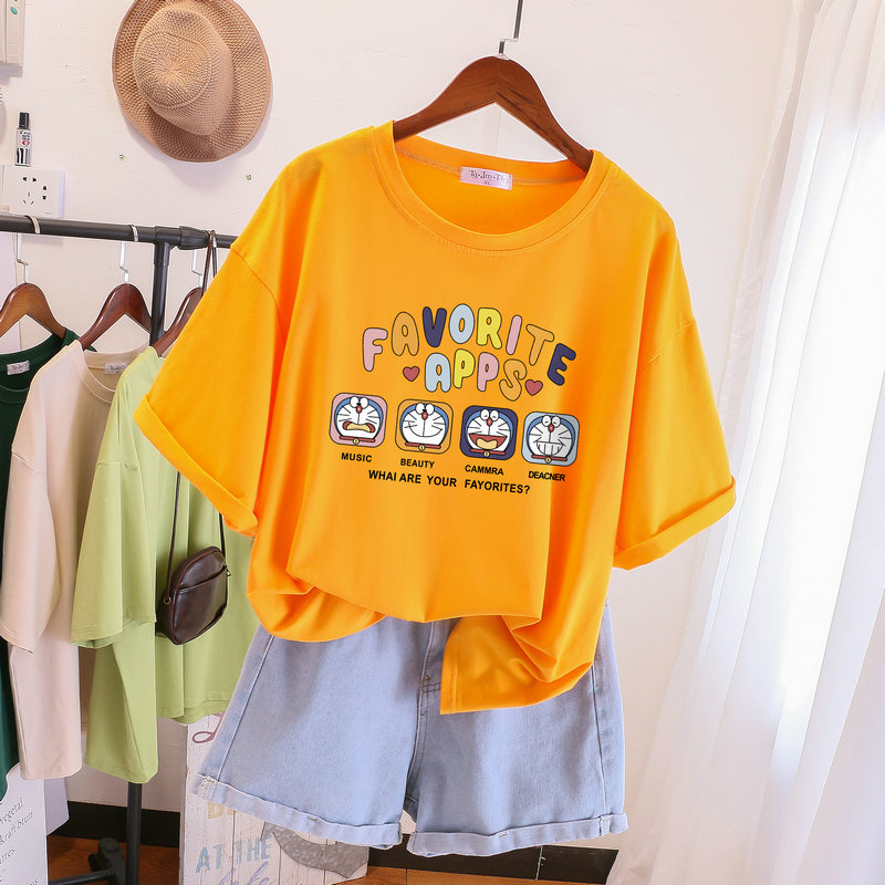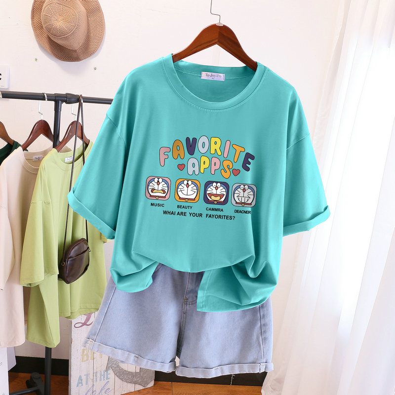 T-shirt Women's Summer Plus Size Ladies Slim Looking All-Matching round Neck Short Sleeve