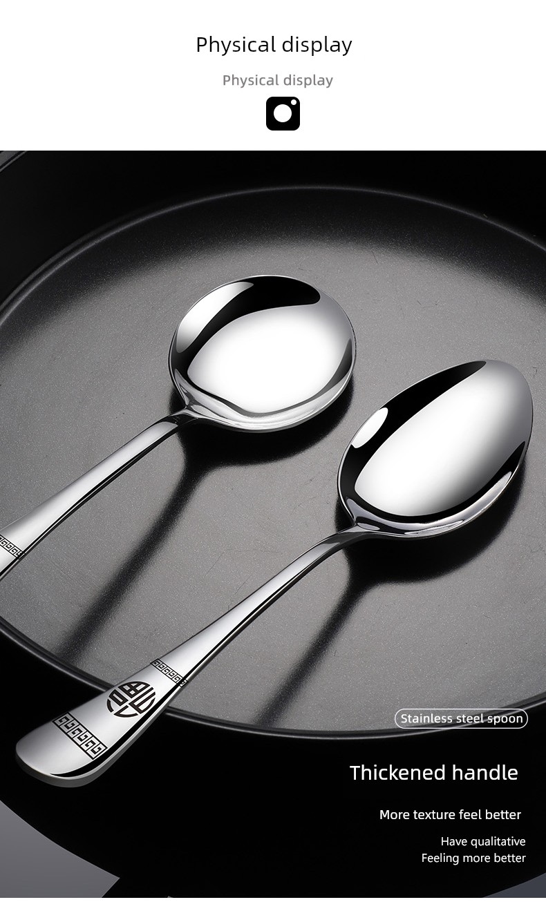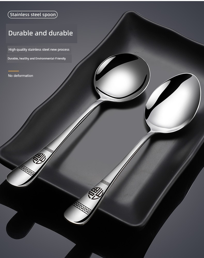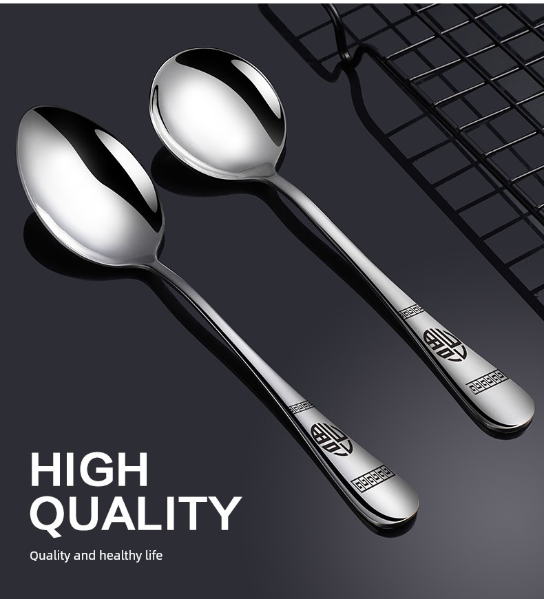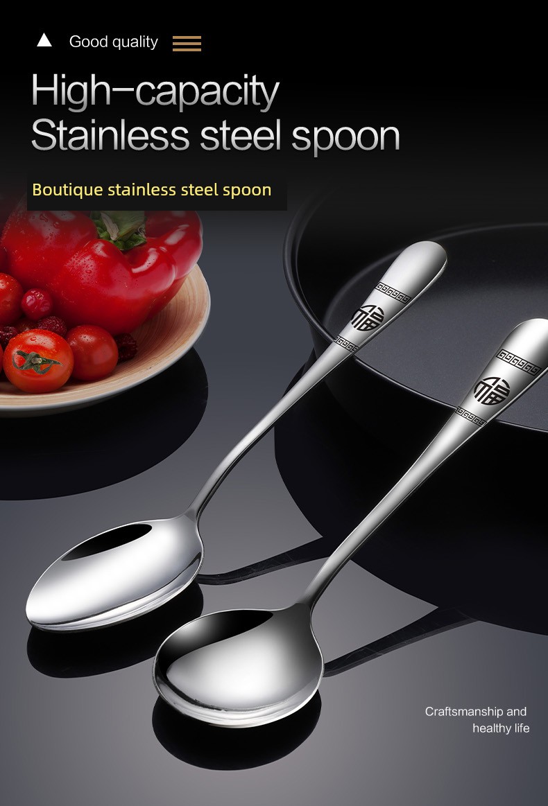Thickened 304 Stainless Steel Long Handle Self-Contained Spoon for Eating