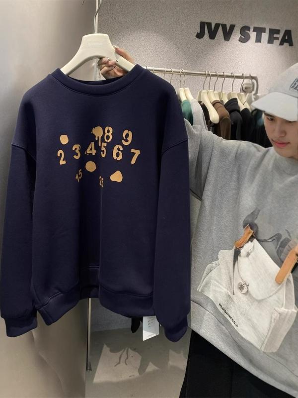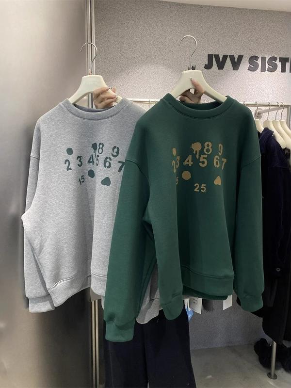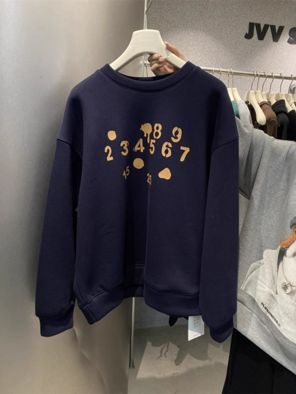 Thirteen Rows European Goods Spring 2025 New Arrival Digital Pattern round Neck Printed Fleece Hoodie Loose Casual Top Female