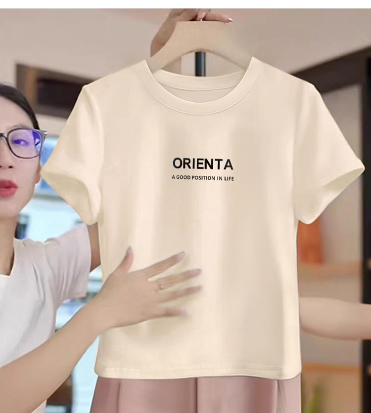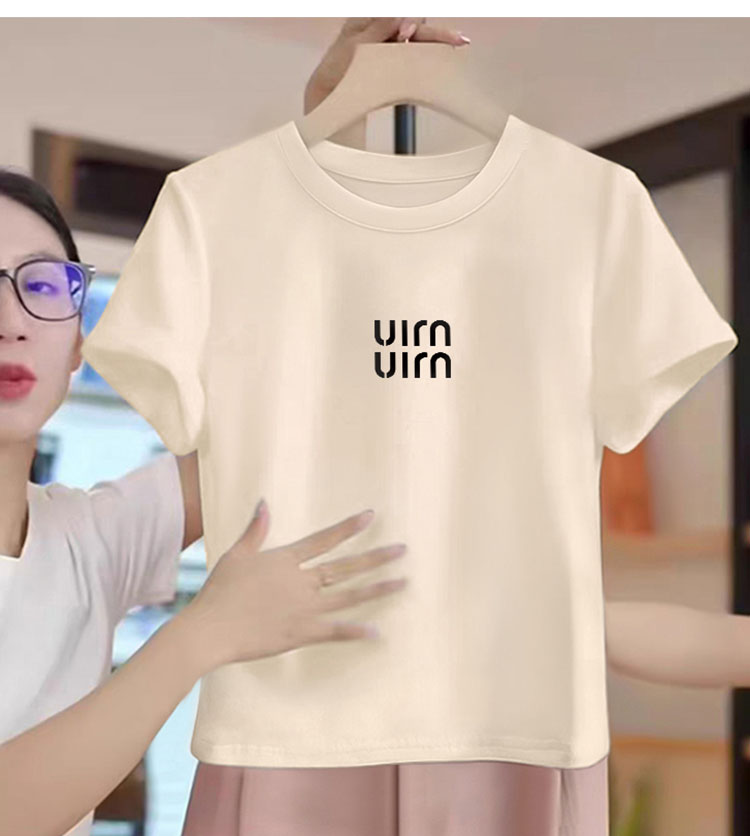 Thirteen Rows Women's Cotton Short-Sleeved T-shirts Women 2025 Summer New Arrival Western Style Slim Fit Short Print Half Sleeve Tops