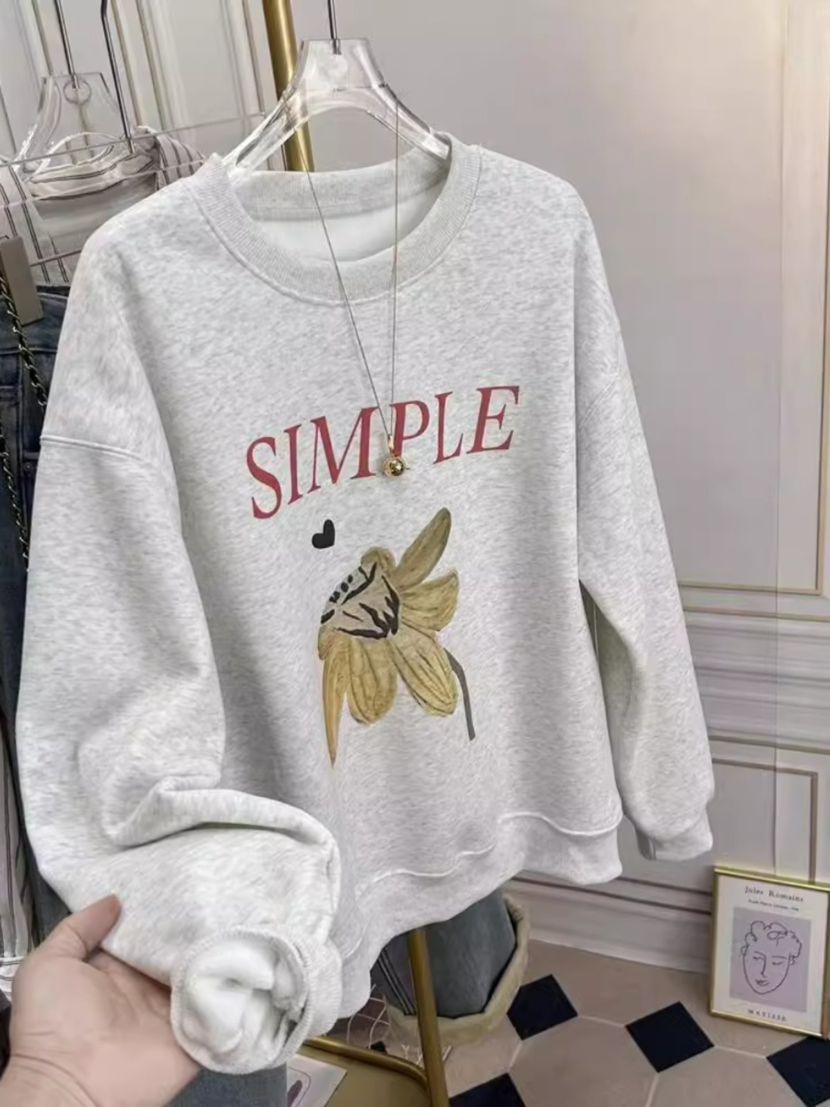 This Year's Popular Beautiful Brushed Hoody Female K-style 2025 Best Selling Western Style Youthful-Looking Loose Crew Neck Inner Spring & Fall