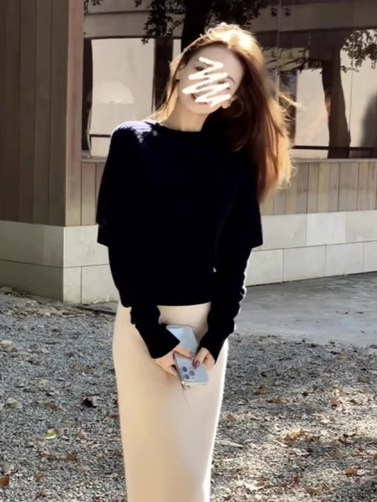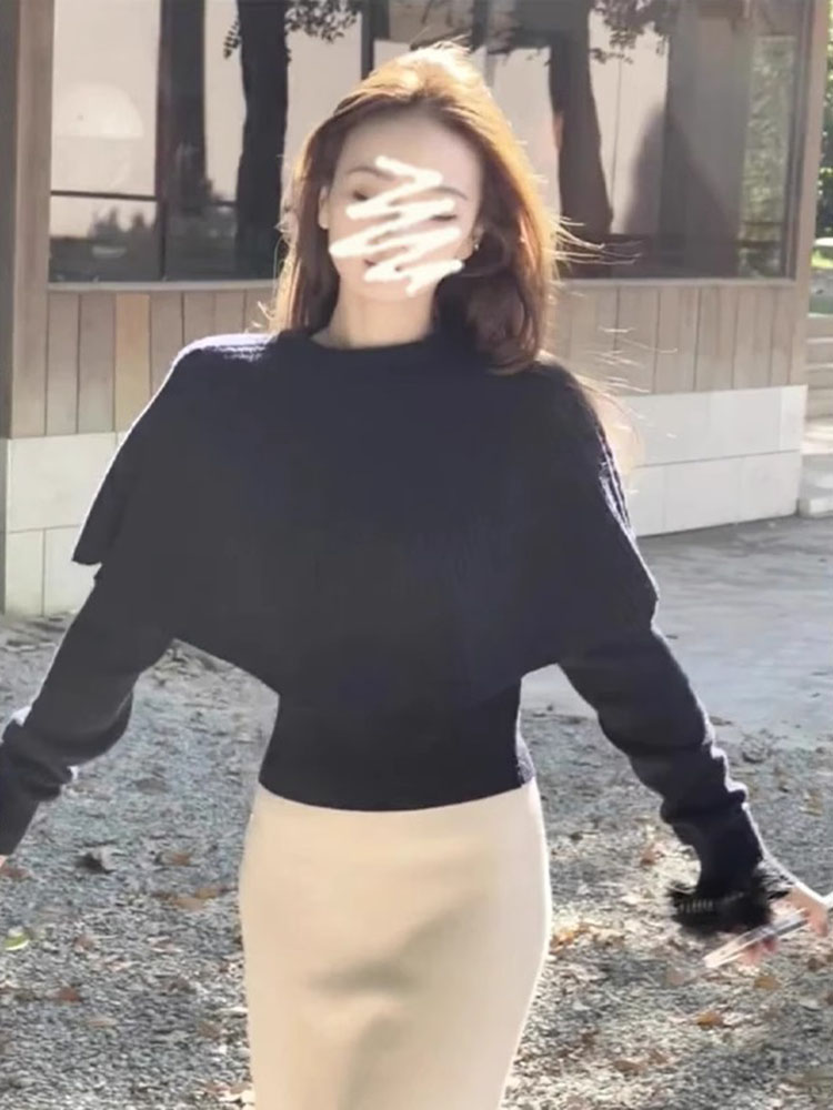 This Year's Popular Silm Slim Looking Cloak Long Sleeves Knitwear Women's 2025 Spring & Fall New Arrival Western Style Fashion Bottoming Shirt Fashion