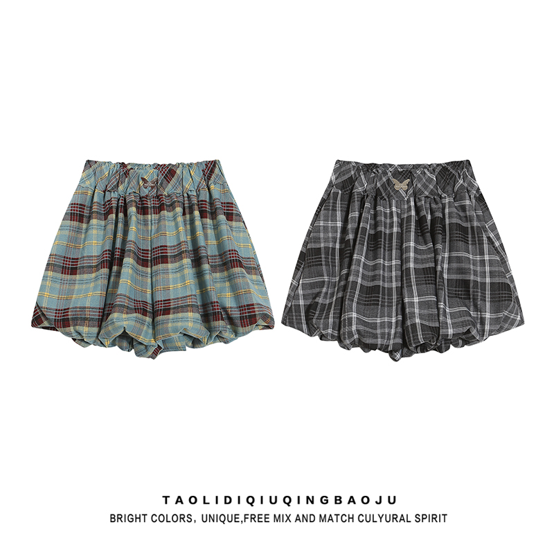 Three-Dimensional Butterfly Gingham Culottes Women's Summer Preppy Style Bud