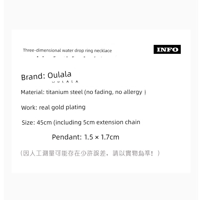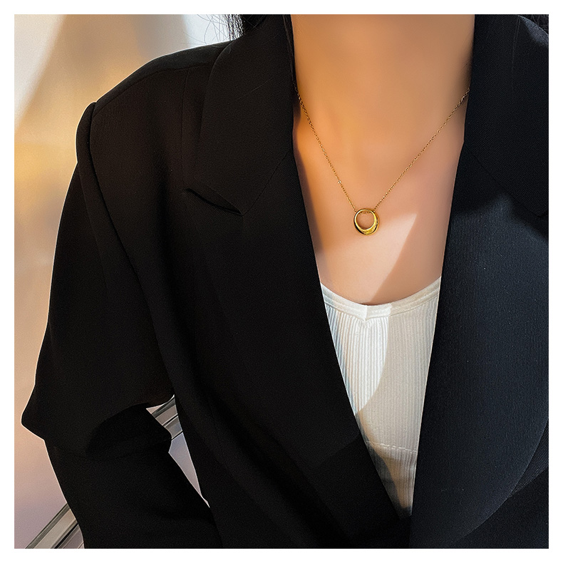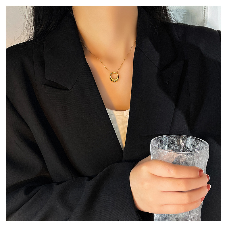 Three-Dimensional Water Drop Pendant Non-Fading Titanium Steel 2021 New Arrival Tide Necklace round Ornament Minimalist Korean Style Clavicle Chain