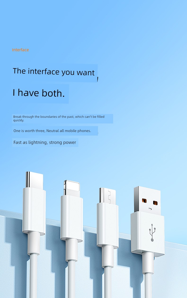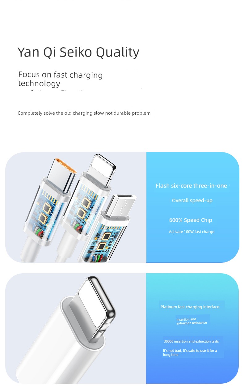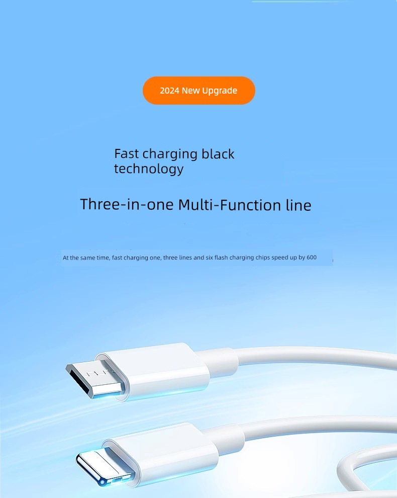 Three-in-One Data Cable Fast Charge Mobile Phone 3-in-1 Charging Wire Device Car Three-Head Multi-Functional Multi-Head Three-Line