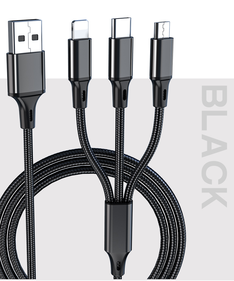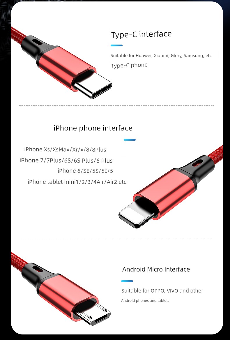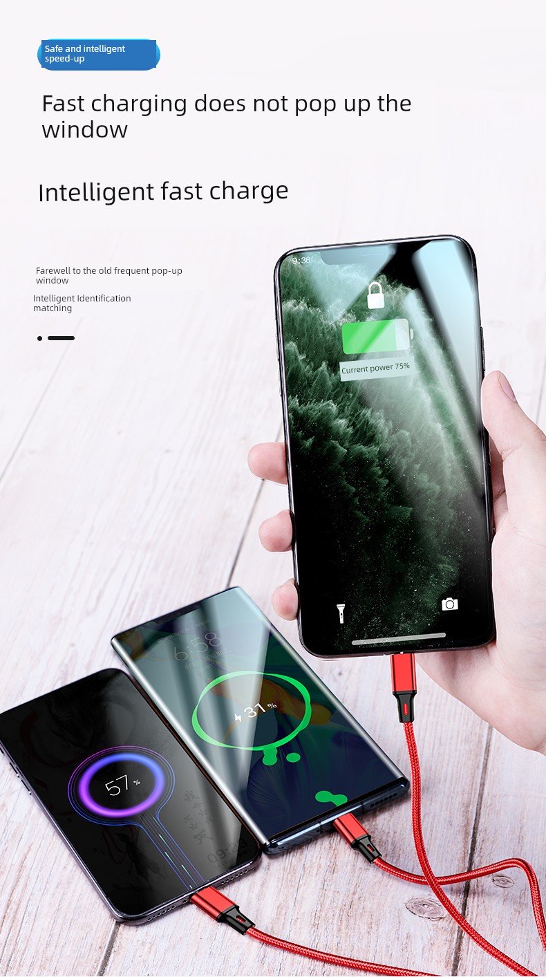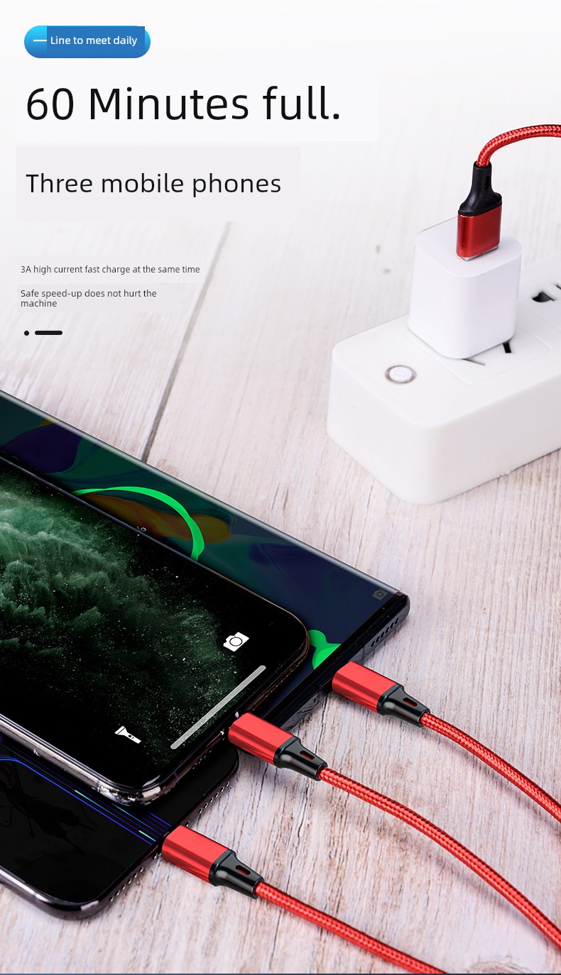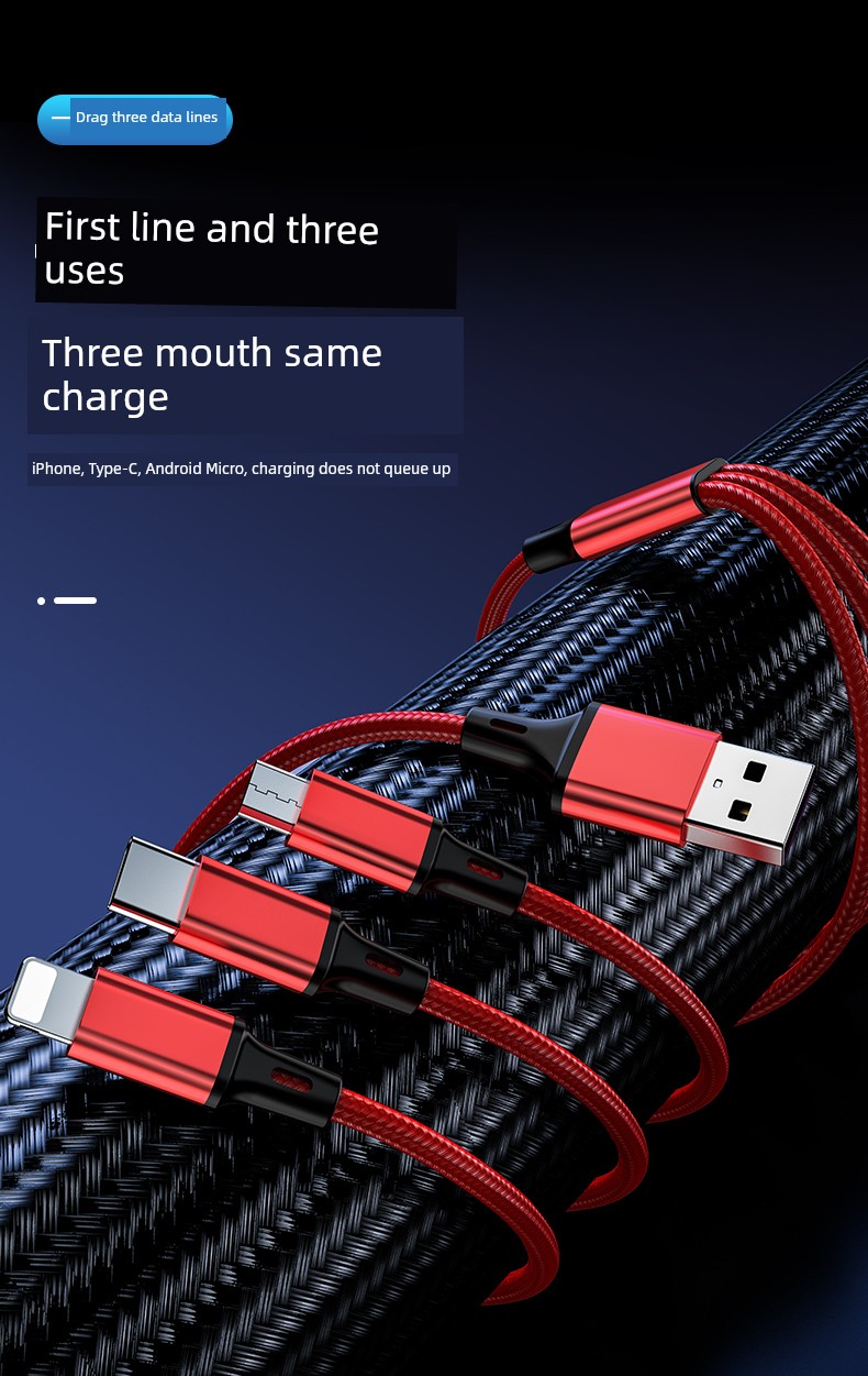 Three-in-One Fast Charge Data Cable Flash Charger Suitable for Type-c Mobile Phone Huawei Android 3-in-1 Charging Wire Device Three-Head Multifunctional Car Universal