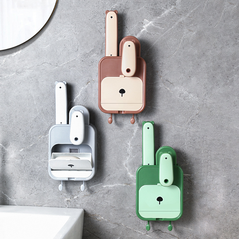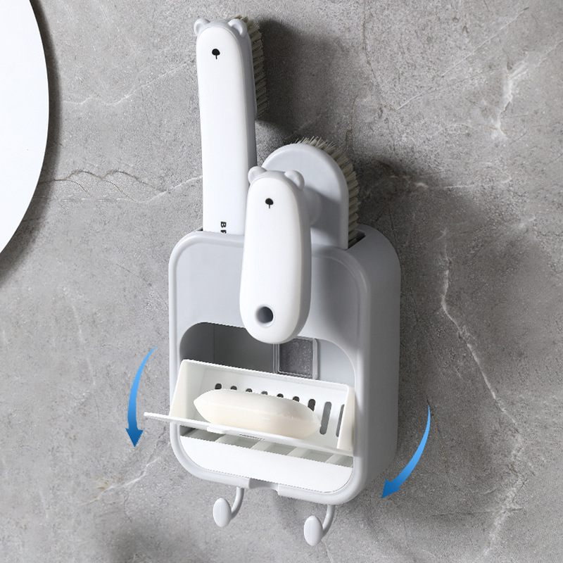 Three-in-One Soap Dish Water-Free Punch-Free Soap Holder Hanging Bathroom Wall Drain with Shoe Brush Soap Holder